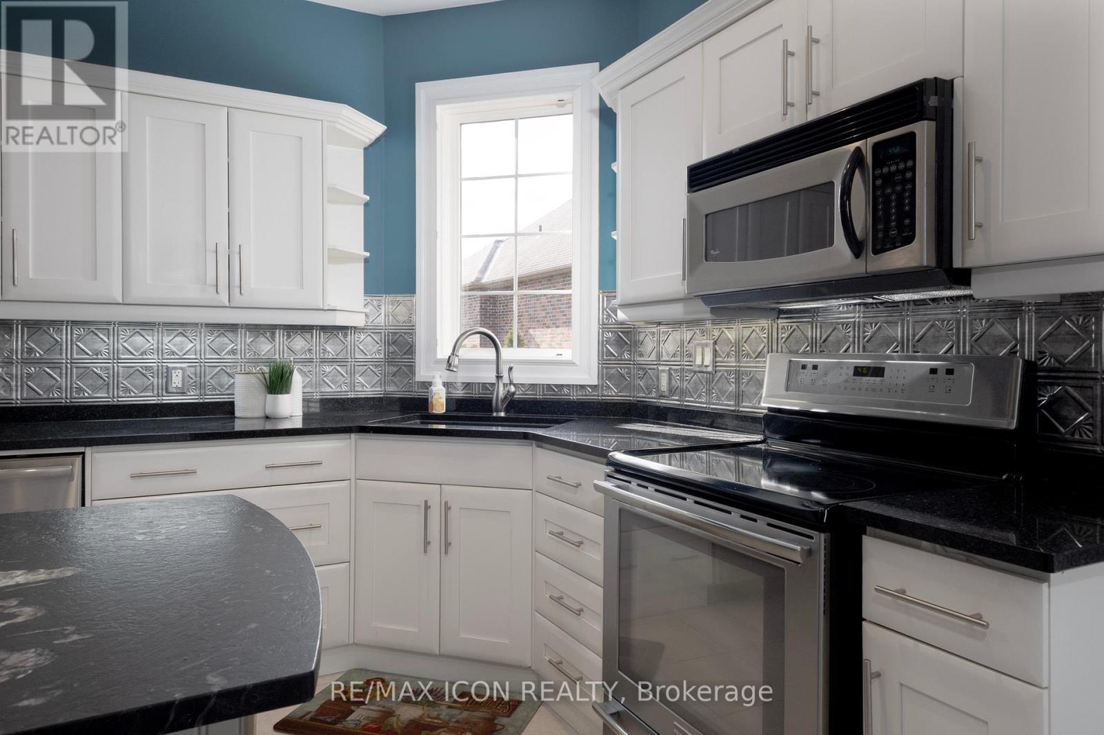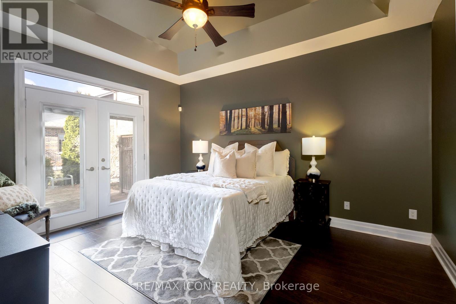Spacious and inviting O'Mera model bungalow with finished basement in the prestigious Sawmill Creek Golf Resort community. Beautiful bungalow in the sought-after Residences of Sawmill Creek Golf Resort & Spa. This O'Mera model offers 1,669 sq ft of main floor living with 2 bedrooms on the main level plus a third bedroom in the finished basement and 3 bathrooms. The bright open-concept kitchen, dining, and great room feature hardwood floors, coffered ceilings, and a gas fireplace, creating a warm and inviting space for everyday living and entertaining. The kitchen offers a breakfast area, microwave range hood, and walkout to an oversized deck. The primary bedroom includes a relaxing whirlpool ensuite, while a glass-enclosed sunroom provides a bright, comfortable space to enjoy year-round. The finished lower level adds valuable living space, including a third bedroom and bathroom-ideal for guests, hobbies, or family visits. Located in a desirable golf course community overlooking the Sawmill Creek clubhouse, residents can enjoy nearby resort amenities including the pool and golf course, with golf memberships available for purchase. Enjoy the ease of bungalow living in a beautiful resort-style setting. (id:64974)