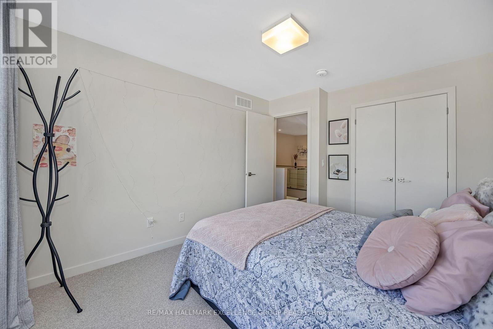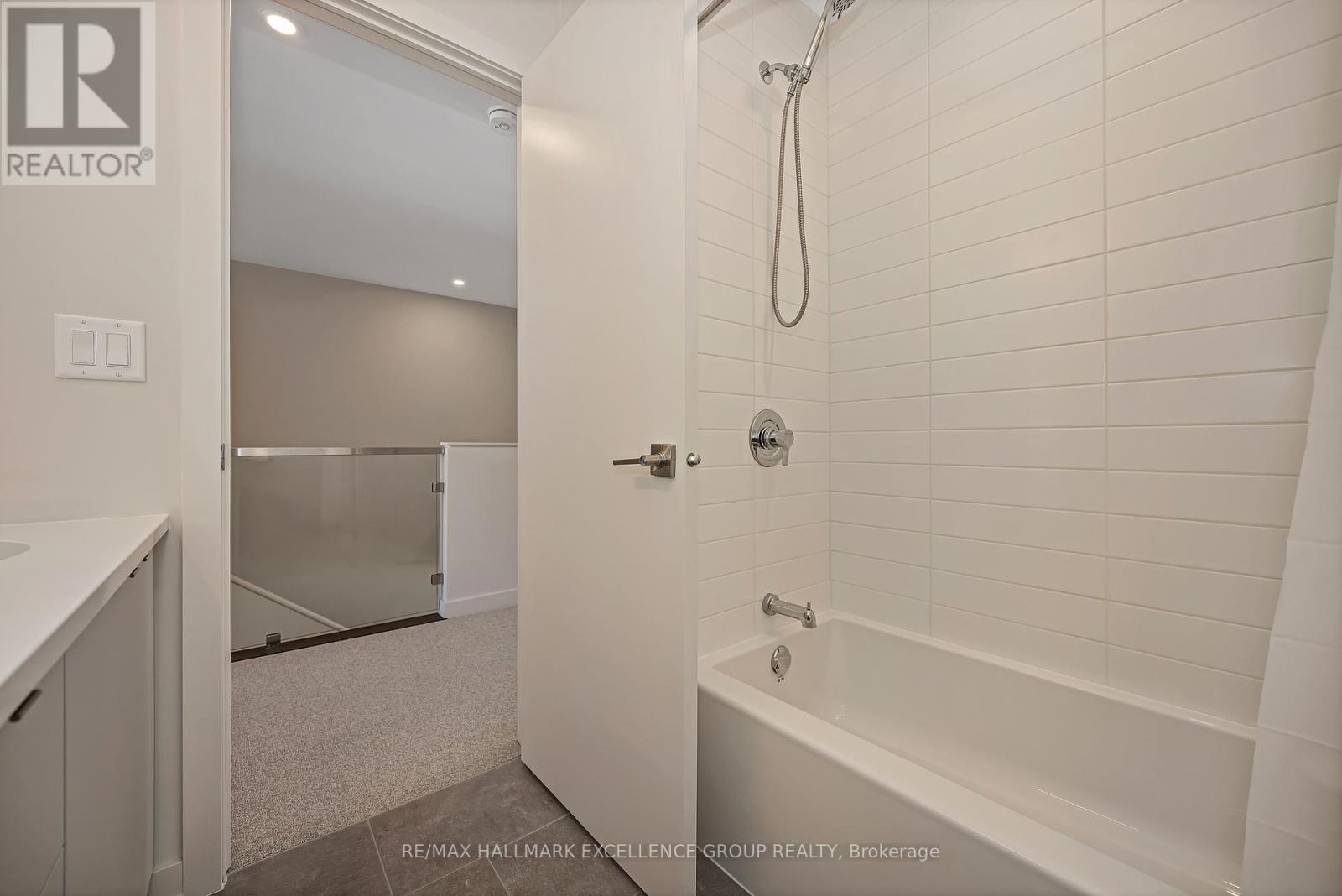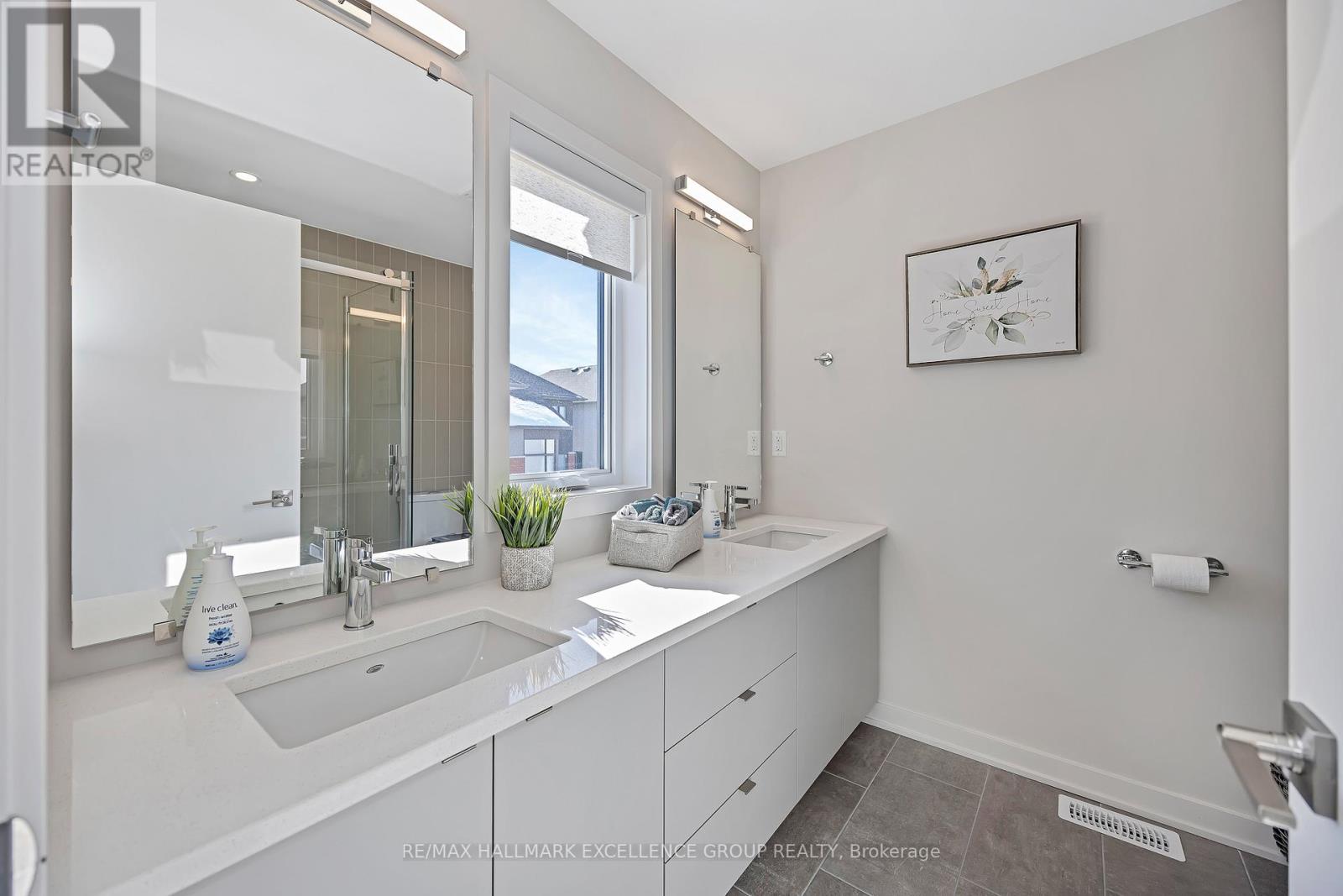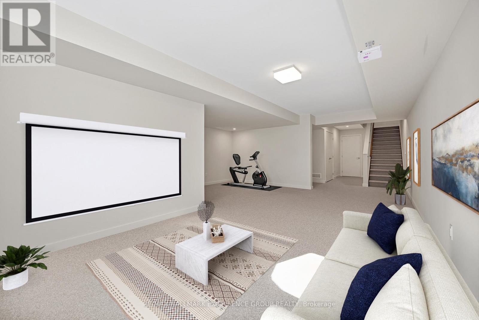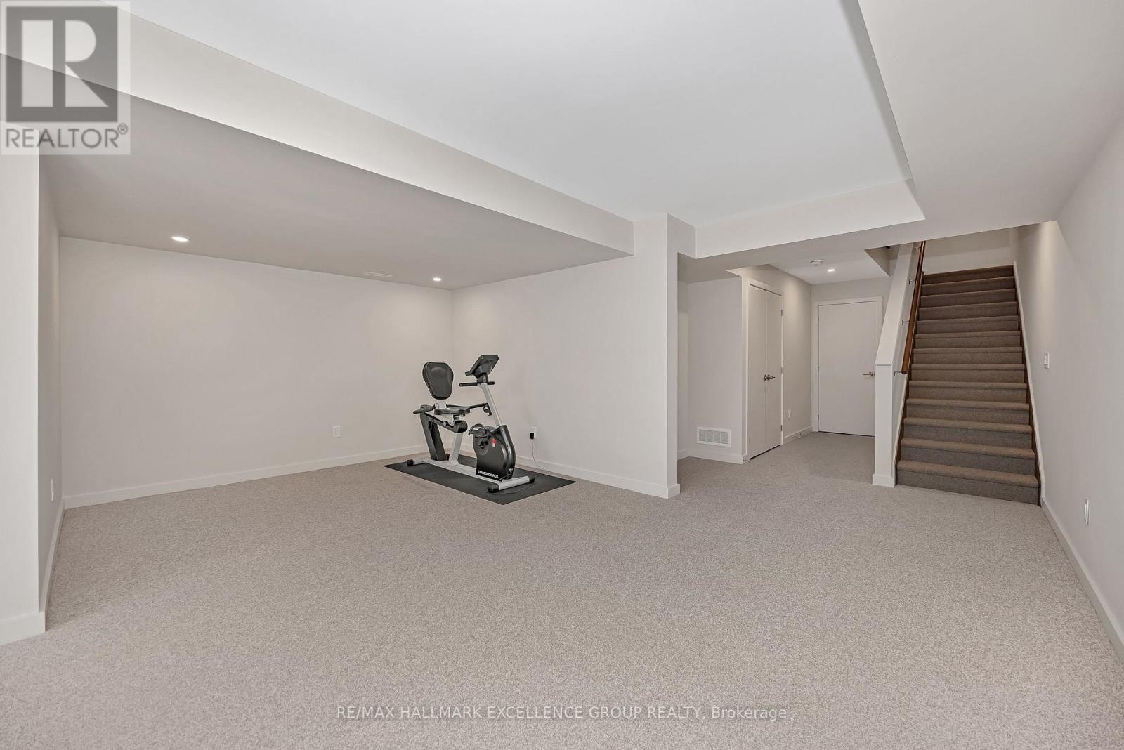 Quality built by award-winning HN Homes and sun-filled in Riverside South, this superior Weston executive townhome offers 2,112 sq ft of interior living space (as per builder) with an elegant, contemporary layout. A rare opportunity to own a near-new home in pristine condition, enhanced with premium upgrades & smart extras.The open-concept main level is awash in natural light, with oversized windows creating a bright, upscale ambiance throughout. Rich hardwood floors, 9'+ ceilings, steel & glass railings, & cozy gas fireplace add warmth and sophistication. The gourmet kitchen shines with ultra-resistant, eco-friendly PET (polyethylene terephthalate) cabinetry to the ceiling w/ soft-close doors/drawers, pantry, breakfast bar, stainless steel appliances, upgraded backsplash & oversized quartz counters with striking waterfall edge. Gas lines for the stove and BBQ plus water line for the fridge are in place, PET cabinetry continues in both bathrooms and the laundry room for a cohesive, modern look. Up the extra-wide hardwood staircase to three generous bedrooms, two full baths, an upgraded laundry room, and a versatile loft-ideal for a home office, lounge, or reading retreat. The primary suite is a sanctuary with coffered ceiling, large walk-in closet, and spa-like ensuite with double vanity and glass corner shower. The finished lower level expands the living space with a large family room, egress window, abundant storage, and rough-in for a future 3-piece bath. Enjoy southern rear exposure and a completed sodded yard. Outside, Solid brick and luxury Hardy Board siding adds lasting curb appeal, while the insulated garage keeps seasons comfortable. Additional highlights include whisper-quiet central A/C, eavestroughs with gutter guards, Wi-Fi thermostat, large mudroom, pre-rough in for EV charger, pre-wire for upstairs Wi-Fi extender and future solar panels, plus electrical/cable for wall-mounted TVs on all floors. Move-in ready .24 hours irrevocable on all offers. (id:64974)