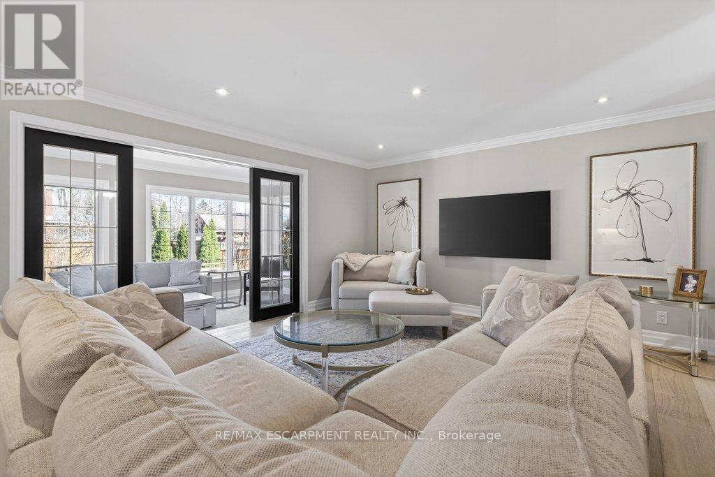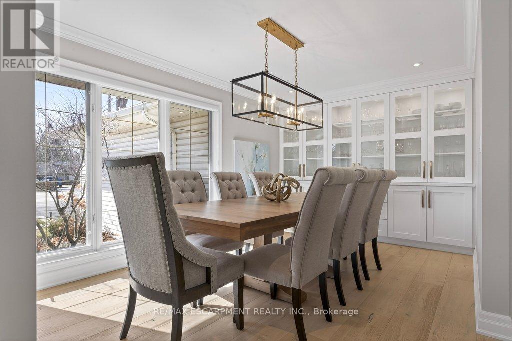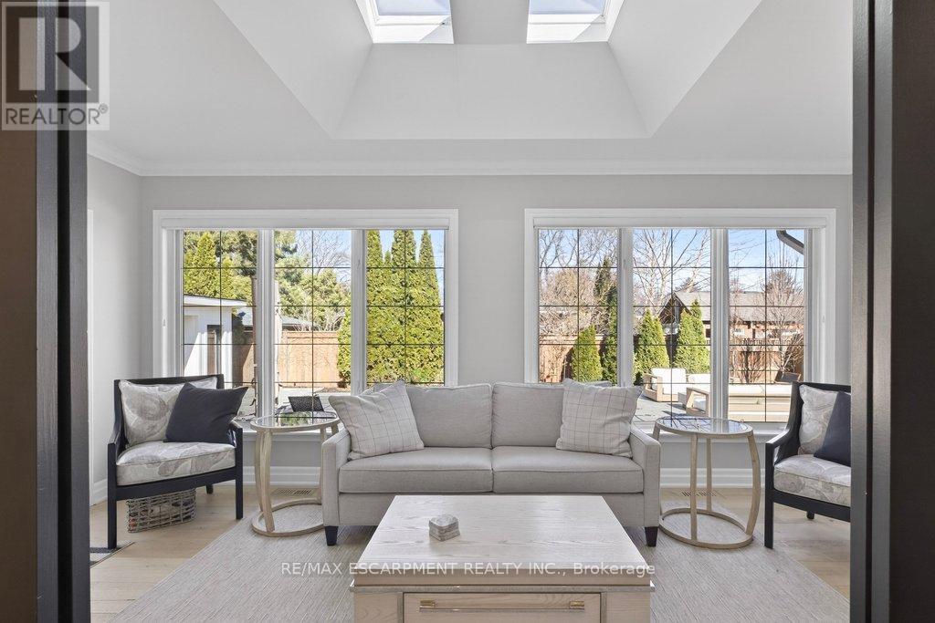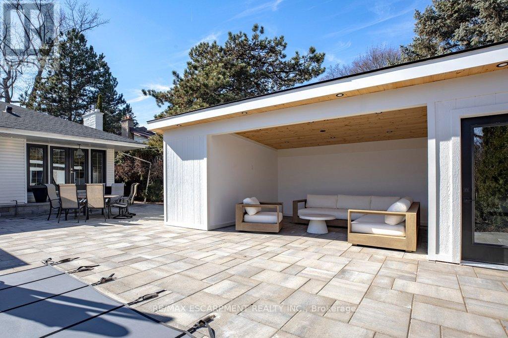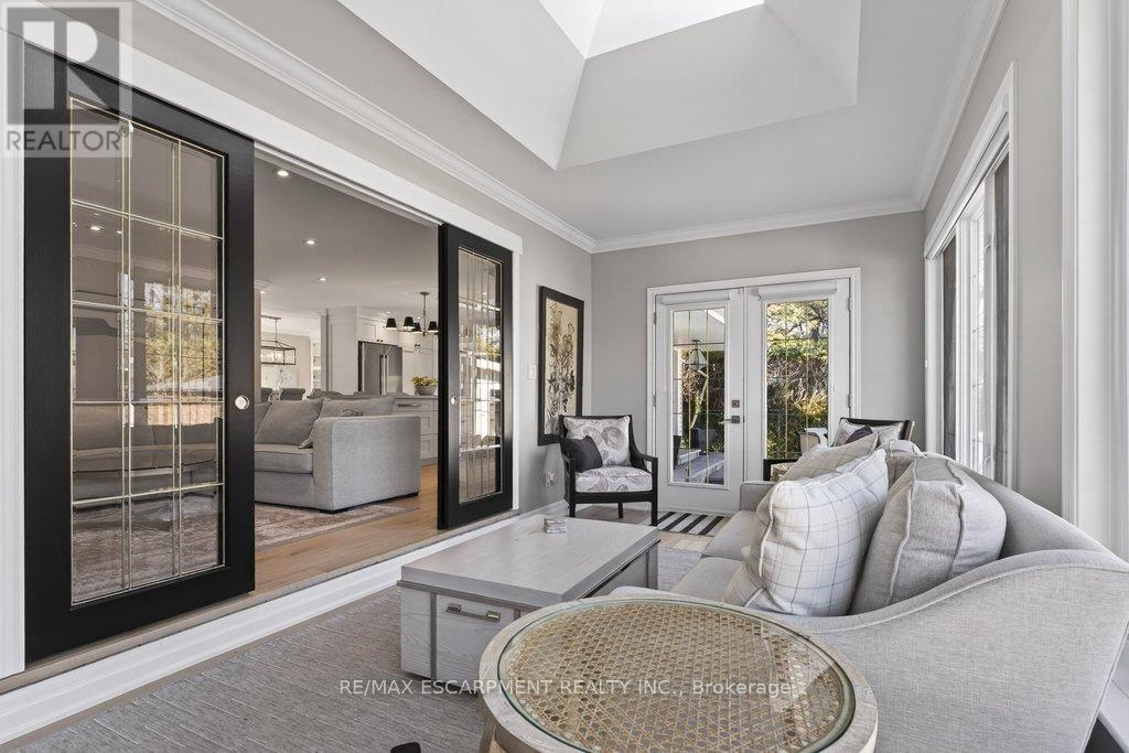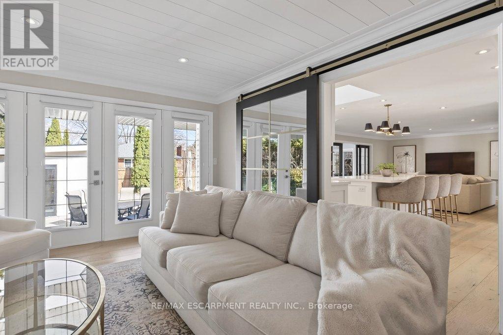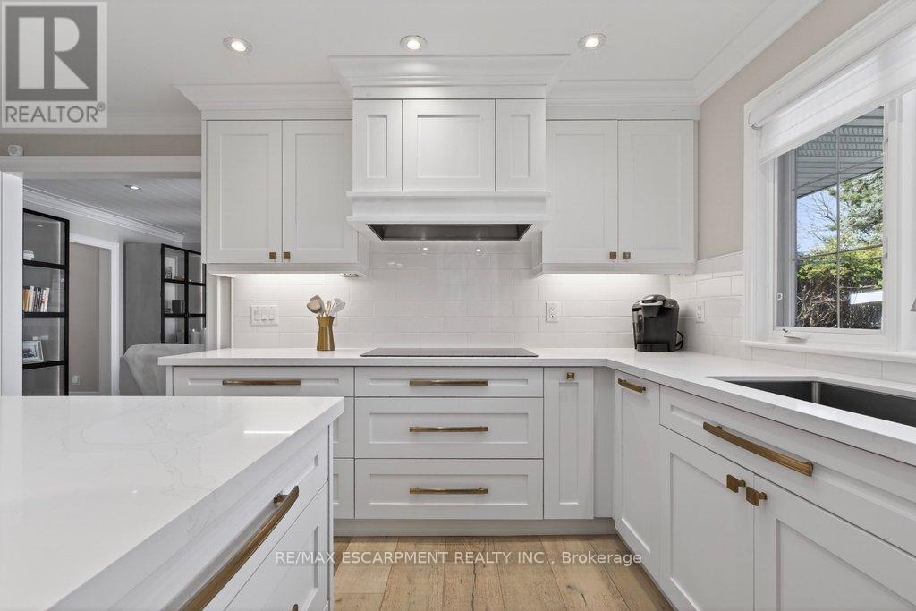 Stunning and absolutely beautiful ranch bungalow in sought-after Aldershot location! Steps to downtown, Burlington Golf & Country Club and LaSalle Park/Marina. 2,126 sq.ft. of open concept main level living space that features a custom kitchen with oversized island, quartz countertops, stainless steel appliances and wine fridge. Primary bedroom with custom built-ins, a 3-piece ensuite with heated floor, access to a walk-in closet/dressing room and a walkout to the 4-season sunroom. The main level also features a spacious family room, a second bedroom, a separate dining room and a living room with a gas fireplace and walkout to an incredible backyard oasis! The professionally designed and landscaped yard completed in 2025 features a heated fiberglass saltwater pool, cabana, gas fire pit, landscape lighting and a large stone patio with gas BBQ hookup. Additional features and finishes include engineered hardwood floors, crown moulding, pot lighting, multiple skylights and a professionally finished lower level with laundry, large crawl space for storage and an additional bedroom with access to a recent 4-piece bathroom (2024). Double garage with inside entry and epoxy floor and a recently updated circular driveway and front walkway (2025). 2+1 bedrooms and 3.5 bathrooms. (id:64974)