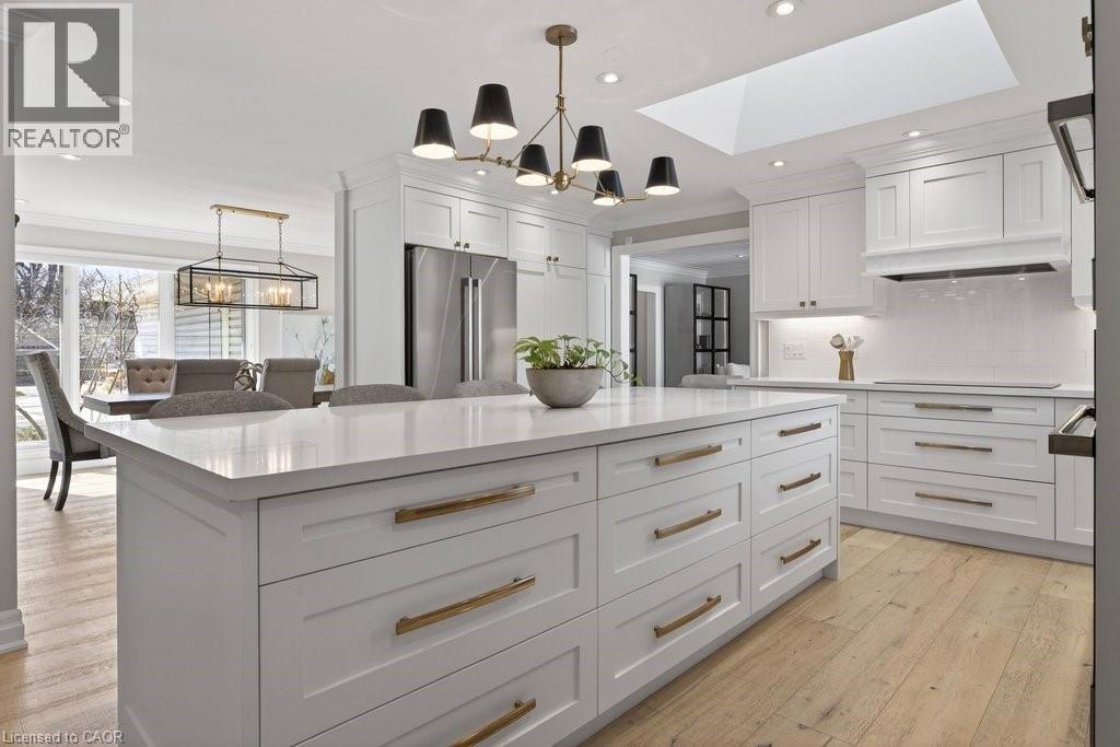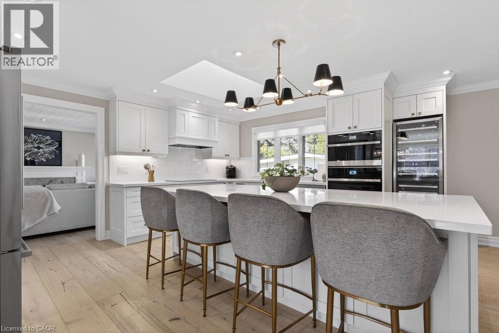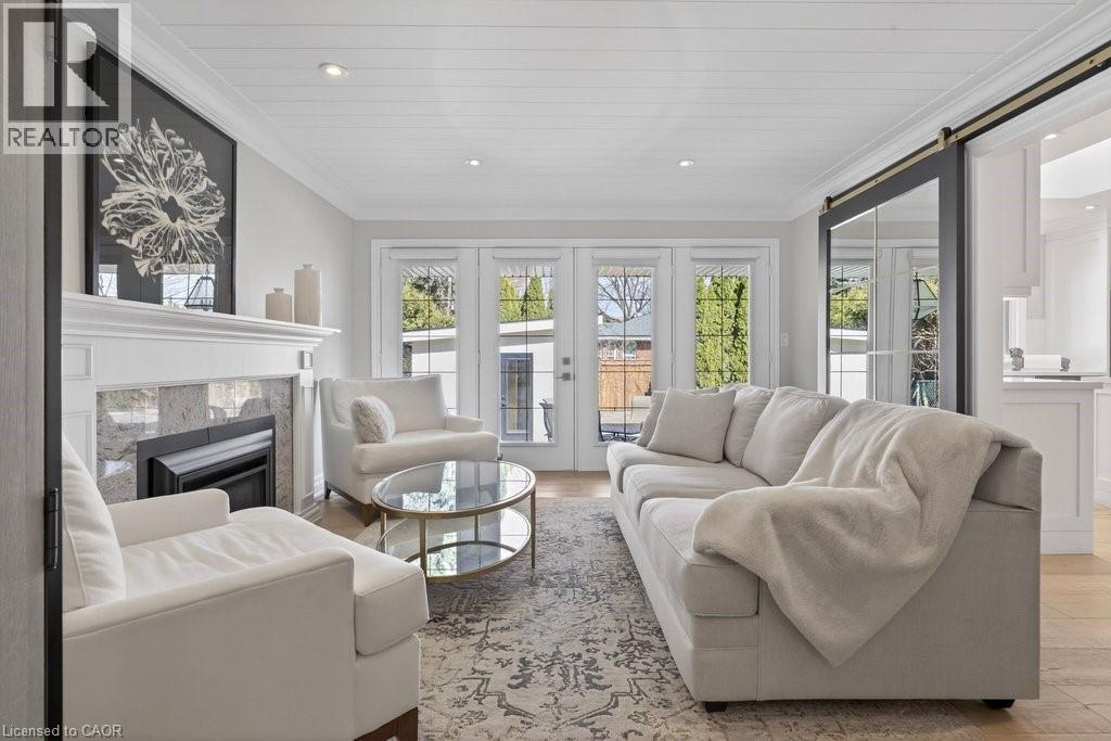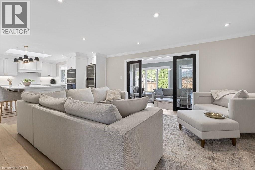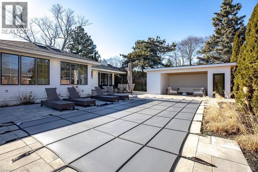 Stunning and absolutely beautiful ranch bungalow in sought-after Aldershot location! Steps to downtown, Burlington Golf & Country Club and LaSalle Park/Marina. 2,126 sq.ft. of open concept main level living space that features a custom kitchen with oversized island, quartz countertops, stainless steel appliances and wine fridge. Primary bedroom with custom built-ins, a 3-piece ensuite with heated floor, access to a walk-in closet/dressing room and a walkout to the 4-season sunroom. The main level also features a spacious family room, a second bedroom, a separate dining room and a living room with a gas fireplace and walkout to an incredible backyard oasis! The professionally designed and landscaped yard completed in 2025 features a heated fiberglass saltwater pool, cabana, gas fire pit, landscape lighting and a large stone patio with gas BBQ hookup. Additional features and finishes include engineered hardwood floors, crown moulding, pot lighting, multiple skylights and a professionally finished lower level with laundry, large crawl space for storage and an additional bedroom with access to a recent 4-piece bathroom (2024). Double garage with inside entry and epoxy floor and a recently updated circular driveway and front walkway (2025). 2+1 bedrooms and 3.5 bathrooms. (id:64974)