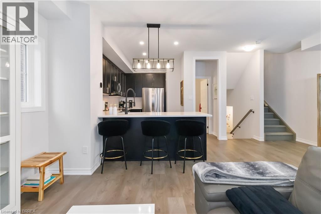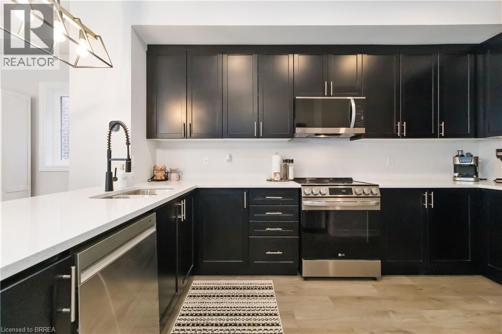 Welcome to this beautifully upgraded end-unit townhome in Brantford’s highly sought-after North End. Offering one of the largest floor plans in the complex, this home features a bright foyer leading to a spacious open-concept main level with seamless living, dining, and kitchen areas—perfect for everyday living and entertaining. The modern kitchen boasts granite countertops, stainless steel appliances, and a large peninsula with seating. Step out through the garden door to a fully covered balcony, ideal for year-round enjoyment. A convenient powder room completes the main floor. Upstairs, you’ll find three generous bedrooms, including a primary suite with walk-in closet and private ensuite, plus an additional full bath and second-floor laundry. Ideally located close to schools, parks, shopping, and amenities, with a new park currently being developed behind the property. A move-in-ready home offering space, comfort, and an excellent North End location. (id:64974)