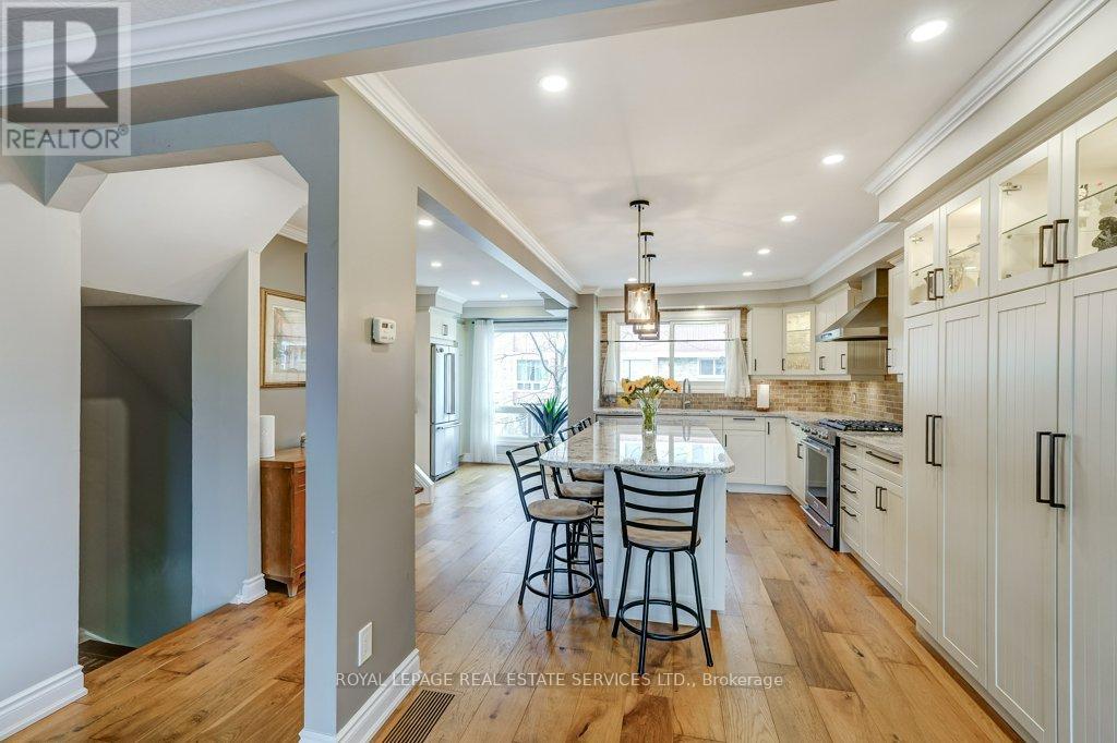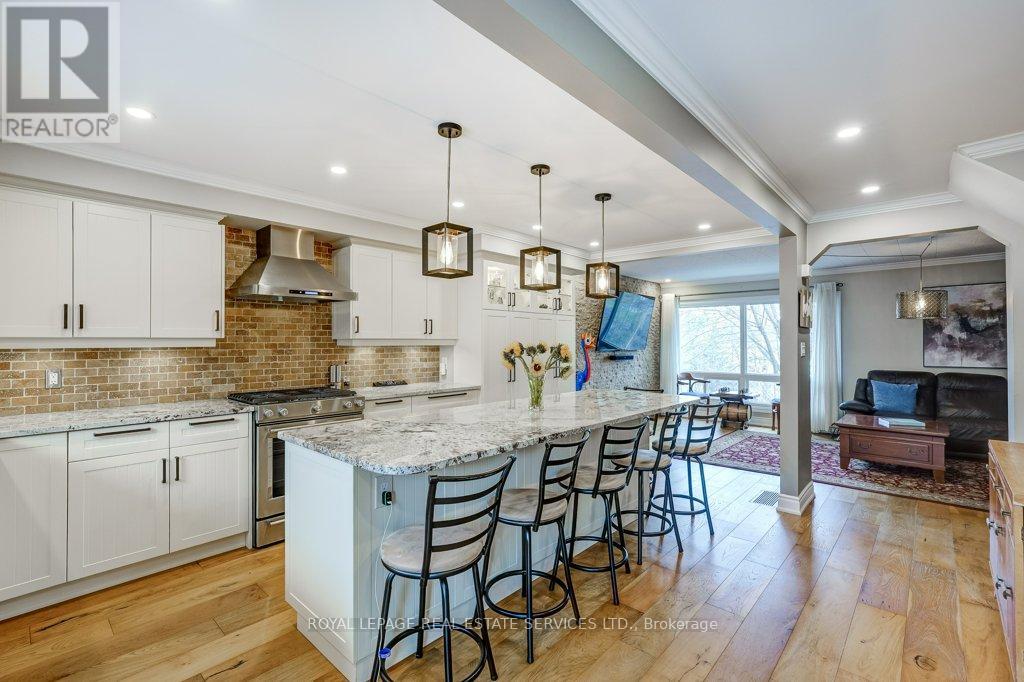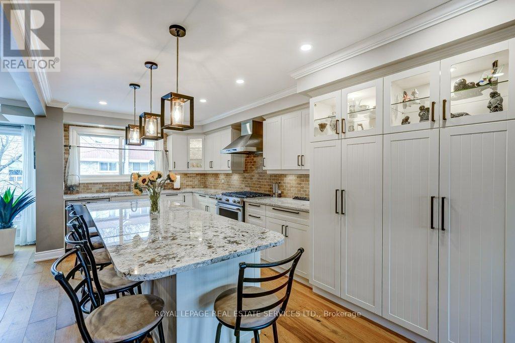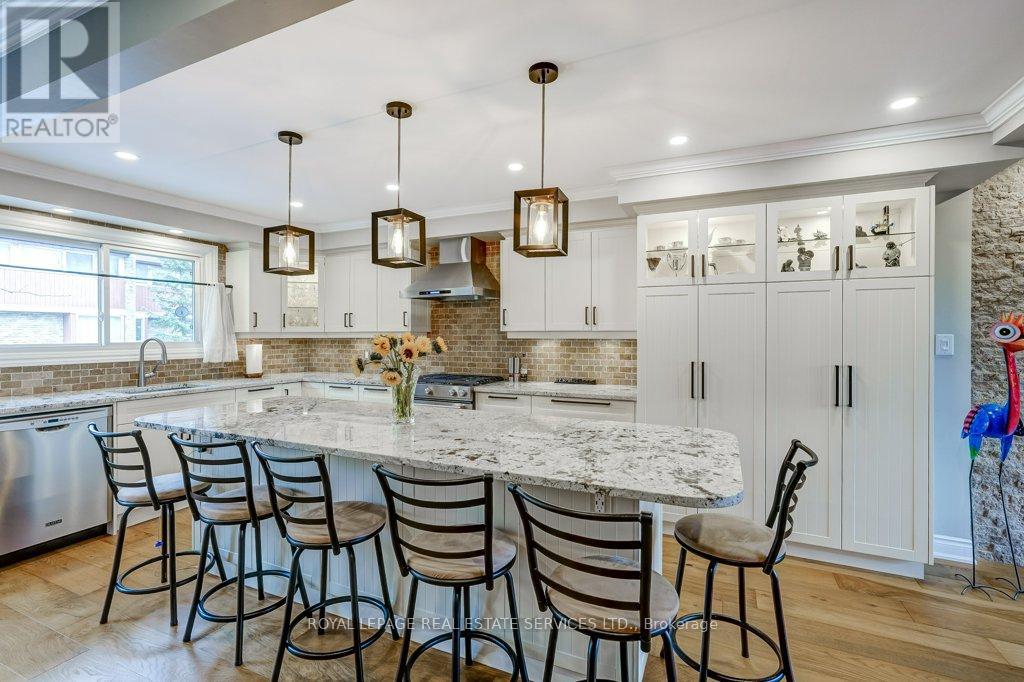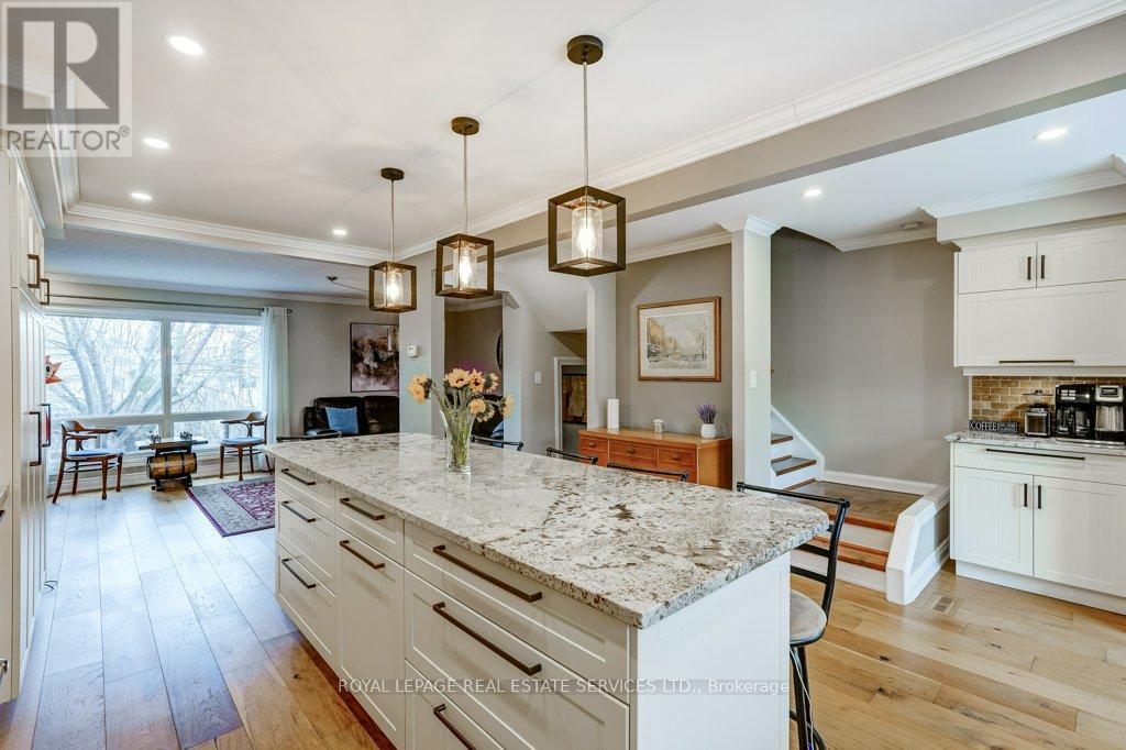 MULTI TIER DECK OVER SHERIDAN CREEK&RAVINE, NO REAR NEIGHBOURS! Listen to the babbling brook, sipping a cocktail, with a sausage on the Bar B Q.Welcome to Clarkson Village's hidden gem, 68-915 Inverhouse Drive! This 4 bedroom model, converted to 3 beds on upper level, carpet free with Hardwood floors in all bedrooms. Gorgeous Open main floor Kitchen, with 7 1/2 inch wide plank Hardwood floors, a huge Granite Island w/6 stools, Stainless Steel built in appliances, Tumbled marble backsplash, under and in cabinet lighting- All over looking the Living room and Tranquil rear garden. Convenient ground floor Laundry closet, 2 pc Powder room, inside Garage access with auto door opener, and Patio door walk out to your private Decks, Gazebo and Napoleon Gas Grill-all included. Great spot for all amenities-within walking distance, including Clarkson GO Station! Rattray Marsh Conservation area, the Bradley Museum and fine restaurants of the Village are a short stroll. Friendly neighbours with shared playground, inground Pool and ample visitor parking. (id:64974)