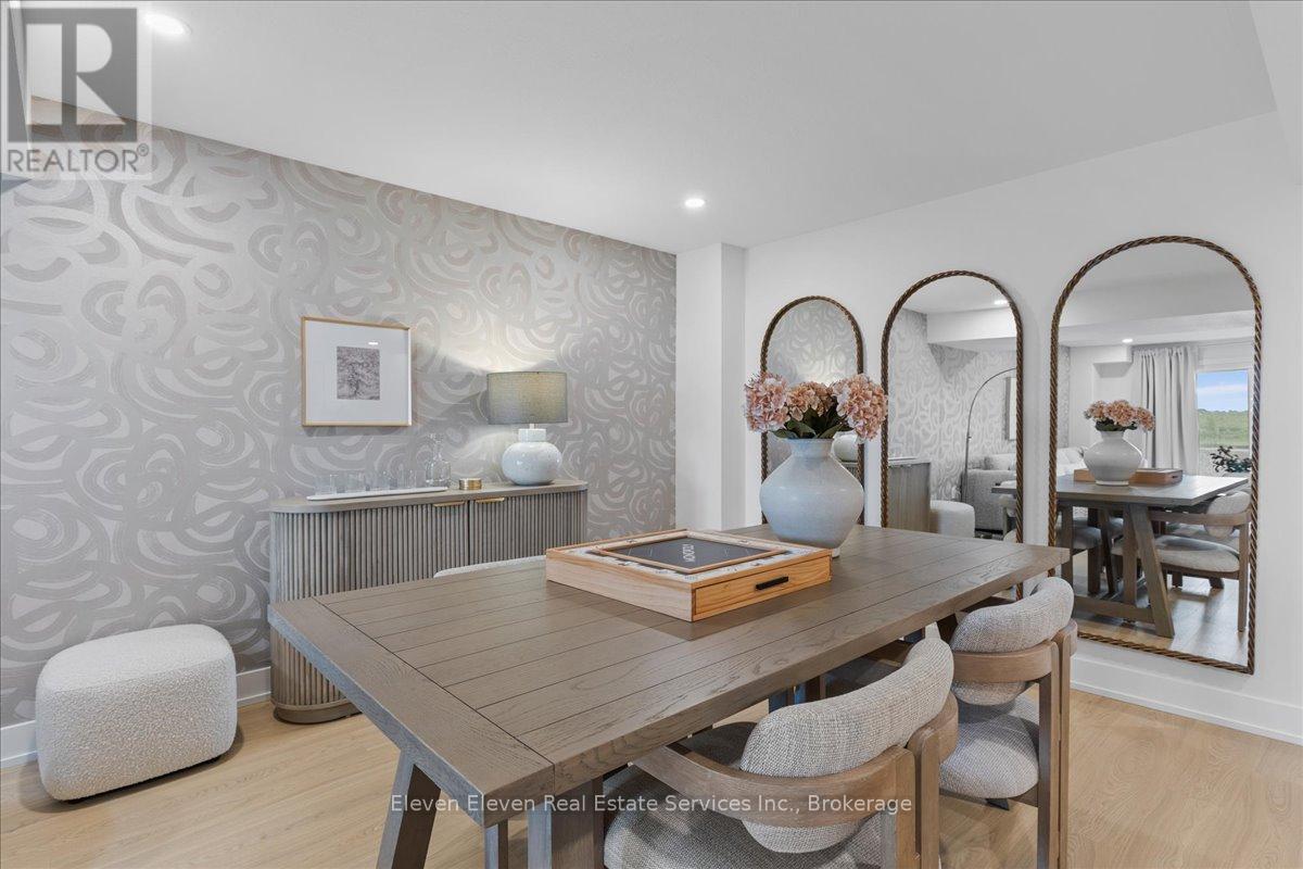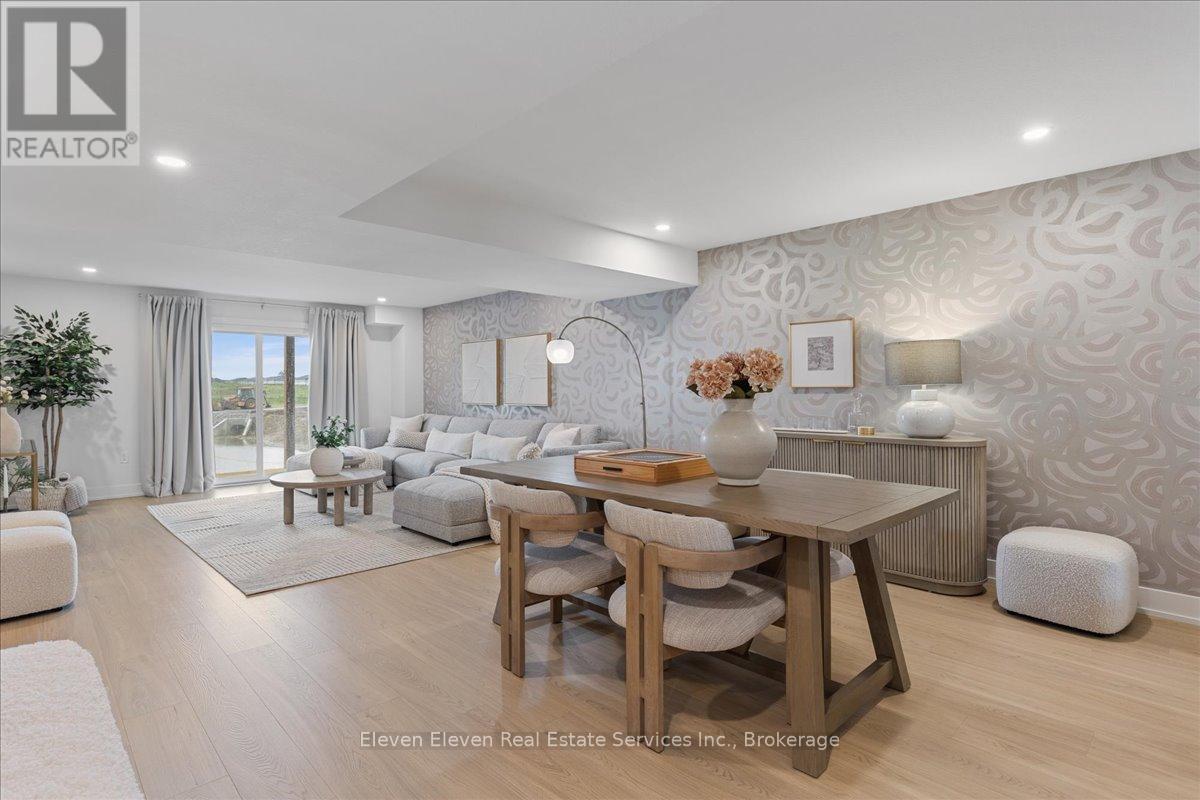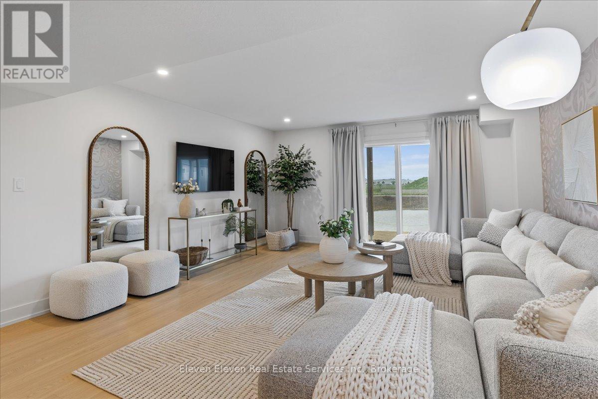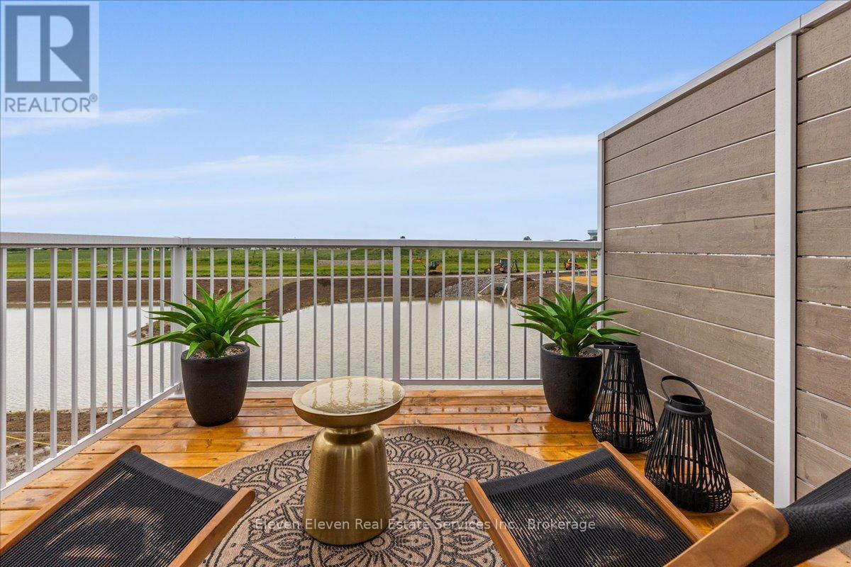 Elevate your lifestyle in "The Retreat", a beautifully crafted bungalow townhome offering 2 bedrooms, 2 bathrooms, and parking for two vehicles with a single-car garage and shared driveway. With 1,215 sq. ft. of thoughtfully designed living space, this home blends comfort, style, and lasting quality. Enjoy 9 ft ceilings on the main level, a bright open-concept layout, and a modern kitchen featuring quartz countertops, stainless steel appliances, and contemporary finishes throughout. Every detail has been designed to deliver everyday ease and long-term durability. The home boasts an unfinished walk-out basement and backs onto a pond. Built with the exceptional craftsmanship that defines Reid's Heritage Homes' 45+ year legacy, this home sits within a vibrant community surrounded by trails, parks, dining, and Stratford's renowned theatre scene. Modern design, effortless living - welcome to The Retreat at Poet & Perth. Photos are of model home, actual finishes may vary. This home is not yet built. Basement will be unfinished. (id:64974)