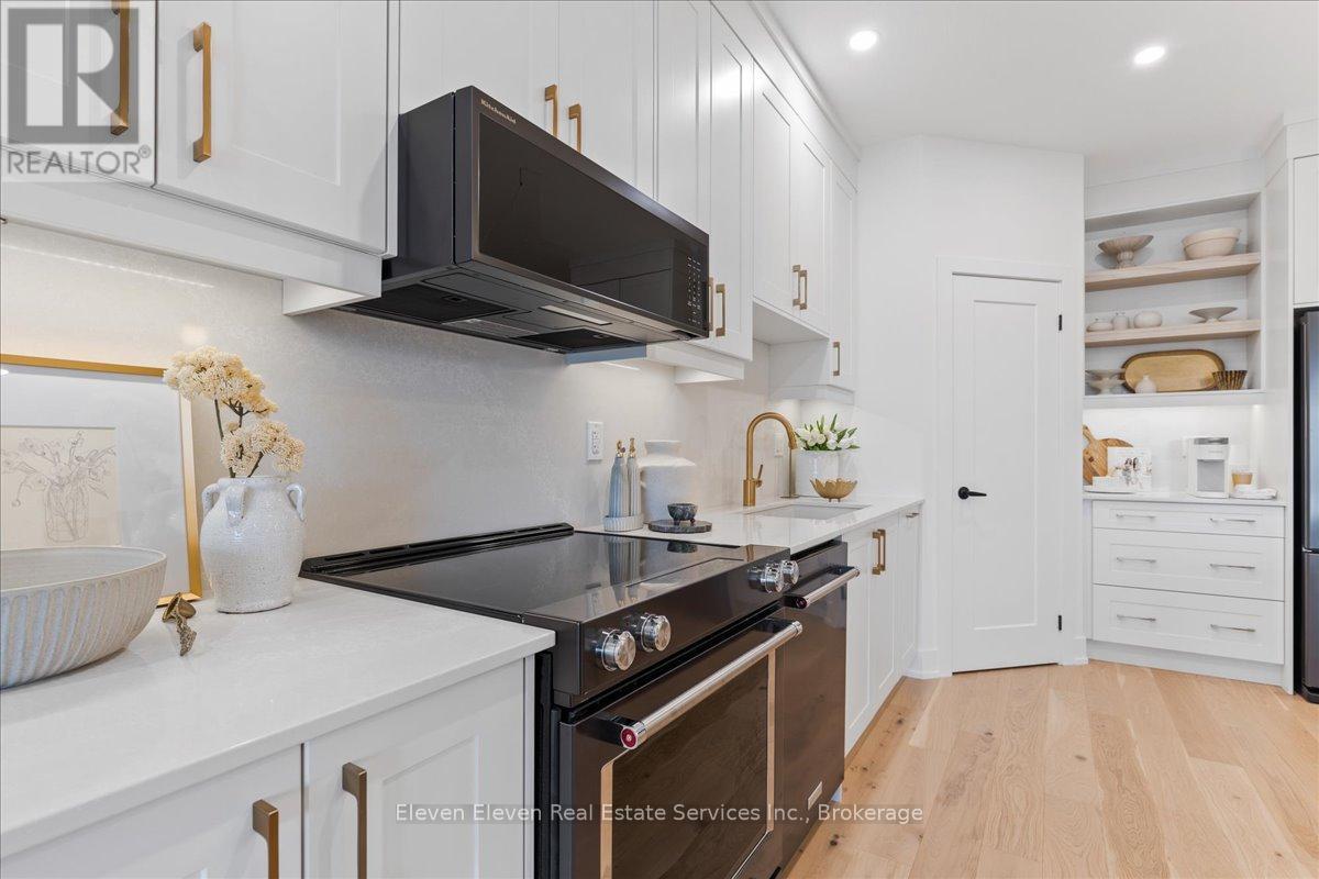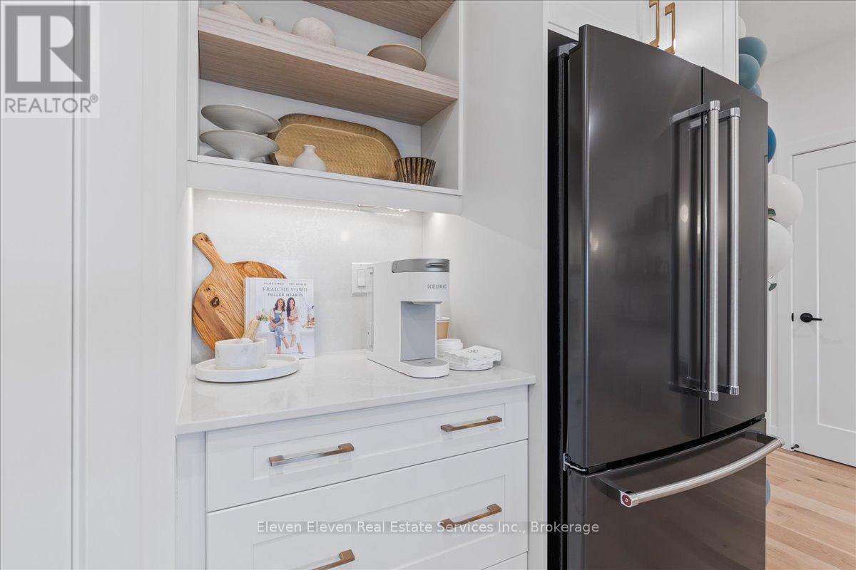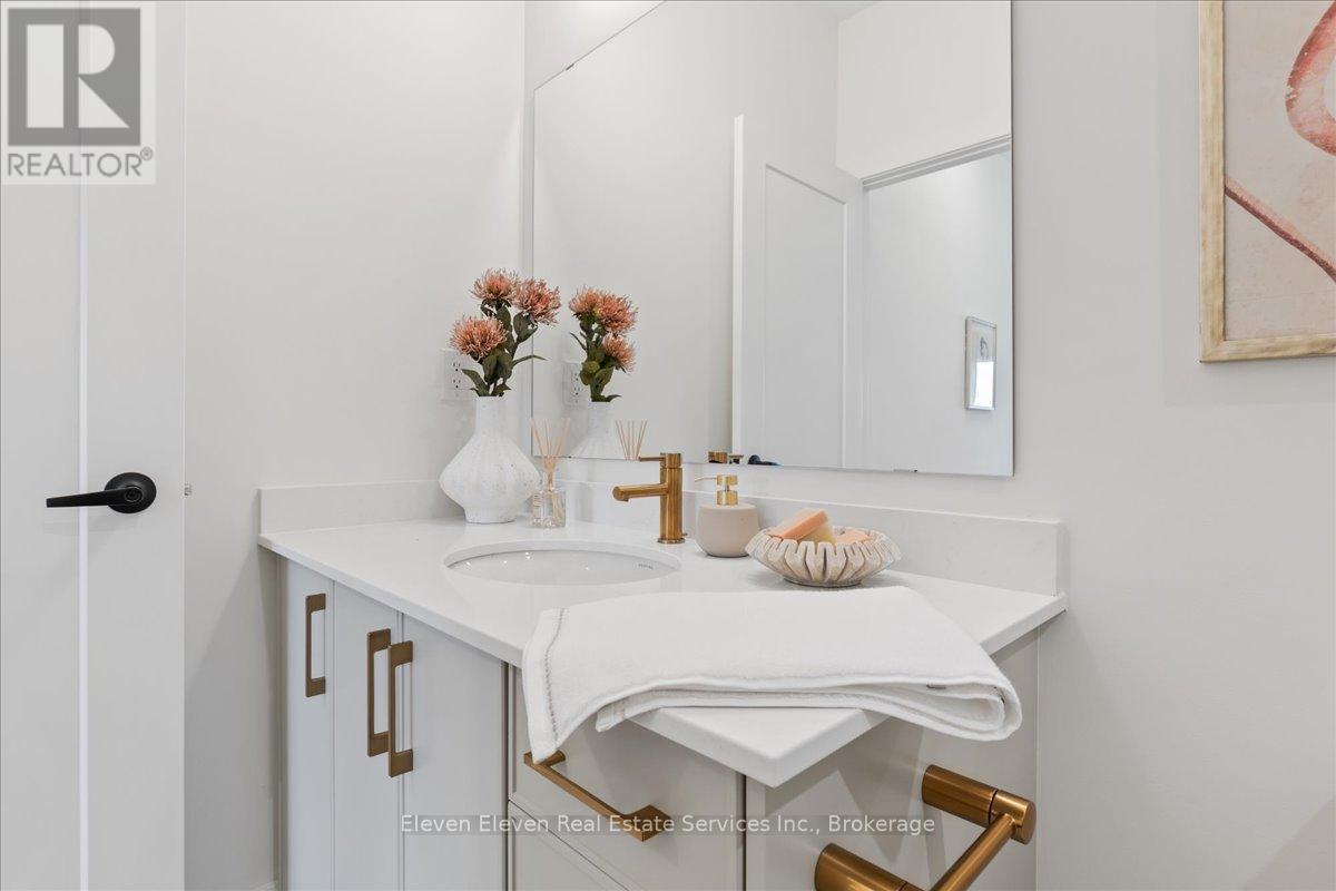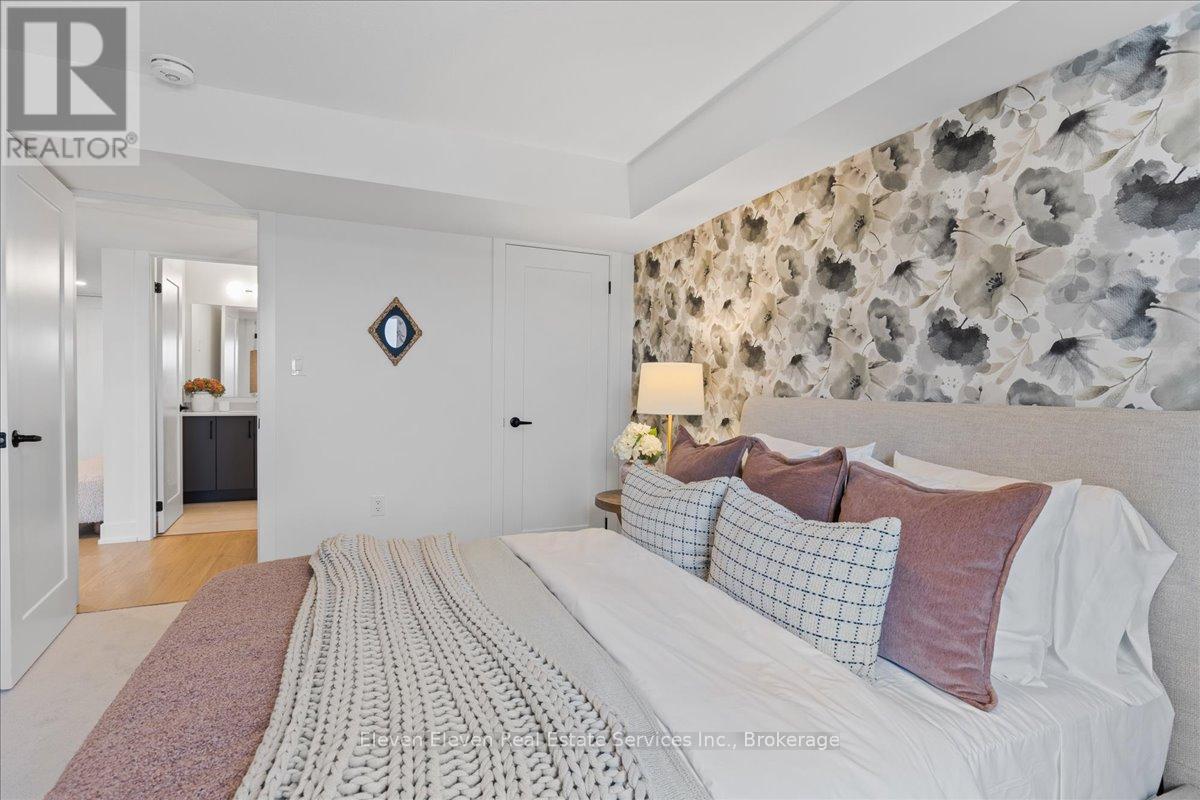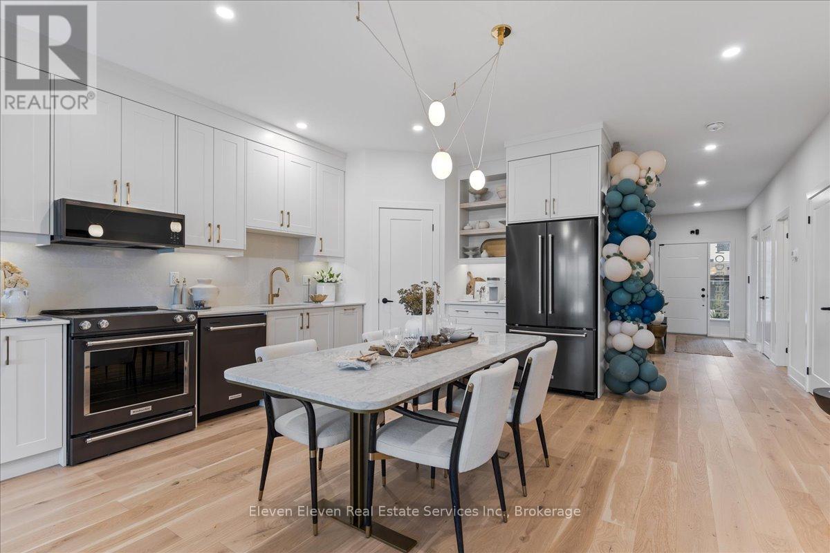 Elevate your lifestyle in "The Retreat", a beautifully crafted bungalow townhome offering 2 bedrooms, 2 bathrooms, and parking for two vehicles with a single-car garage and shared driveway. With 1,215 sq. ft. of thoughtfully designed living space, this home blends comfort, style, and lasting quality. Enjoy 9 ft ceilings on the main level, a bright open-concept layout, and a modern kitchen featuring quartz countertops, stainless steel appliances, and contemporary finishes throughout. Every detail has been designed to deliver everyday ease and long-term durability. The home boasts an unfinished walk-out basement and backs onto a pond. Built with the exceptional craftsmanship that defines Reid's Heritage Homes' 45+ year legacy, this home sits within a vibrant community surrounded by trails, parks, dining, and Stratford's renowned theatre scene. Modern design, effortless living - welcome to The Retreat at Poet & Perth. Photos are of model home, actual finishes may vary. This home is not yet built. Basement will be unfinished. (id:64974)