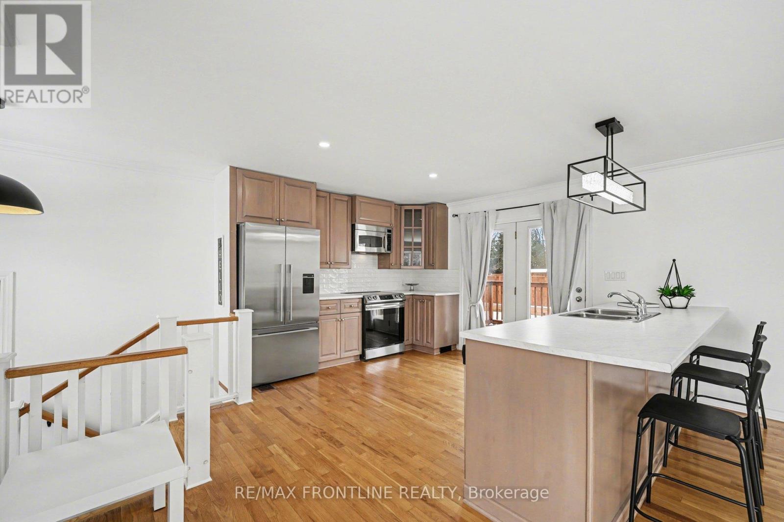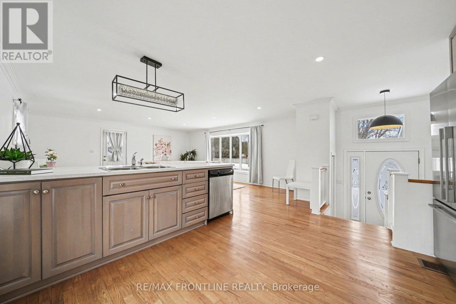 Welcome to this cheerful brick-faced side-split nestled in the heart of beautiful heritage Perth - a perfect blend of comfort, character, and convenience. Bright and airy, this inviting home is perfect for first-time buyers, retirees or anyone seeking small-town charm and modern-day accessibility. At the heart of the home is a gorgeous new kitchen, featuring an expansive breakfast bar open to light-filled living/dining areas, making it ideal for effortless entertaining and everyday living. Convenient garden doors lead to a spacious new deck, perfect for BBQs, outdoor dining, and relaxing with family and friends.The classic side-split layout offers both flow and functionality. Just a few steps down from the main living area, you'll find a versatile flex space-ideal for a home office or study-along with a convenient laundry area with stacked washer/dryer. This level also includes 2 generously sized bedrooms boasting high ceilings - your spacious primary suite flows to a 4-piece ensuite, while the second bedroom & 4-piece bathroom are designated for family or guests. Set on an oversized 100 x 100 ft corner lot, enjoy a nearly fully fenced yard with plenty of room for kids, pets or projects - why not add a pool or play-structure for the kids/grandkids... or perhaps a large garden or landscaping design to make it your own! Located within walking distance to downtown Perth, you'll love the charming shops, cafés, restaurants, parks, and nearby amenities, including the hospital, grocery stores, and Perth Mews Mall-everything you need close to home. 24 hours irrevocable on all offer as per form 244. (id:64974)