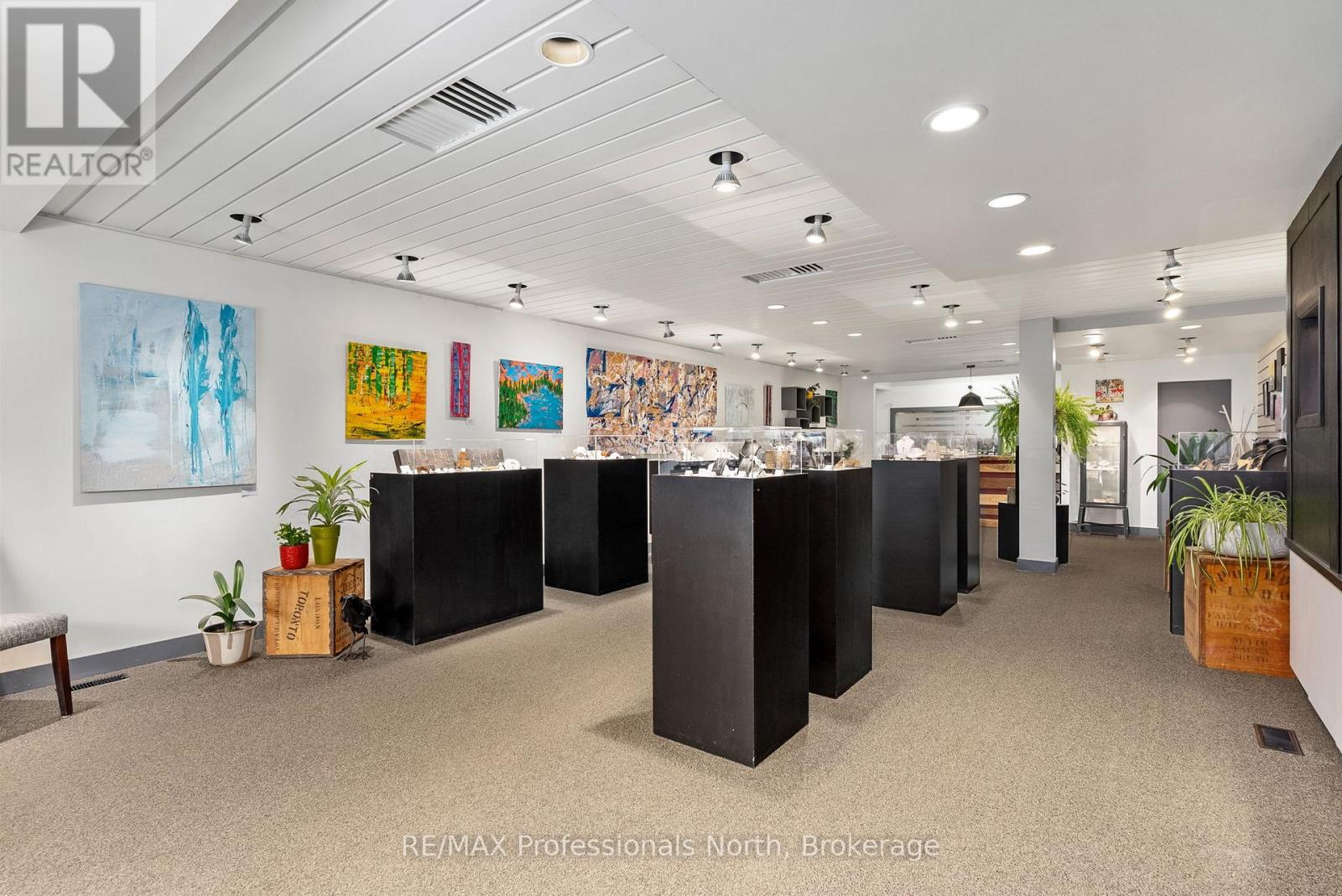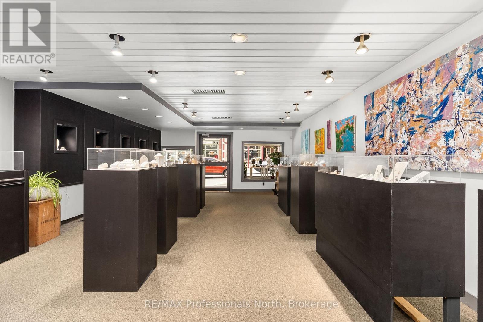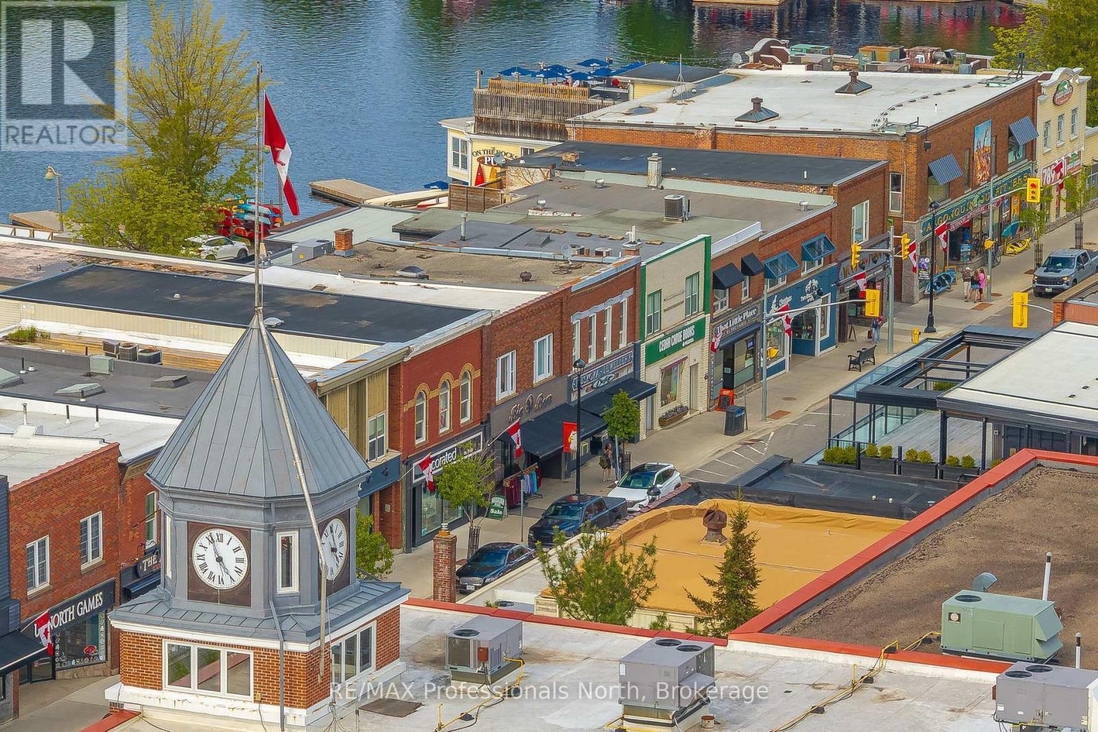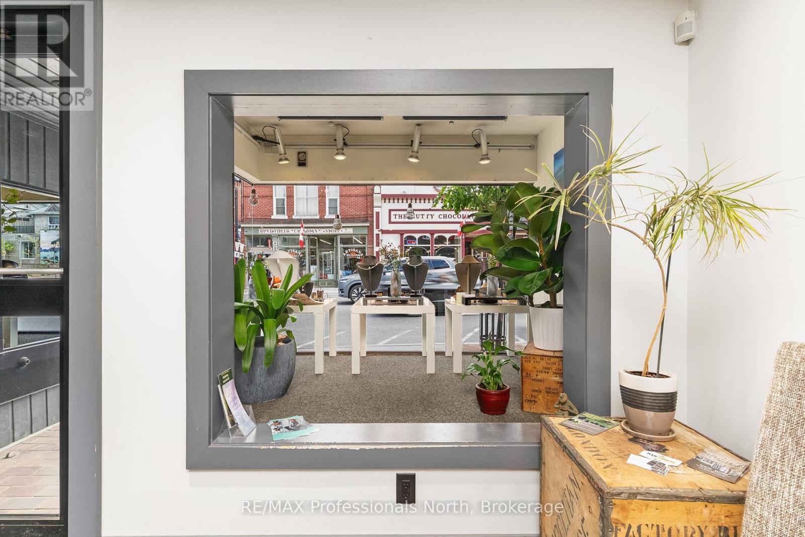 Prime Downtown Commercial Building with a beautiful 2-bedroom upstairs apartment with separate entrance, and just a few steps from the Muskoka River! Own a piece of prime real estate in the heart of downtown Huntsville adjacent to the stunning Muskoka River and Town Docks. This beautifully maintained, two-story commercial/residential building offers the perfect combination of business potential and stylish living space. Whether you're an investor, entrepreneur, or someone seeking a live/work lifestyle, this property is a rare find. The Main Floor Commercial Space offers a High-visibility storefront with large display windows, 1400 square feet of flexible retail/office space, a modern, open layout, and access to the full, unfinished, walk-out basement which opens onto a large undeveloped rear yard offering further expansion potential. The Upper floor boasts a stunning 2-bedroom, 1-bath apartment accessed by a private entrance, with loads of natural light, a modern kitchen with stainless steel appliances, large living room, and a fabulous rooftop patio off the kitchen with views over the Muskoka River; perfect for morning coffee or sunset evenings. This incredible package offers high foot traffic, a visually striking storefront close to a controlled intersection so people can window shop from their vehicles, a strong local business community, walking distance to parks, restaurants, shops, entertainment and more. Come explore the seemingly endless potential for both residential and commercial income, or the convenience of owner-occupied business location. Don't miss this rare opportunity to own a character-filled downtown building in the heart of Huntsville with built-in income potential and incredible lifestyle appeal. **Building and land for sale only. Total square footage includes basement (3965 sq.ft) (id:64974)