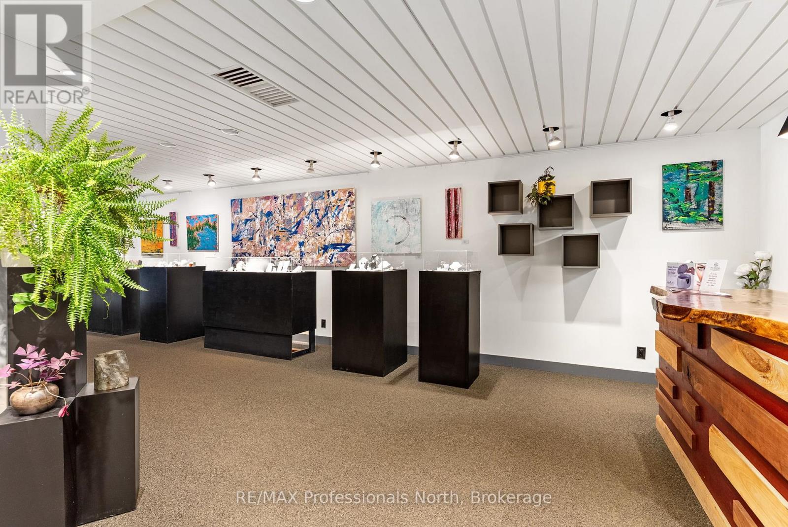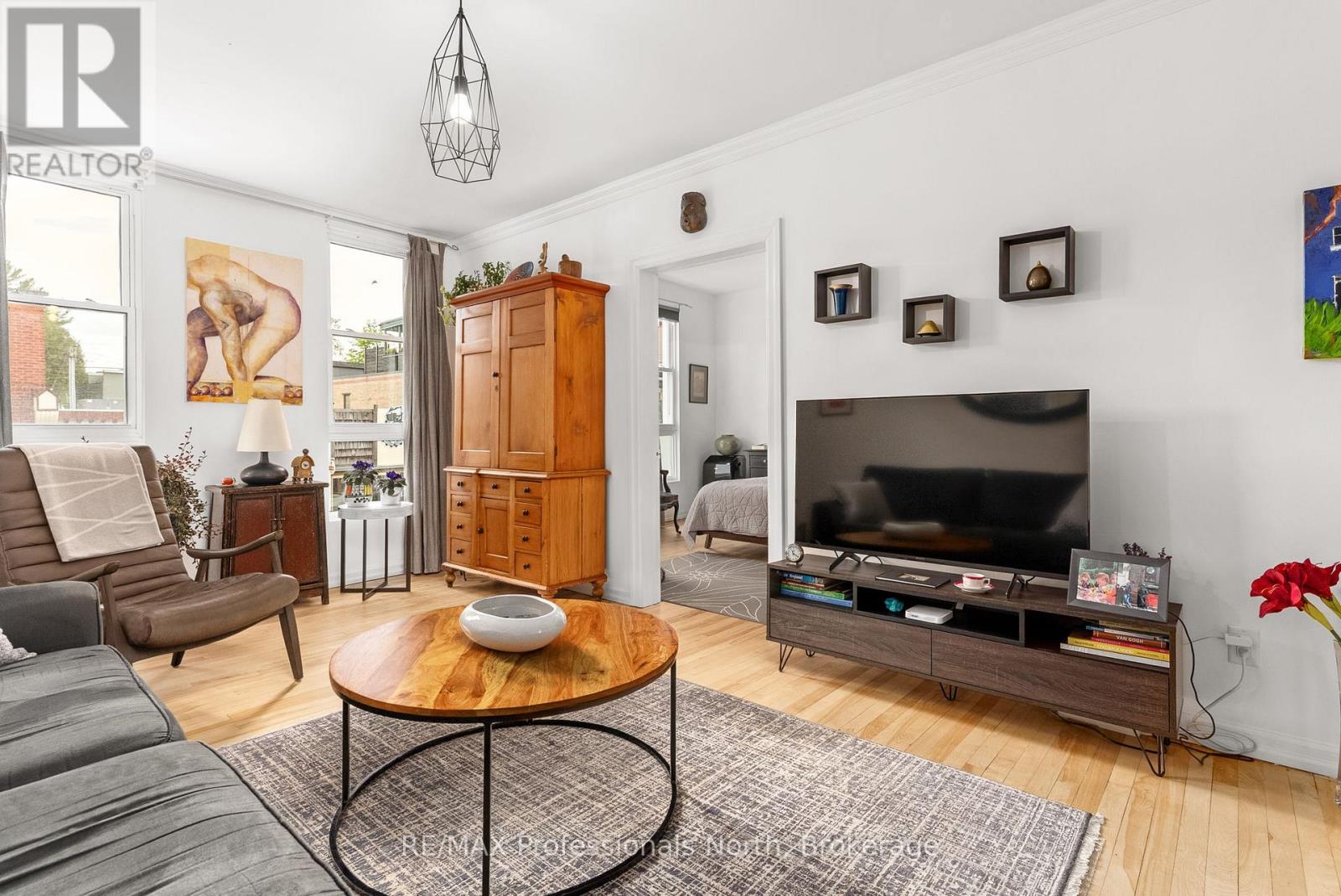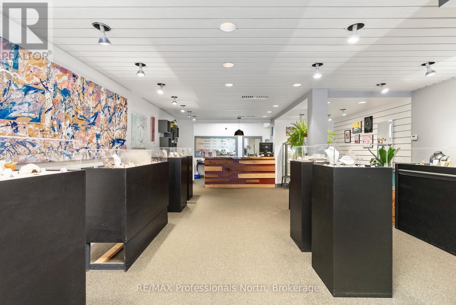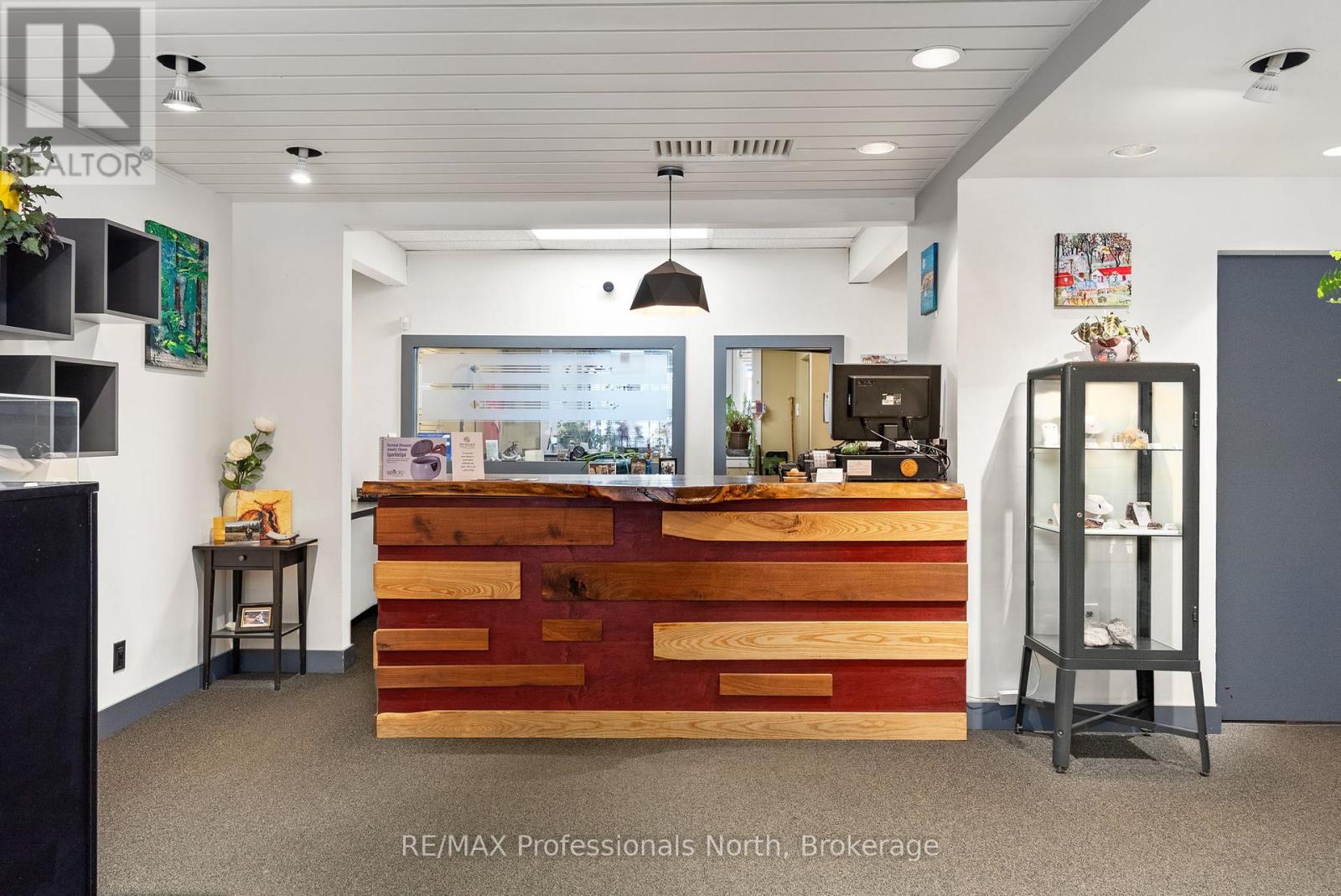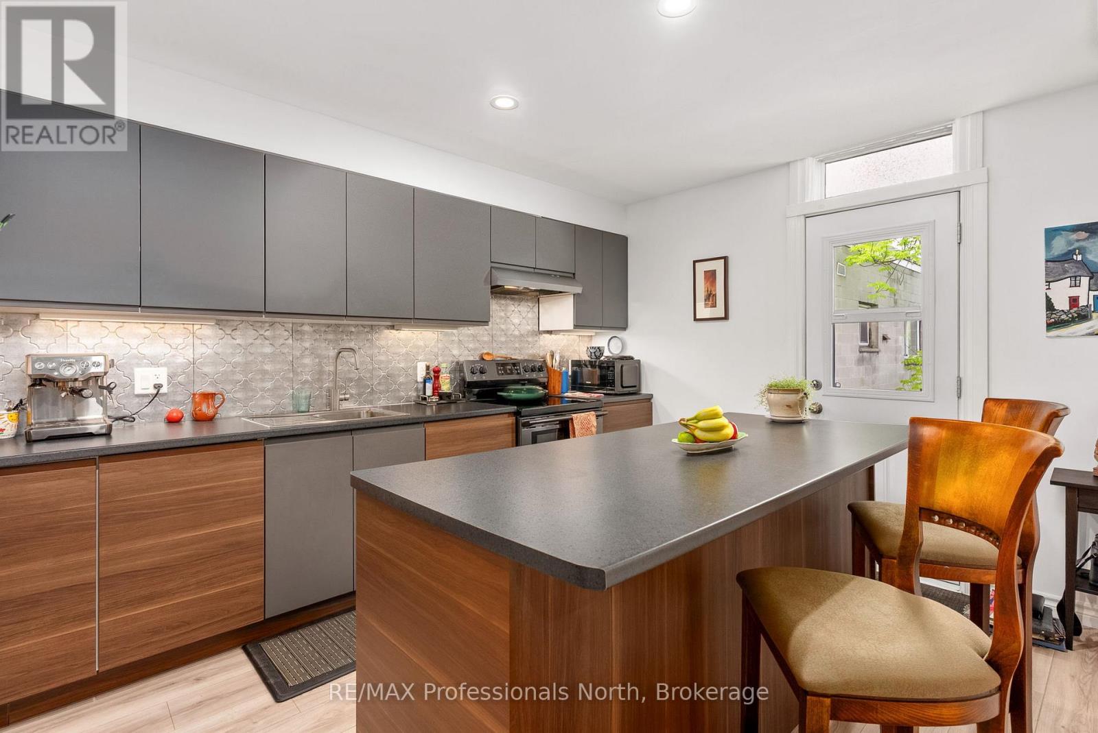 Prime Downtown Commercial Building with a beautiful 2-bedroom upstairs apartment with separate entrance, and just a few steps from the Muskoka River! Own a piece of prime real estate in the heart of downtown Huntsville adjacent to the stunning Muskoka River and Town Docks. This beautifully maintained, two-story commercial/residential building offers the perfect combination of business potential and stylish living space. Whether you're an investor, entrepreneur, or someone seeking a live/work lifestyle, this property is a rare find. The Main Floor Commercial Space offers a High-visibility storefront with large display windows, 1400 square feet of flexible retail/office space, a modern, open layout, and access to the full, unfinished, walk-out basement which opens onto a large undeveloped rear yard offering further expansion potential. The Upper floor boasts a stunning 2-bedroom, 1-bath apartment accessed by a private entrance, with loads of natural light, a modern kitchen with stainless steel appliances, large living room, and a fabulous rooftop patio off the kitchen with views over the Muskoka River; perfect for morning coffee or sunset evenings. This incredible package offers high foot traffic, a visually striking storefront close to a controlled intersection so people can window shop from their vehicles, a strong local business community, walking distance to parks, restaurants, shops, entertainment and more. Come explore the seemingly endless potential for both residential and commercial income, or the convenience of owner-occupied business location. Don't miss this rare opportunity to own a character-filled downtown building in the heart of Huntsville with built-in income potential and incredible lifestyle appeal. **Building and land for sale only. Total square footage includes basement (3965 sq.ft) (id:64974)