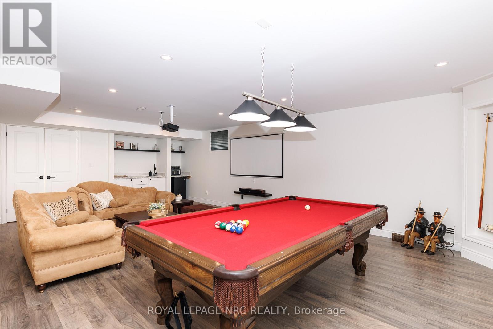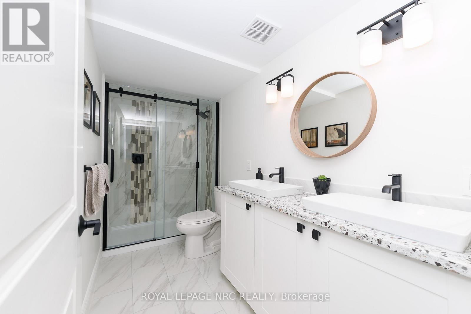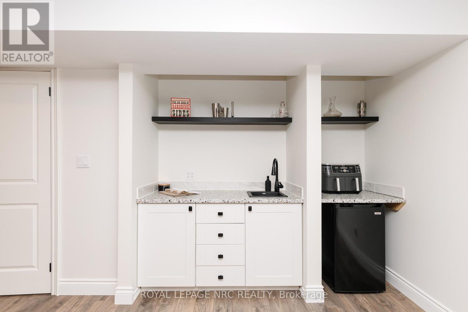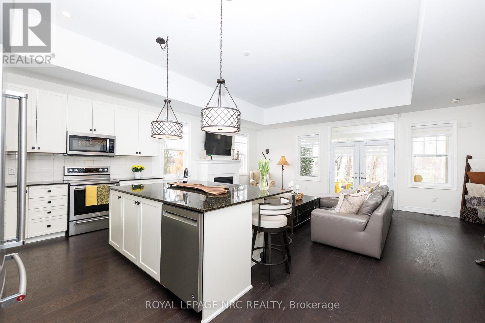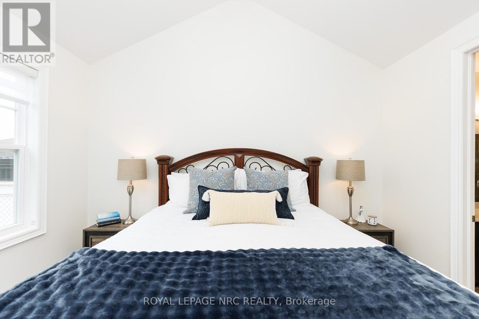 Welcome to Paradise! This freehold, end-unit townhome in Virgil feels more like a semi-detached. An abundance of upgrades makes this 6-year old home feel like new. Finished with hardwood throughout the main floor, this 1423 sqft bungalow boasts an open concept living room and kitchen complete with an oversized, custom, granite-topped island with built-in wine racks and room for plenty of seating. A bright, large living room features a gas F/P and pot lighting with double doors that open to the welcoming backyard. Entertain or simply relax on the multi-level composite deck while enjoying quiet views overlooking a large park with walking path and access to the NOTL arena. This home has no backyard neighbours! Back inside, the significant primary bedroom easily accommodates a king-sized bed. With large windows and ensuite bathroom with double vanity, it's a luxurious retreat in the heart of wine country. When it's time for indoor entertaining, the professionally finished basement with laminate flooring is as ideal as it is impressive. It's sizeable rec room has all the bells and whistles including a pool table, projector with screen, and wet bar area. An additional lower level bedroom features a pocket door to a large, double vanity bathroom, as well as another large unfinished separate room used as a workshop. A short distance from the region's award winning restaurants, wineries, breweries, shopping, golf, and theatre. This immaculate home awaits! (id:64974)