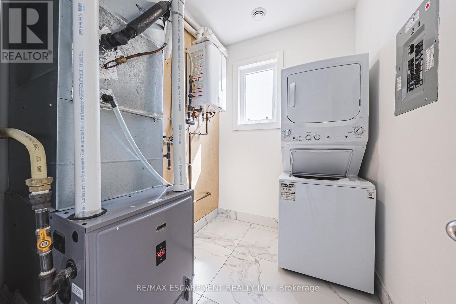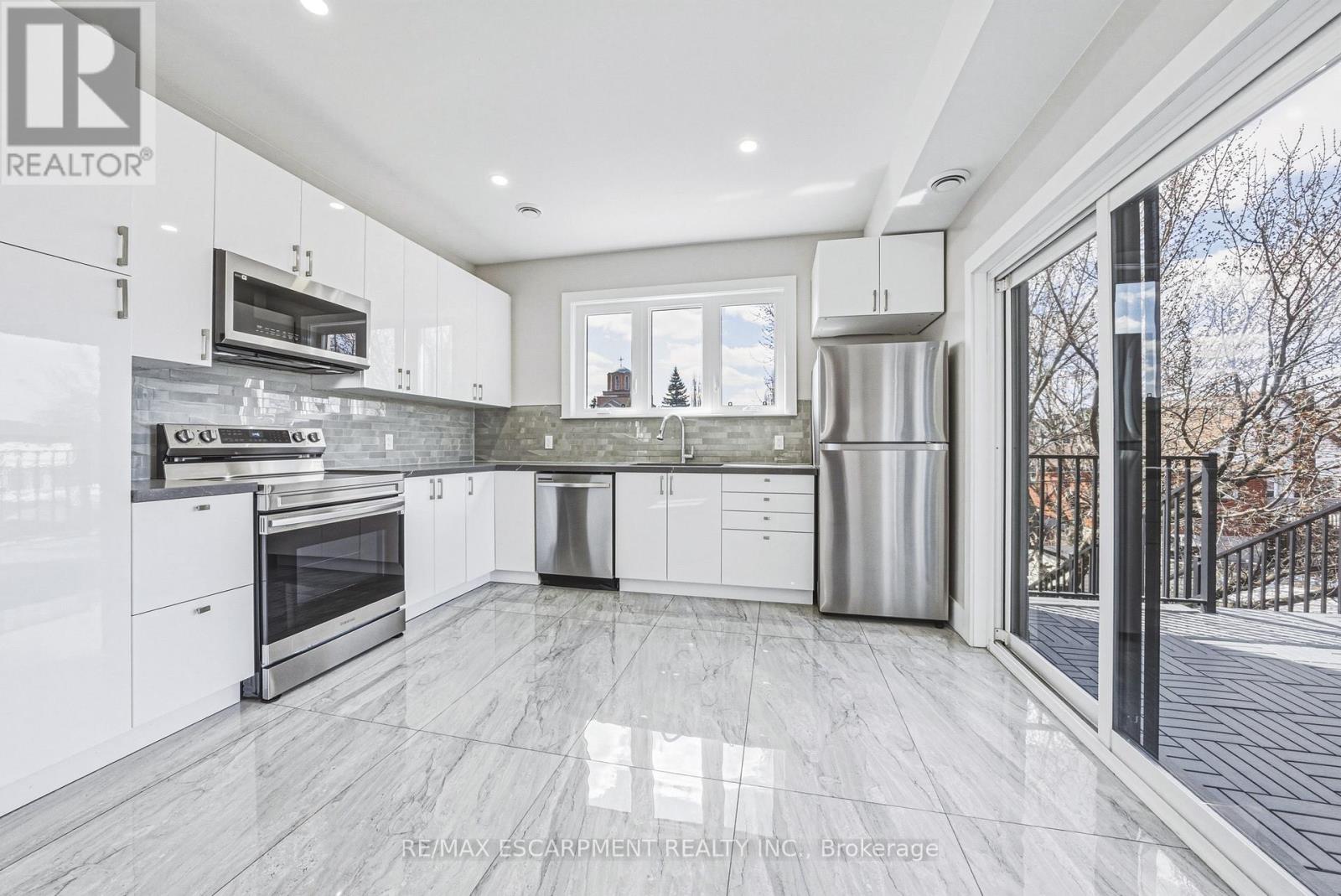 Super rare modern, fully rebuilt (2024) legal duplex with a third self-contained additional unit, offering exceptional versatility and income potential. This turnkey property features 3 kitchens, 6 bedrooms, and 5 bathrooms across 3 well-designed, self-contained living spaces. Elegant finishes throughout include open-concept layouts, engineered vinyl flooring, and custom tile work that elevate every unit.The lower level is finished with heated floors, adding comfort and quality rarely found in multi-unit properties. Each unit has been thoughtfully designed with functional layouts and contemporary finishes, making the property ideal for owner-occupiers, investors, or multi-generational living arrangements.Exterior features include a detached garage, private fenced backyard, and ample parking. All utilities are separately metered, enhancing operational efficiency and tenant independence.Conveniently located close to shopping, transit, and highway access, this property offers both lifestyle convenience and strong long-term investment appeal in a growing Hamilton market. (id:64974)