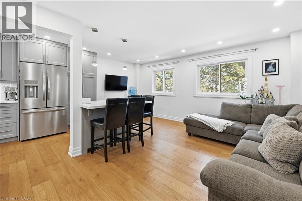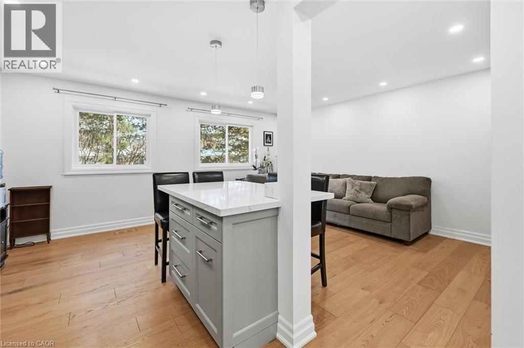 Location, Location, Location. You can't get anymore Central than Central. Walk to Central Park, Burlington Centre Mall, Burlington Farmer's Market, the YMCA, Schools, bus routes, Downtown and the Lake. Sooooo convenient. Close to the QEW, 403 and the Burlington GO station. Tecumseh, St. Paul and Assumption schools are steps away. New flooring and baseboards in the bedrooms 2026. New upper Bathroom renovated in 2026. Newer flooring in the rec room, living room, dining room and kitchen (2021). Renovated kitchen cabinets and quartz counter tops. Island dining feature. On demand hot water tank is owned. Rec room with feature wall and hardwood flooring. Walkout to patio from the rec room. Attached garage plus driveway. Low condo fees. Priced to sell. A must see on your tour list. (id:64974)
