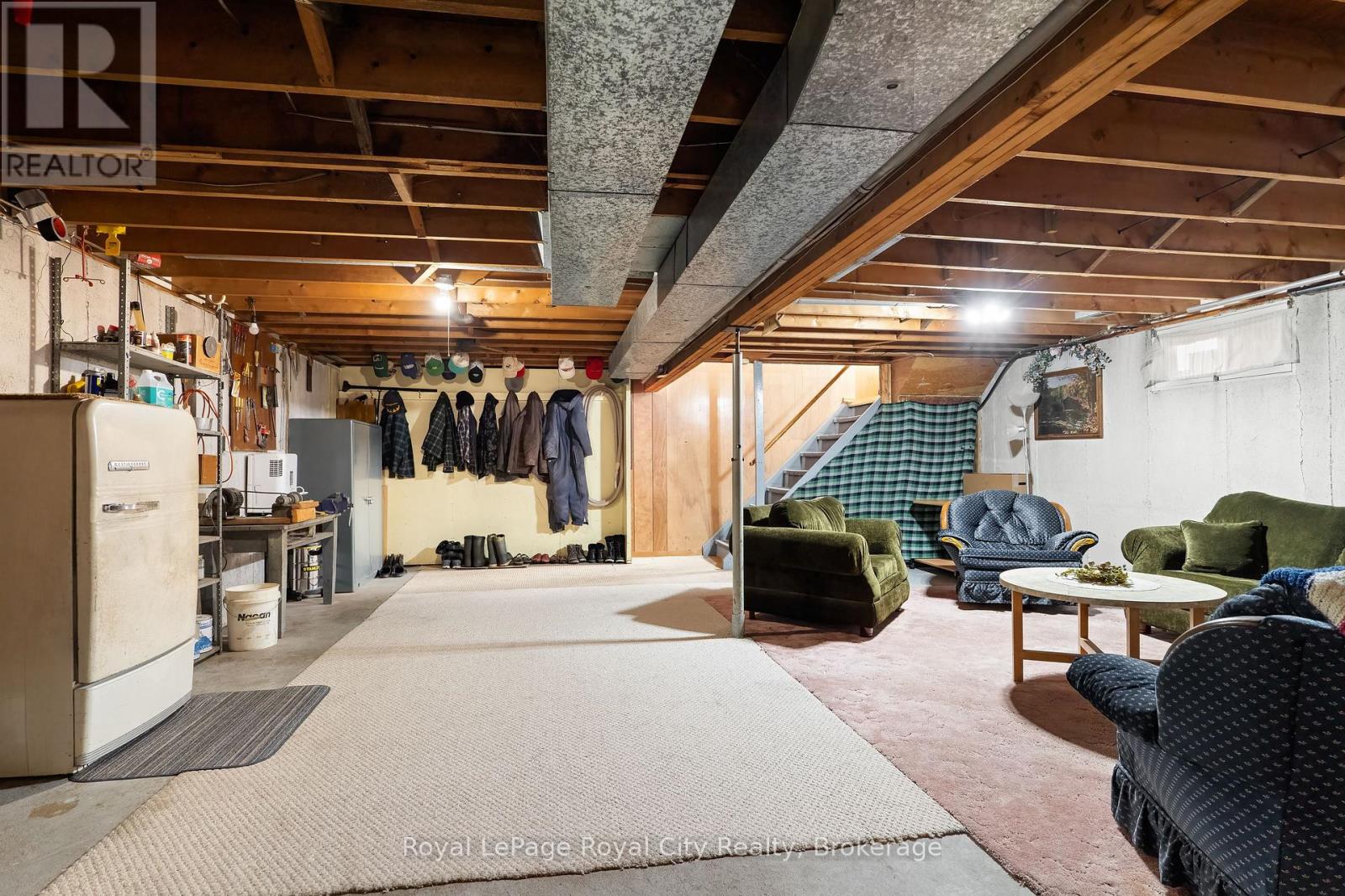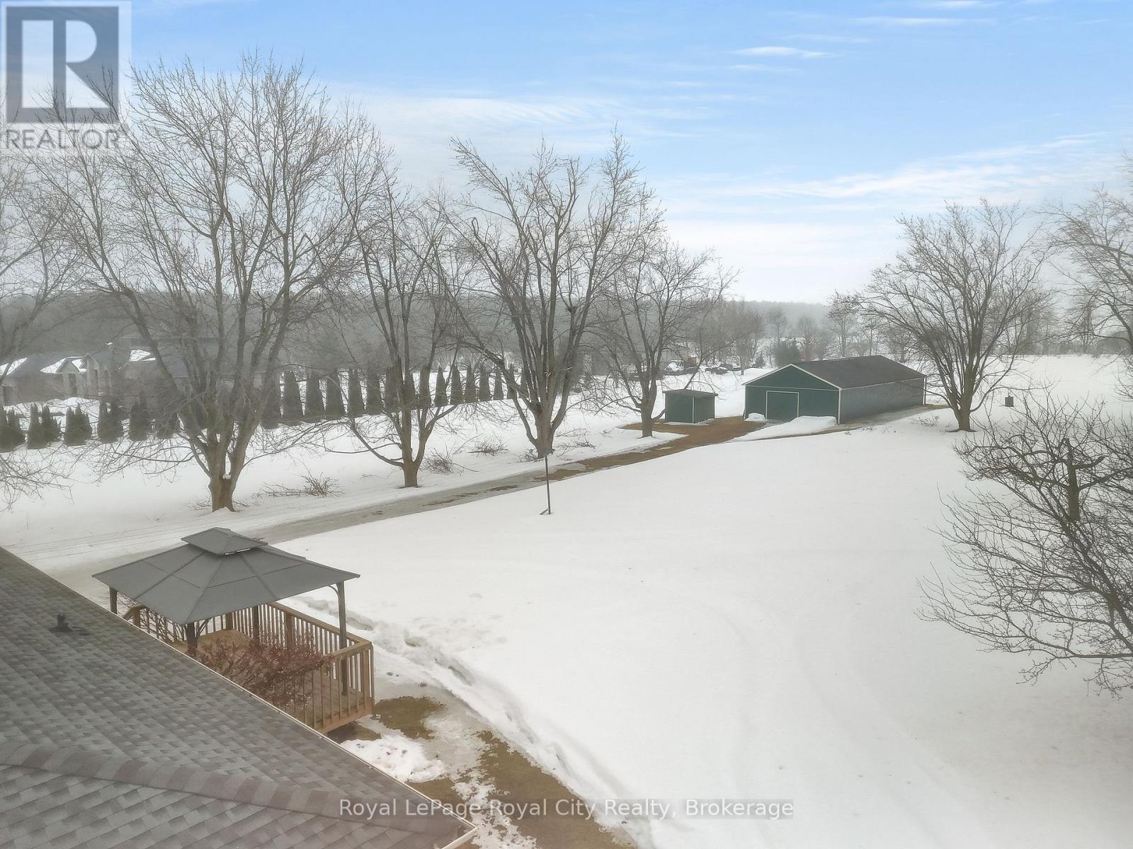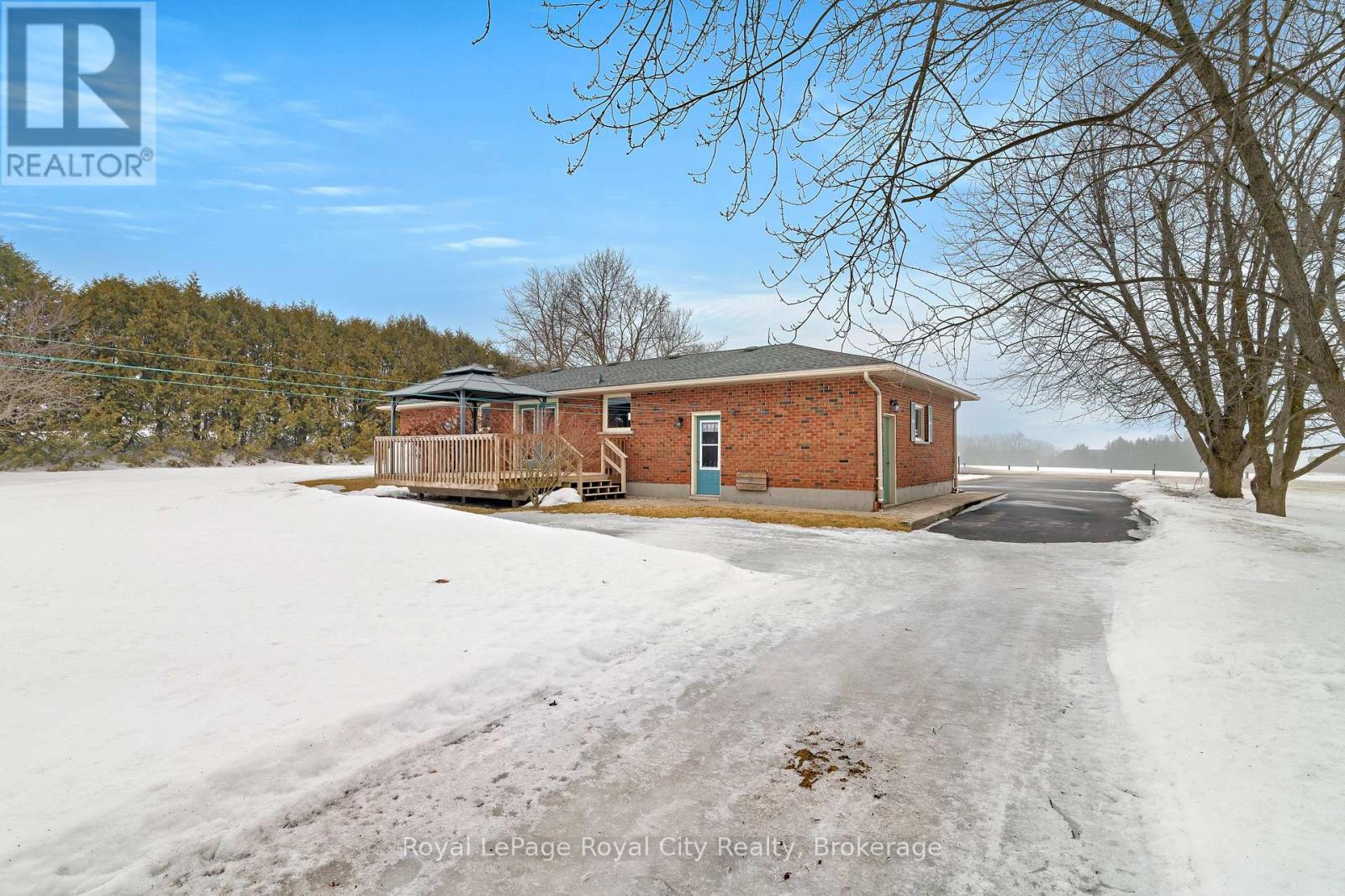 Set on a rare 3+ acre property just minutes from Elora, this lovingly maintained one-owner bungalow offers rural tranquillity. Surrounded by a private yard with mature trees and boasting a 24' x 52' insulated workshop/barn equipped with hydro and water, the property provides incredible versatility for hobbyists, small business use, or hobby farmers. Inside, the well-maintained interior features a bright living room that welcomes natural light and creates a warm, comfortable space for everyday living. The functional eat-in kitchen offers ample cupboard and pantry space, making meal preparation and storage both convenient and efficient. From the dinette area, sliding doors lead to a 17' x 14' deck complete with a gazebo, an ideal spot for relaxing, entertaining, or enjoying the peaceful views of the surrounding country-side. The main level includes three bedrooms and a 4-piece bathroom, offering a practical layout for families or those seeking convenient one-level living. Downstairs, the partially finished basement expands the living space with a 4th bedroom, laundry area, and an unfinished recreation room ready for your personal finishing touches. The home also features an attached one-car garage and plenty of parking space in the driveway. This is a fantastic opportunity to enjoy country living while being only minutes from the boutique shops, restaurants, and charm of Elora. (id:64974)