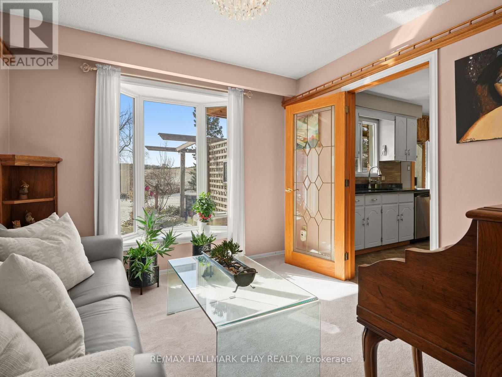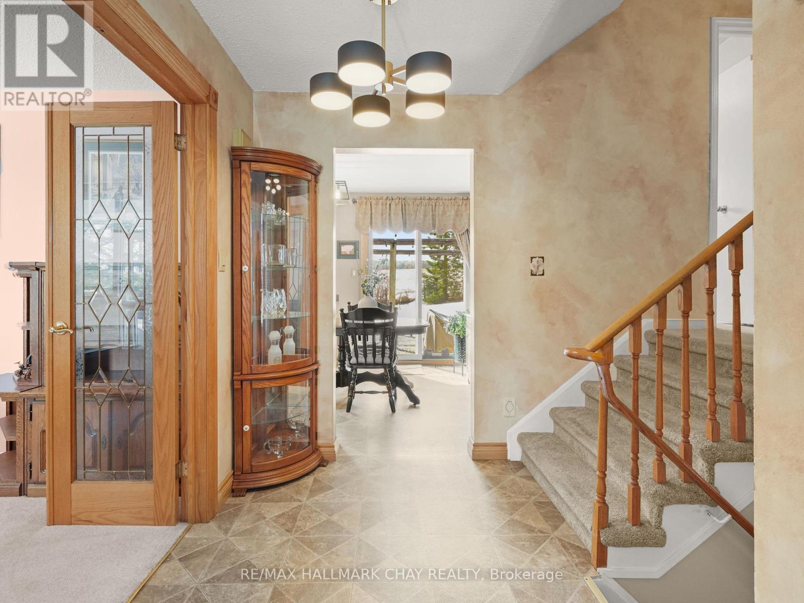Set on an expansive 150' x 200' lot, this impressive property offers the perfect blend of space, functionality, and lifestyle. Surrounded by mature trees and beautifully maintained perennial gardens, the setting provides both privacy and natural charm, all just minutes from town, trails, and a nearby conservation area. Inside, you'll find four fully finished levels of living space, thoughtfully designed to accommodate families of all sizes. The home is well-equipped with a full suite of appliances including two refrigerators, stove, microwave, dishwasher, chest freezer, bar fridge, washer, and dryer-making everyday living and entertaining seamless. The lower level offers direct access to the garage, enhancing practicality and a separate entrance to the home. Step outside to enjoy the expansive paved driveway with a turnaround and parking for approximately 10 vehicles-ideal for guests, recreational vehicles, or hobbyists. The detached shop and shed, both with durable metal roofs installed in 2017, offer excellent additional storage or workspace options. Relax in the backyard oasis complete with a tranquil water feature and pergola with shade panels-perfect for outdoor entertaining or unwinding in nature. As an added bonus, enjoy an incredible Canada Day fireworks display from the nearby conservation area-right from your own property. A rare opportunity to own a well-appointed home on a generous lot in a desirable location-offering space, comfort, and lifestyle all in one! (id:64974)
