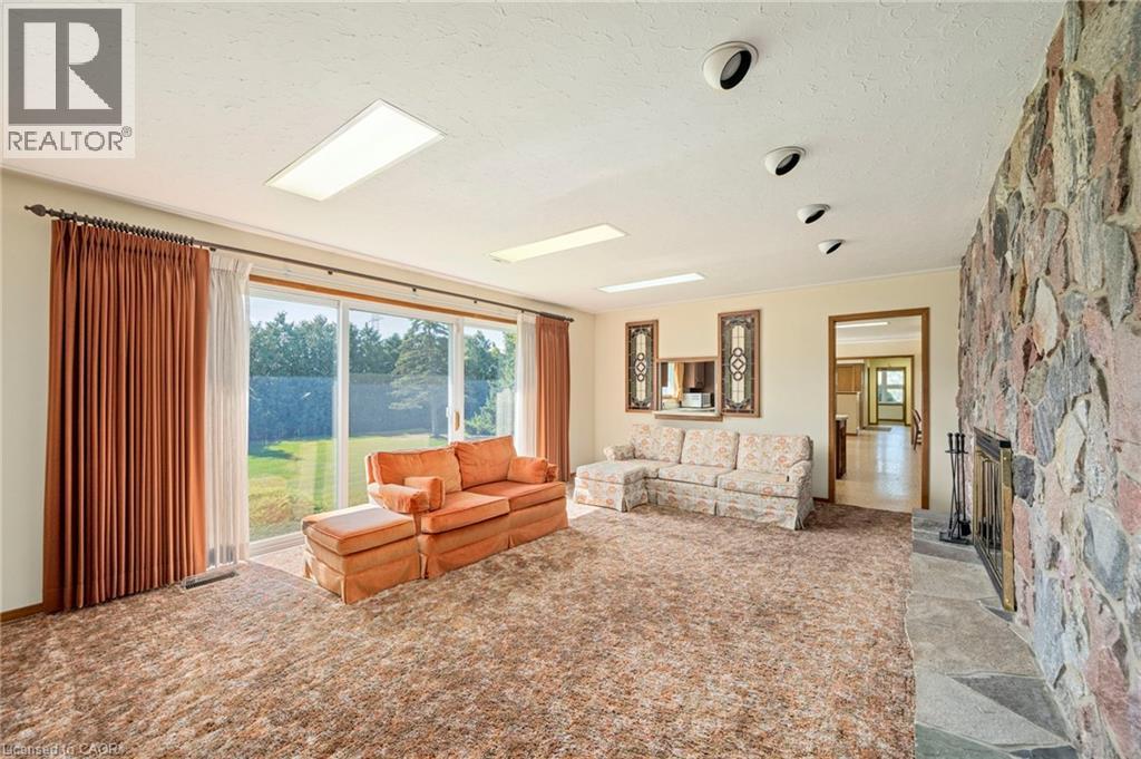 29-Acre Farm with Spacious Bungalow & Outbuildings. Situated on 29 acres of A1-zoned land, this well-built 3,171 sq. ft. bungalow offers generous living space and a functional rural setting close to the town of Chatham. The home features 3 bedrooms and 2.5 bathrooms, along with an attached double garage. The main floor offers a large eat-in kitchen with ample wood cabinetry, a centre island, and plenty of space for family dining. Separate family and living rooms provide flexible living areas, each highlighted by a wood-burning fireplace. The layout is well suited for both everyday living and entertaining. A full basement extends the living space and offers excellent future potential, with rough-in plumbing already in place for a full bathroom, as well as rough-in for an additional fireplace. The home is serviced by a geothermal heating and cooling system with electric backup, offering efficient and reliable comfort. High-speed internet is available. The property includes a large timber-frame barn, a metal-clad driveshed, and two small vacant hog barns. Additional farm features include four grain storage bins, including a 6,000-bushel dryer bin. An excellent opportunity for agricultural use, hobby farming, or those seeking a spacious rural residence with extensive infrastructure. (id:64974)