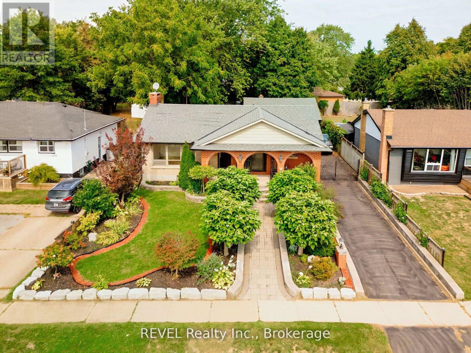 Beautiful all-brick bungalow located in Niagara Falls' sought-after Stamford neighbourhood! Set on an impressive 56 x 163 ft lot, this property features a covered front veranda, wrap-around driveway with parking for 8+ vehicles, and a 2.5-car detached garage with loft. The main level offers 3 bedrooms, a 4-pc bath, bright Eat in kitchen with sliding doors, and a spacious living room with original hardwood flooring. The finished basement with separate entrance includes a bedroom, full kitchen, full bath, laundry, and fireplace-perfect for extended family or income potential. Enjoy the private backyard with covered seating, wood-burning fireplace, and plenty of room for a pool. Close to schools, shopping, parks, and Firemen's Park. (id:64974)