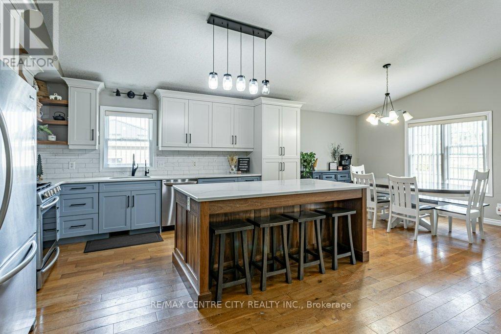 Family friendly living with an incredible workshop! This bright and welcoming 2+2 bedroom, 1+1 bath home features an open concept layout filled with natural light and a fully finished lower level offering flexible space for families or guests. The standout feature is the impressive 26' x 40' double-insulated shop, extra big door for big trucks, complete with in-floor heat, outlets inside and out, airline connections on both sides for tools and convenience, and a 26' x 12' loft perfect for a man cave, game room, home office, or extra storage. Additional storage is provided by a 12' x 16' shed with 110v electrical breaker box, two rolling doors and outlets inside and out. A double paved driveway extends to the rear of the property with remote gated access, transitioning from asphalt to concrete right to the shop ideal for big trucks, RV, vehicles, toys, or equipment. The home also offers 30-year roof shingles with transferable warranty, a fully fenced backyard, and a covered deck perfect for relaxing, entertaining, or enjoying time with children and pets. Situated on a lot just under half an acre, in a quiet small village close to schools, only 10 minutes to town and the beach. This property delivers space, comfort, and functionality a rare find with endless possibilities. (id:64974)