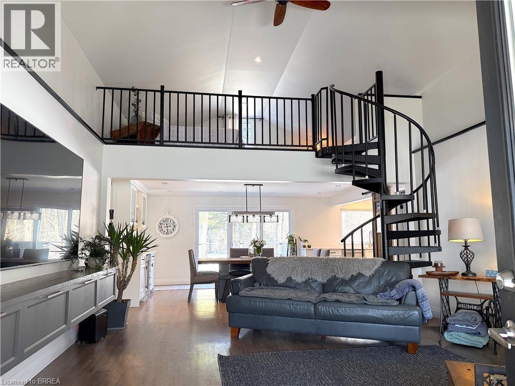 Exceptional multi-generational country property offering a rare combination of space and privacy on a 1.37 acre lot. The estate includes an updated detached 2-bedroom + loft home, a self-contained 1-bedroom accessory dwelling (ADU), and an impressive ~30’ x 40’ workshop/garage. The primary residence is a thoughtfully designed bungaloft blending open-concept living with everyday functionality. The primary bedroom w/ensuite, and second bedroom are conveniently located on the main level, while the loft provides a third bedroom or a flexible living space for growing family needs. Natural light and a practical layout create a warm, welcoming atmosphere throughout. Quality updates include custom built-in cabinetry, modern kitchen with quartz countertops and S.S. appliances, 4 piece bathroom with stand alone tub and separate shower, gas fireplace, updated windows and doors and newer steel roof. The dining area has a patio door leading to a spacious wood deck with a hot tub - perfect for entertaining and unwinding. Enhancing the property’s versatility is a fully detached 1-bedroom accessory bungalow (ADU). Ideal for multi-generational living, guest accommodations, or rental income, this secondary dwelling offers privacy and independence with kitchenette, 3-piece bath, in-floor heating and wood stove. The detached workshop/garage is perfect for hobbyists, tradespeople, or car enthusiasts. Features include a gas furnace, kitchenette with gas stove, refrigerator and range hood, electric fireplace, walk-up attic storage and a patio door accessing the yard. Established perennial gardens, vegetable garden, mature trees all anchored by a private swim pond enjoyed year-round for swimming and skating, complete with dock, sand beach and cabana. This property delivers rural living without compromise. Take the multimedia 360 tour and arrange a time to come take a look! More details available upon request. (id:64974)