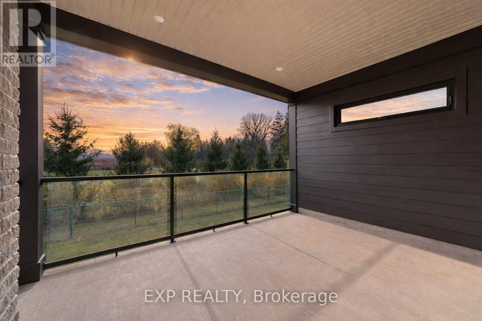 This beautifully finished home on a walk-out lot offers over 3,600 square feet of elegant living space with 4+1 bedrooms and 4.5 bathrooms, creating an ideal setting for multigenerational or family living. The family room is anchored by a warm electric fireplace, complemented by wall paneling for added character, and the primary bedroom features a striking stepped ceiling that adds architectural depth. Rich hardwood flooring extends across the second level and into the primary suite, while heated floors in the primary ensuite and basement bathroom provide year-round comfort throughout the home. The finished walk-out basement offers a thoughtful blend of openness and function, with multiple zones that work equally well for a home theatre, family gatherings, or a play area. With direct access to the backyard and a convenient kitchenette, the space is well suited for extended family or a potential in-law suite. Outside, the covered rear deck spans approximately 14' x 12' and features a privacy wall and WeatherDek waterproof membrane, creating an inviting and private outdoor area perfect for relaxing or entertaining. The home's exterior makes a strong impression with an Arriscraft stone and brick front paired with James Hardie siding, along with vinyl at the sides and rear for durability. Constructed by Johnstone Homes, a trusted builder with more than 35 years of experience, this property includes over $100,000 in premium upgrades that showcase craftsmanship in every detail. With quick access to Highways 401 and 402 and a location minutes from more than 14 parks, 39 recreational facilities, and a variety of schools, this home offers an exceptional blend of small-town charm and big-city convenience in a welcoming neighbourhood. Price includes proposed 2026 HST rebates. (id:64974)