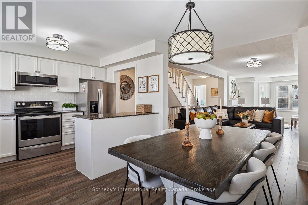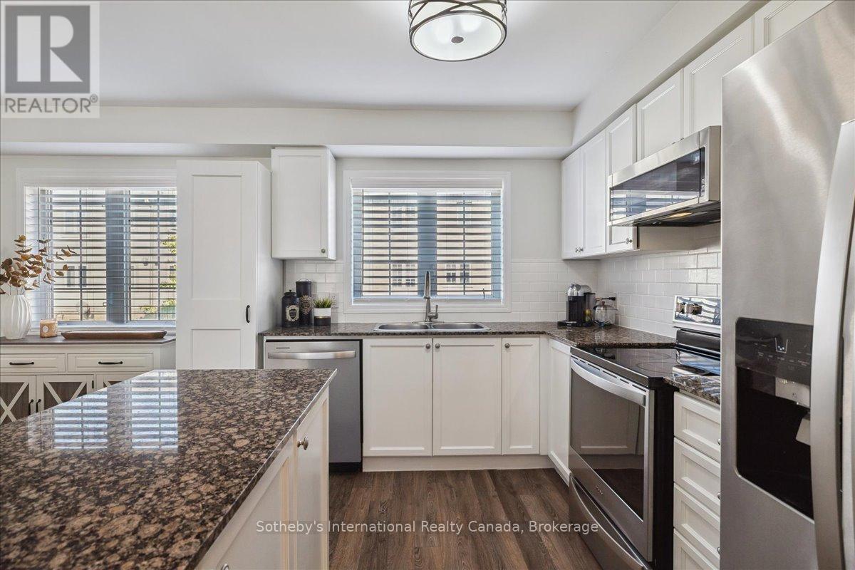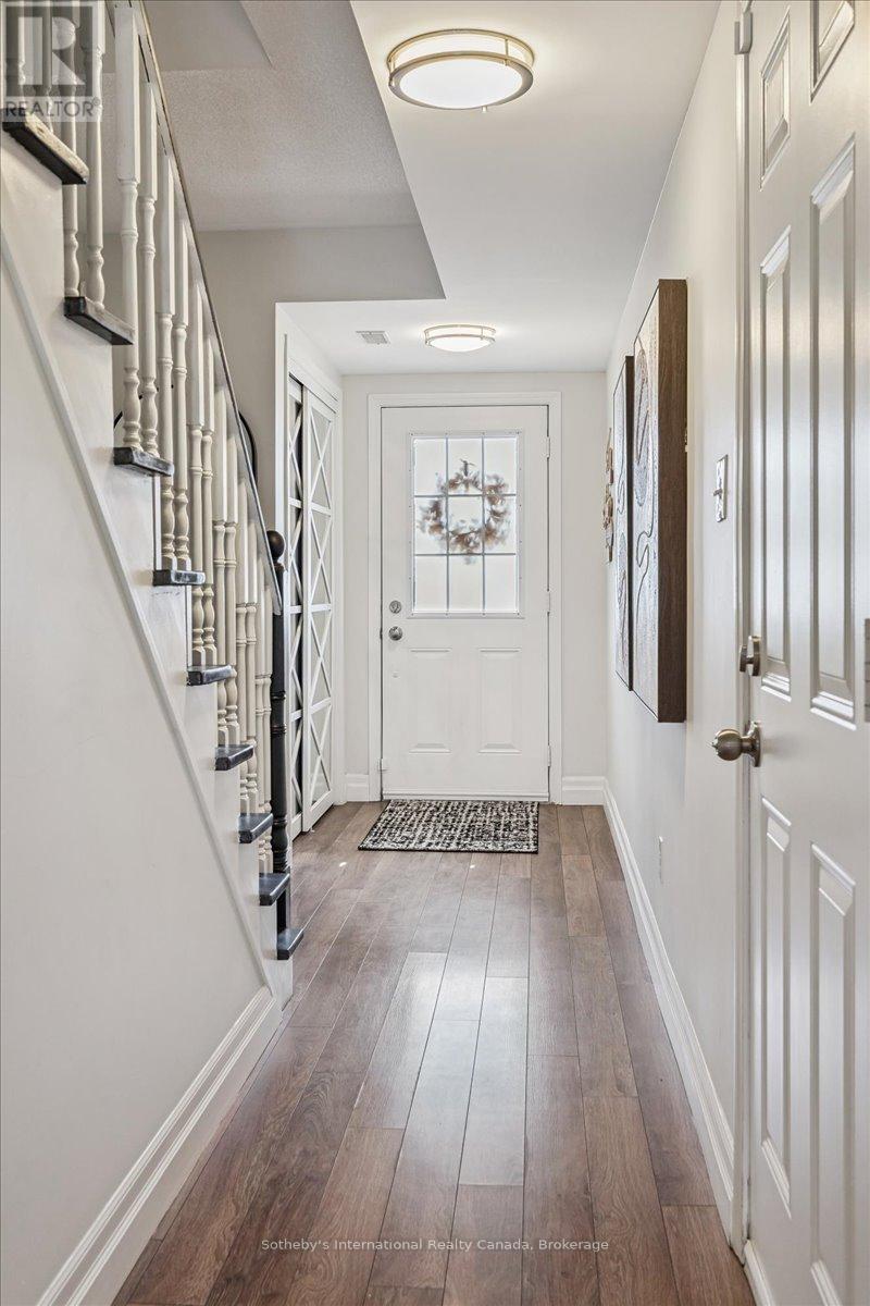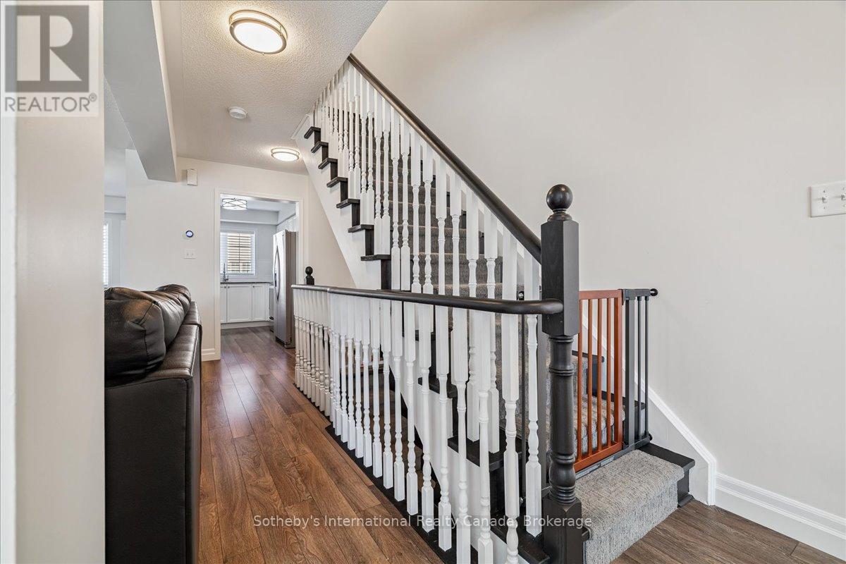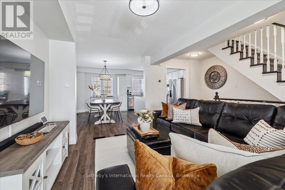 Welcome to Beachside Living in Hamilton! Wow! This one has it all. Calling all savvy buyers seeking the perfect blend of space, style, and convenience! This bright and spacious 3-storey end-unit townhome in the trendy Hamilton Beach community is an ideal entry into the market-perfect for first-time home buyers or investors looking to make the right move! Just steps from the waterfront, enjoy peaceful strolls along the beach while still having quick access to highways or side roads-Burlington is only about 10 minutes away. Step inside a sun-filled entry level featuring an updated contrasting staircase, modern mirrored sliders, and convenient inside access to the garage. This versatile main floor family room doubles perfectly as a 4th bedroom, home office, or lounge, with sliding doors opening to your private patio. The low maintenance fee covers grass cutting, snow removal, and includes ample visitor parking right at your doorstep. Upstairs, the heart of the home unfolds in a bright, open-concept layout. The kitchen is pleasant and functional, featuring granite counters, subway tile backsplash, serving counter, and stainless steel appliances (2022). The dining area is ideal for hosting, while the living room offers expansive sightlines-perfect for keeping an eye on small children while preparing meals or entertaining. A sunny powder room completes this level. On the third floor, the primary bedroom offers a walk-in closet and ensuite bath, along with two additional bright bedrooms and a full washroom. Laminate floors on the main and second levels provide style and easy maintenance, while plush carpet upstairs adds comfort. Enjoy an active beachside lifestyle-bike, run, or walk your dog along the waterfront just steps from your door. Whether entertaining, working from home, or enjoying the outdoors, this home blends comfort, style, and location. Opportunity is knocking for first-time home buyers or investors... will you answer? (id:64974)