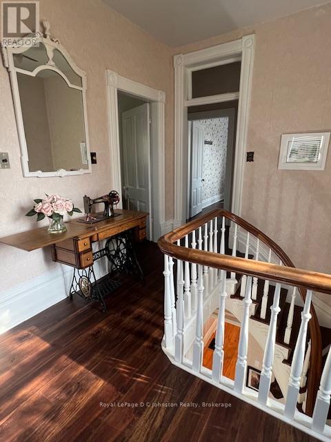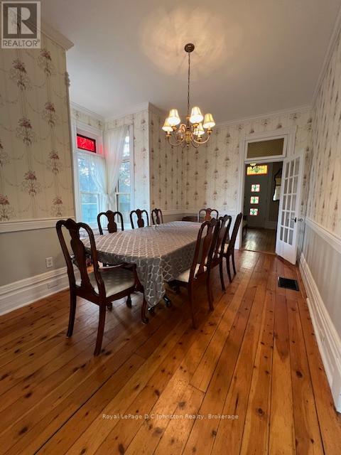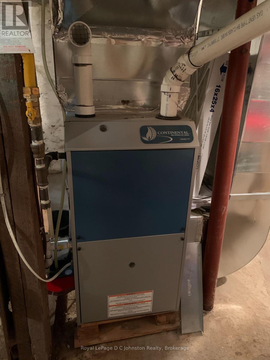 Nestled in the heart of Southampton on a 100' x 106' lot, this timeless two-storey yellow brick home exudes character and charm that have been lovingly preserved over the years. With spacious interiors featuring 9'8" ceilings, this stately residence boasts four large bedrooms, a welcoming living room, a bright, open kitchen with dining area, and a distinctive square bay window that fills the space with natural light. Enjoy the convenience of main floor laundry and the bonus of a cozy main floor den, with garden doors that open to a private fenced lot perfect for family gatherings or peaceful relaxation. This home has been updated with gas forced air heating and central air added in 2017, a newer owned gas hot water tank (2019), and roof shingles along with a peaked roof that were replaced in 2014. Newer soffits, fascia, and eavestroughs complete these thoughtful upgrades. For those who love to entertain, the heated in-ground concrete swimming pool is an inviting retreat that will make summers unforgettable. The home's heritage features create a sense of warmth and sophistication. A handcrafted curved staircase, a stunning butternut wood fireplace mantel, classic pine floors, and wide baseboards bring elegance and personality to each room. With large windows allowing abundant light and spacious rooms designed for comfort, this home is a true Southampton gem. Homes like this rarely come to market, and with summer approaching, now is your chance to make this beautiful home yours in time for relaxing. Don't miss this unique opportunity schedule your viewing today! (id:64974)