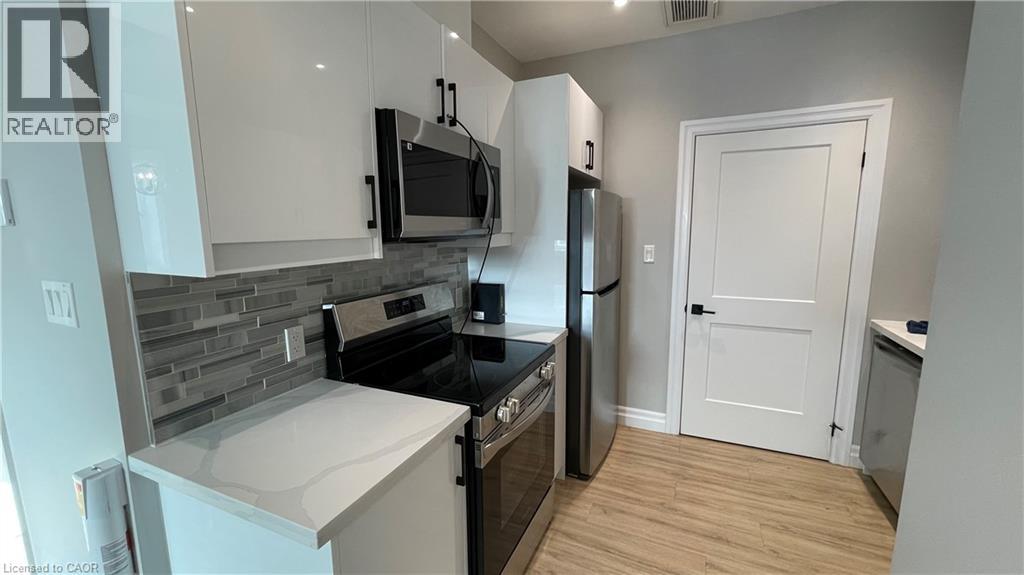 Extensively renovated two bedroom apartment in Welland! Confidently call 69 East Main Street your next home. The kitchen boasts quartz countertops, a sleek backsplash, under-cabinet lighting, and stainless steel appliances including a dishwasher. Both of the bedrooms feature large windows and stylish new light fixtures. Four piece bathroom offers a deep tub and a well appointed vanity for storage. Enjoy the comfort of centralized air conditioning during the warm summer months! This professionally managed apartment building is located steps from the scenic Welland Canal with plenty of grocery, shopping, and restaurant options in the immediate area. Niagara Health's Welland Hospital is just minutes from the building. One assigned parking space is available at the cost of $50.00 per month. Tenant to pay heat & hydro. Water is included in the rent price. (id:64974)