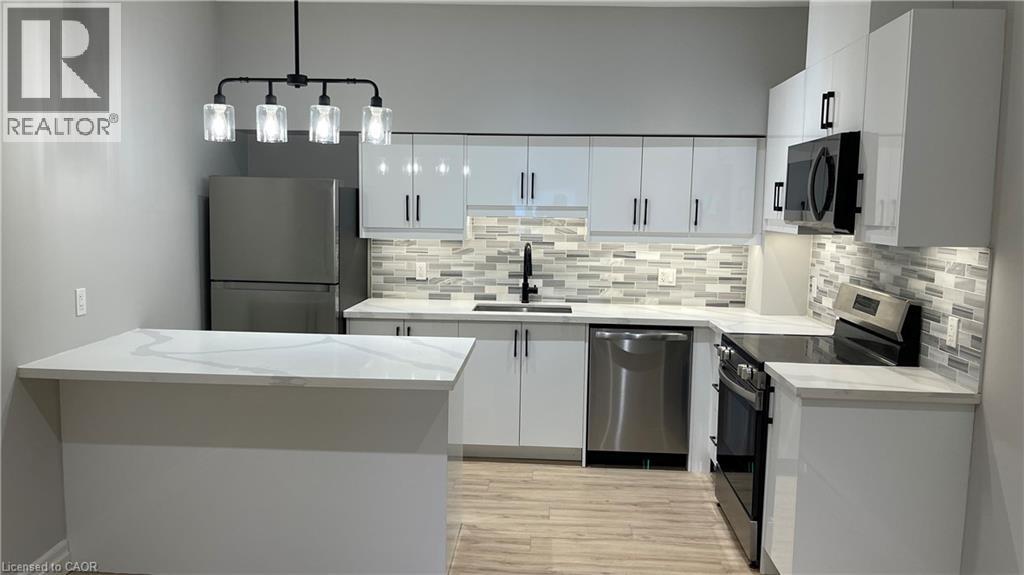 Stunning one bedroom apartment located steps from the scenic Welland Canal! This thoroughly updated unit features a chef's kitchen equipped with quartz countertops, stylish light fixtures, a sleek backsplash, and stainless steel appliances including a dishwasher. The well lit bedroom and living area offer luxurious plank flooring. Bathroom boasts a beautiful vanity. Confidently call this modernized space home! Welland Hospital, Niagara College's Welland Campus, and highway access are all just minutes from the building. Tenant to pay heat & hydro. (id:64974)
