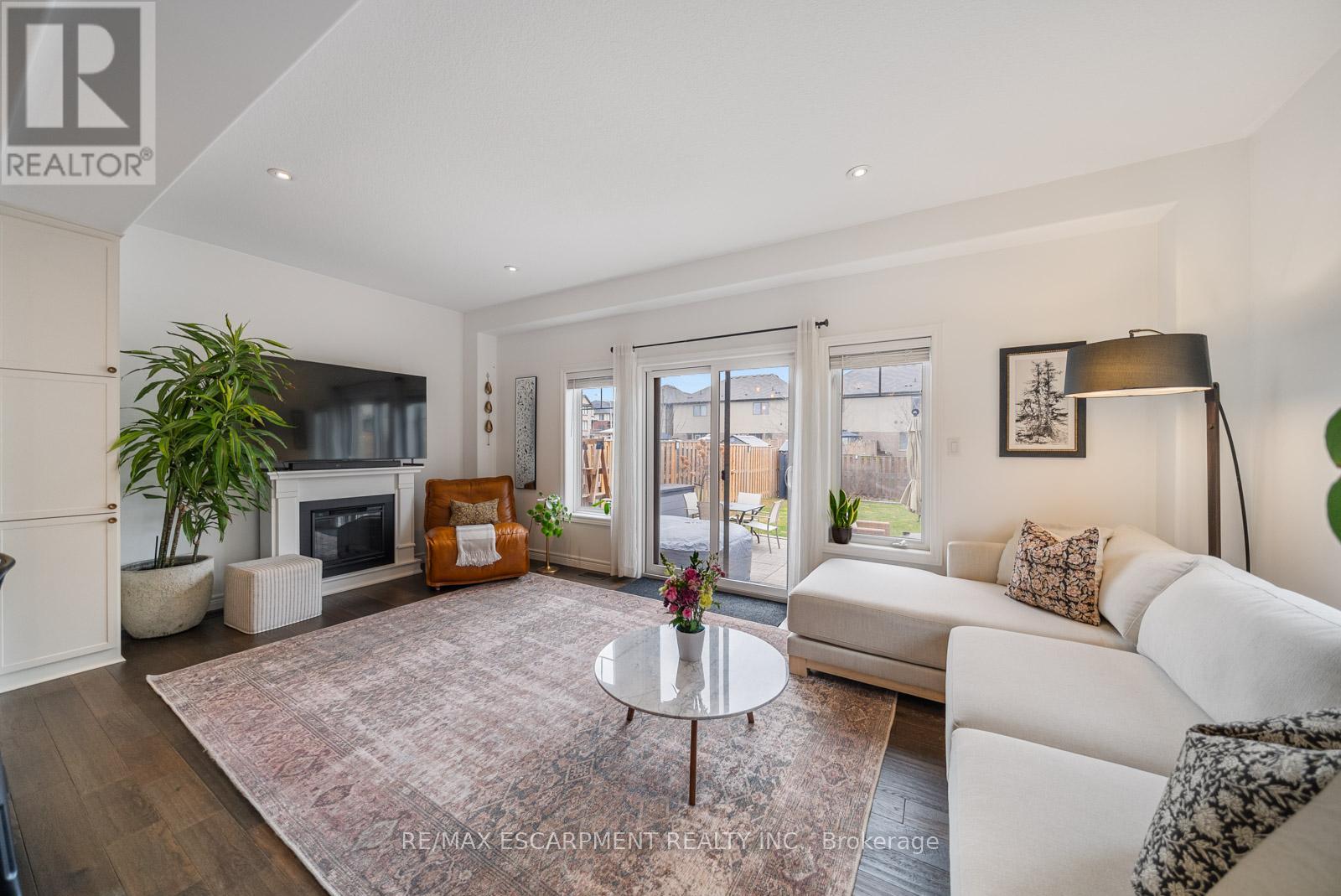 Gorgeous freehold end-unit townhome in a highly sought-after Ancaster neighbourhood with no condo fees. Attached only at the garage, offering added privacy and minimal noise, with a layout that lives closer to a detached home. Set on a premium lot larger than most surrounding homes, this property is filled with natural light from multiple sides and features engineered hardwood floors and consistent, quality updates throughout. Thoughtfully maintained and well cared for, this is a home where what you see is exactly what you get. Offering three bedrooms and three bathrooms, with a functional layout. The main floor has been upgraded with quartz countertops, updated faucets, lighting, and fixtures, along with a custom pantry and built-in shelving. The primary suite features custom built-in closets and dresser. The professionally finished basement (2025) adds additional living space, ideal for a gym, entertaining area, or accommodating extended family. The backyard is fully fenced, private, and larger than typical for the area, complete with newer landscaping, stonework, and established gardens. The driveway has been newly asphalted and sealed, offering parking for three vehicles in addition to the garage. This is a turnkey, well-maintained home in a safe, family-friendly community close to parks, schools, and amenities. (id:64974)