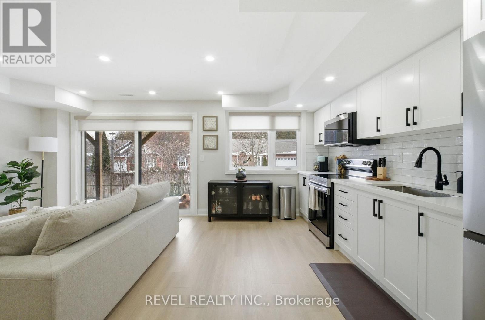 Welcome to this beautifully renovated Executive Suite located in the heart of North Whitby. Enjoy the convenience of being within walking distance to a wide range of amenities including Durham Transit, banks, grocery stores, restaurants, walk-in clinics, Starbucks, LCBO, and more. Therma Spa and scenic walking trails are less than a 10-minute walk away. Commuters will appreciate the quick access to Highways 407, 401 and 412, as well as the Whitby GO Station just minutes away.This bright and spacious suite features an open-concept living and dining area with floor-to-ceiling sliding doors leading to a private backyard space. The modern kitchen offers ample soft-close cabinetry, an oversized undermount sink, and stainless steel appliances. Pot lights throughout and soaring ceilings enhance the bright and contemporary feel.A versatile nook provides additional living space or the perfect area for a home office. The unit also offers a private entrance, no rear neighbours, and a 24-hour security system for added peace of mind.An ideal space for a professional looking for comfort, privacy, and convenience. Simply move in and enjoy. (id:64974)