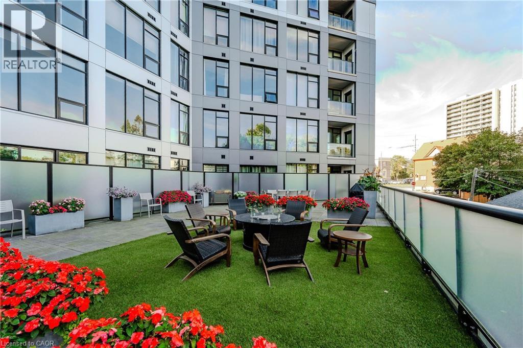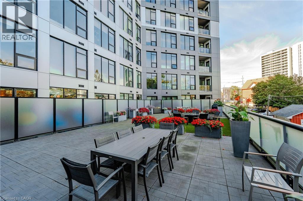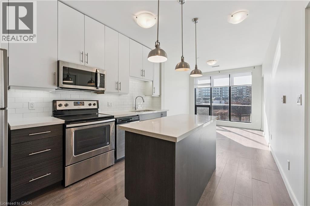 Welcome to Midtown living at its best - this beautifully upgraded one-bedroom condo offers a bright, modern space in one of Kitchener’s most sought-after boutique buildings. Thoughtfully designed with a functional open-concept layout, the unit is filled with natural light from expansive floor-to-ceiling windows, creating an airy and inviting atmosphere throughout. The kitchen is both stylish and practical, featuring quartz countertops, a breakfast island ideal for casual dining or entertaining, a sleek backsplash, and stainless steel appliances. The living area extends seamlessly to a private balcony, offering open city views and the perfect spot to unwind. The spacious bedroom includes a walk-in closet, while the well-appointed four-piece bathroom is finished with quartz countertops for a clean, elevated look. Carpet-free throughout with a combination of porcelain tile and laminate flooring, the unit also includes the convenience of in-suite laundry. This rental includes one underground parking space and a storage locker, adding everyday practicality. Residents enjoy access to premium building amenities, including a fitness centre, lounge space, and a landscaped outdoor terrace complete with BBQs. Ideally located in the heart of Midtown, you’re just steps from the LRT, Victoria Park, shopping, restaurants, cafés, and Kitchener’s thriving tech hub - including Google, The Tannery, Vidyard, and Sun Life. Available April 1st. (id:64974)