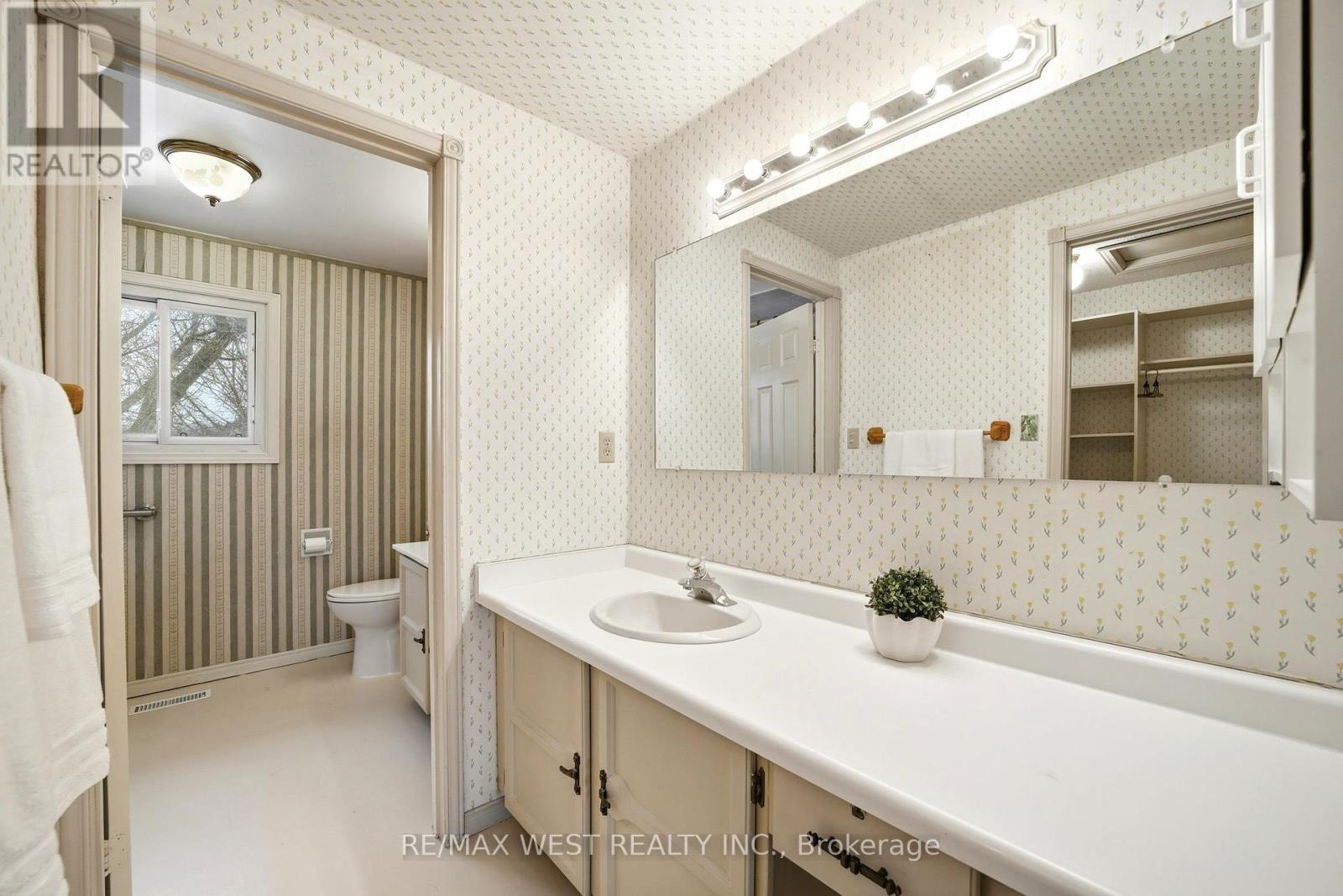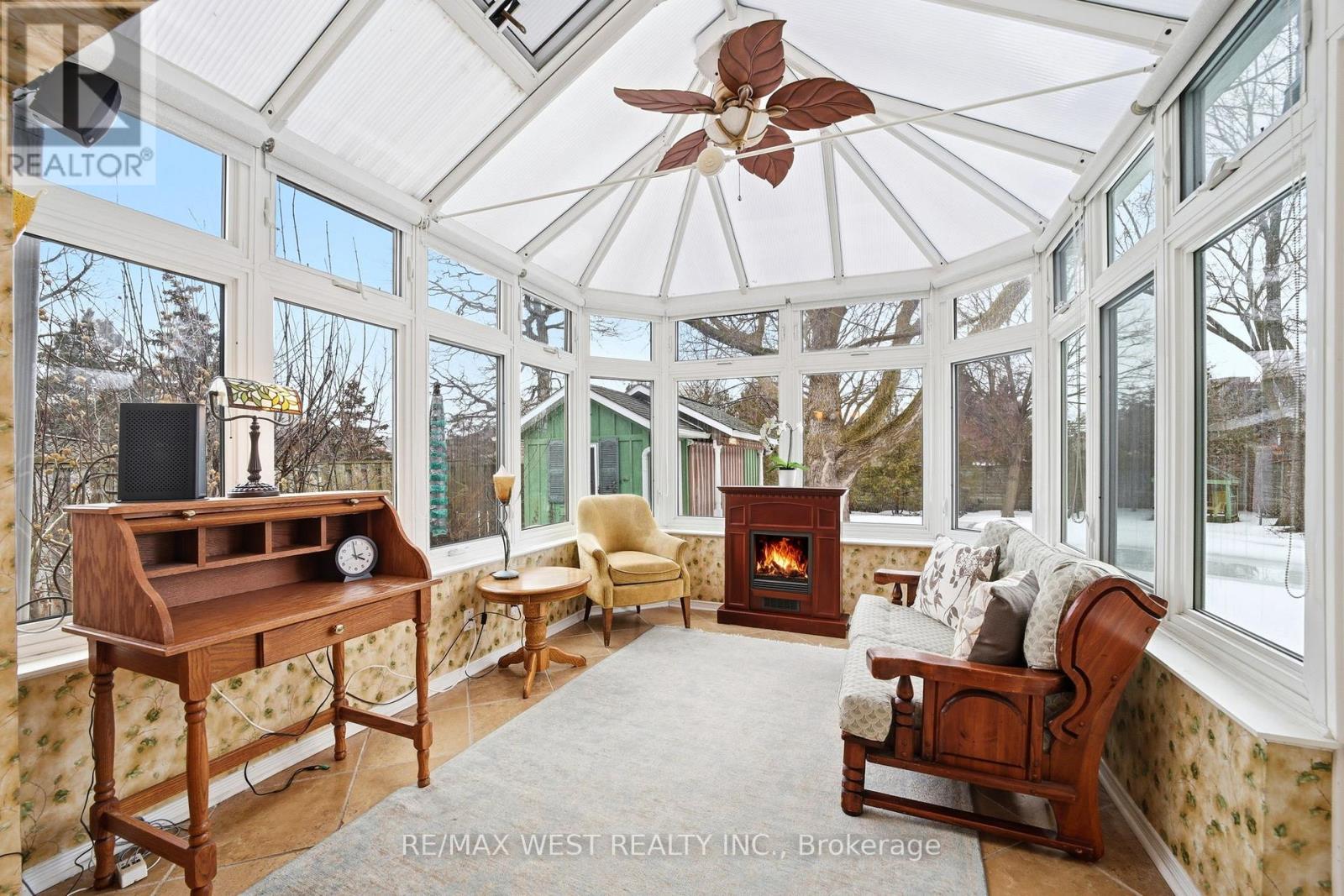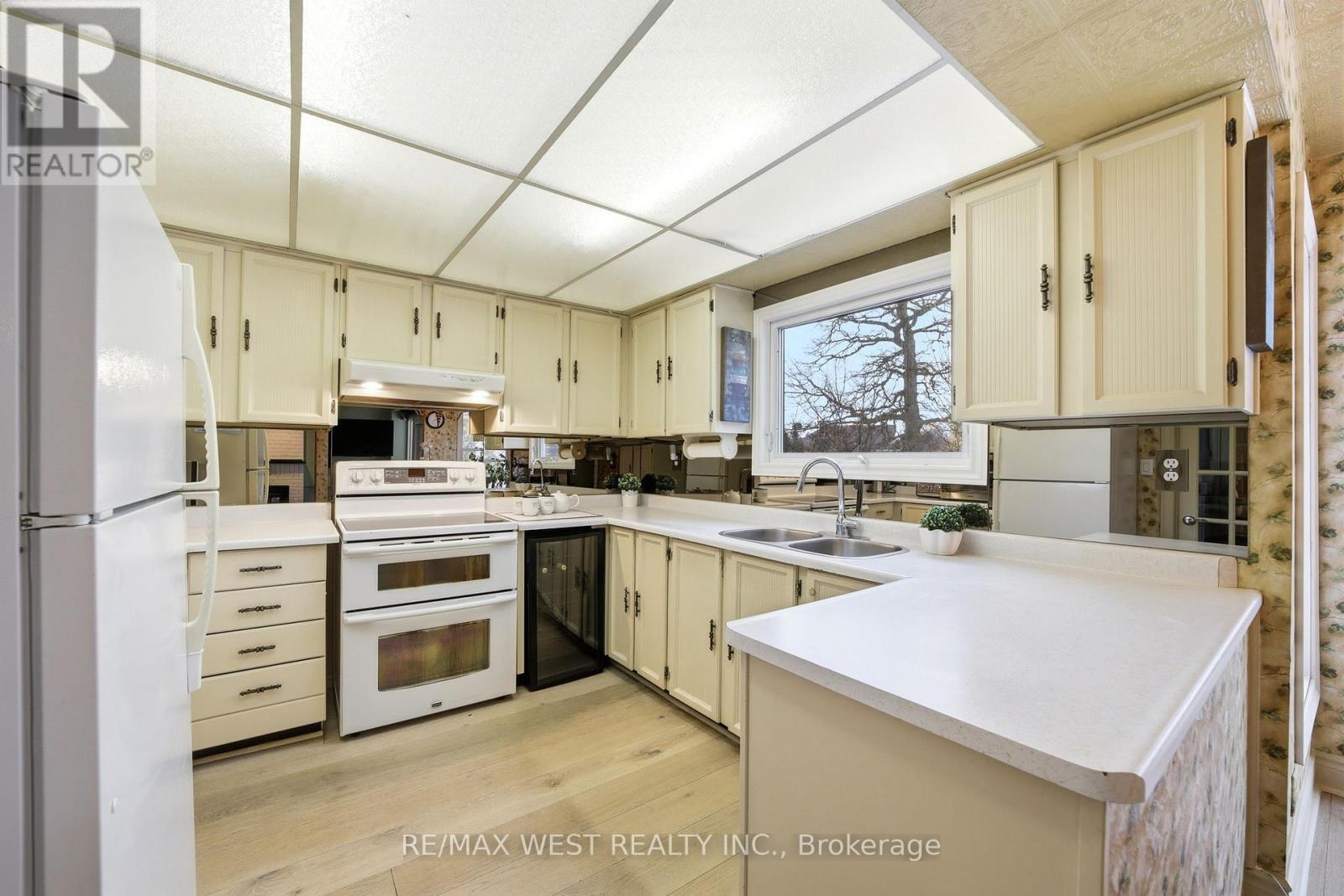 Set on an impressive 63 x 176 ft corner lot, this spacious 4 bedroom, 4 bathroom detached home offers over 3,000 sq. ft. of total living space and an incredible opportunity to create your forever home in the highly desirable Timberlea neighbourhood. Surrounded by beautiful landscaping and a charming wrap-around porch, the home welcomes you with an impressive and functional layout. The main floor features formal living and dining rooms, perfect for entertaining, a sunken Family room with gas fireplace and walk-out to the yard, along with a generous kitchen complete with pantry and breakfast area. A bright sunroom extends the living space and provides the perfect spot to relax while enjoying views of the private backyard oasis featuring an in-ground heated pool, tranquil waterfall feature, and cabana-an ideal setting for summer gatherings and outdoor enjoyment. Upstairs, you'll find four spacious bedrooms, including a primary retreat with walk-in closet, ensuite bath, and vanity area. The finished lower level adds even more versatility with a large rec room, bar with plumbing, a generous den currently used as an additional bedroom, a 3-piece bath, and a separate room with kitchen rough-in, offering excellent potential for an in-law suite. Ideally located just minutes to shopping, the GO station, parks, and scenic trails, this home presents a rare opportunity to update and personalize a well-sized property in a prime location. Some photos virtually staged. (id:64974)