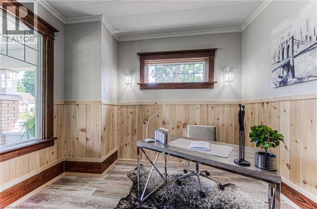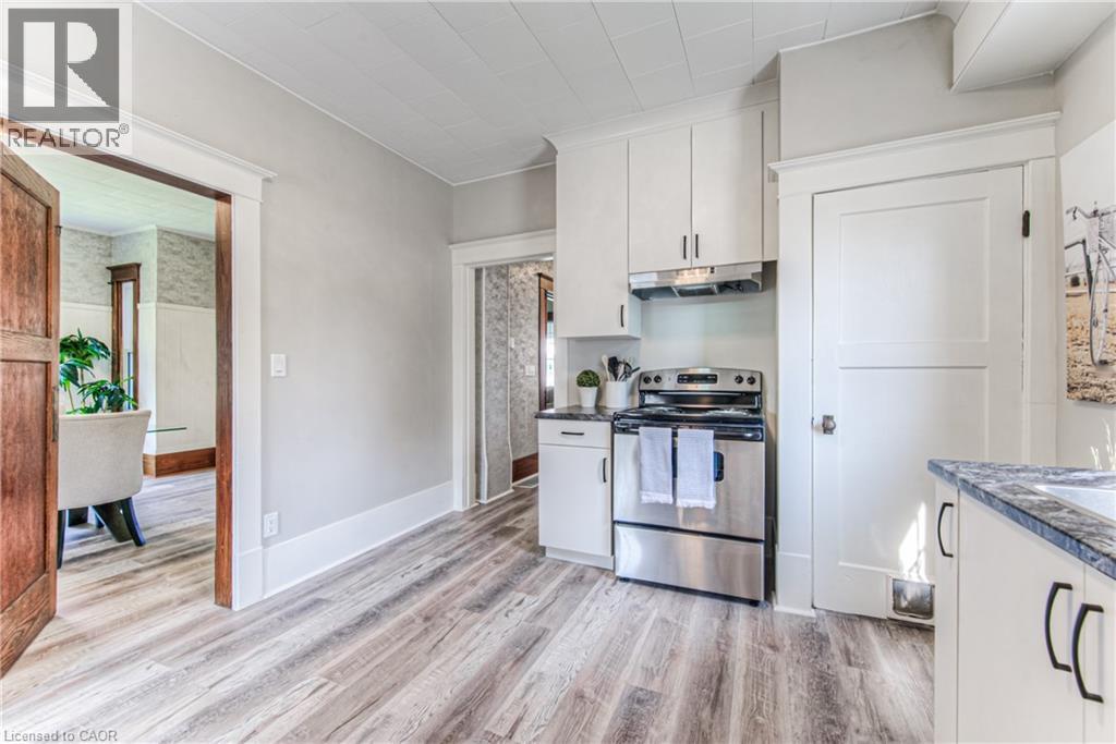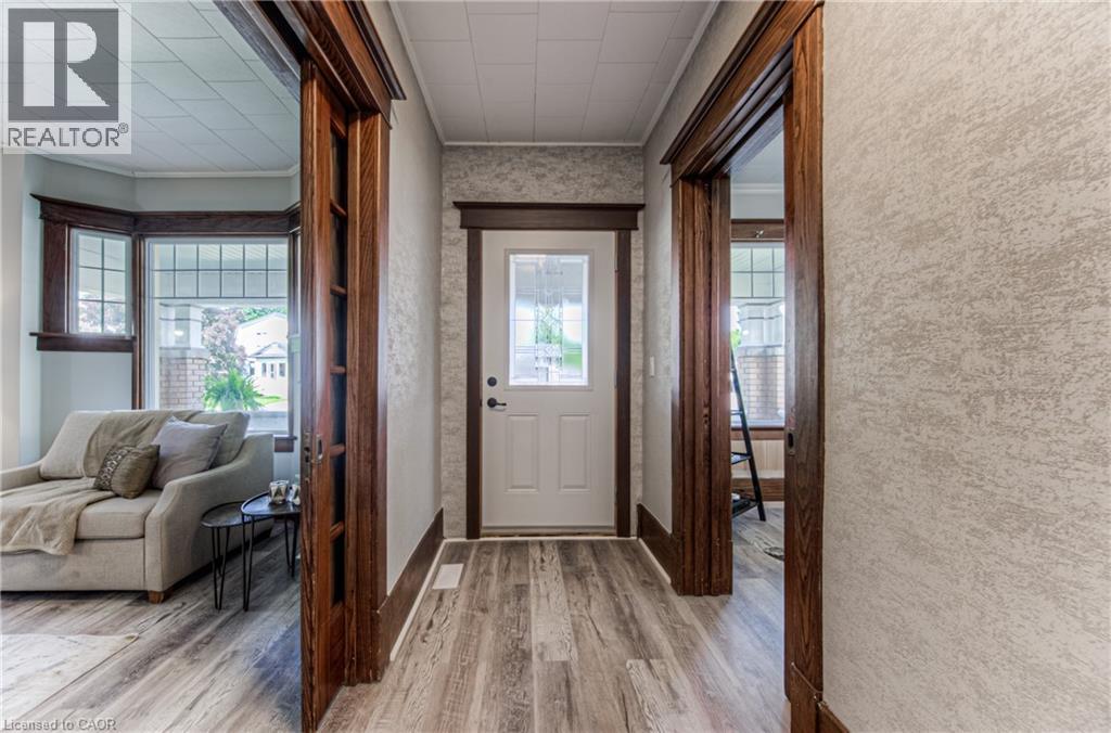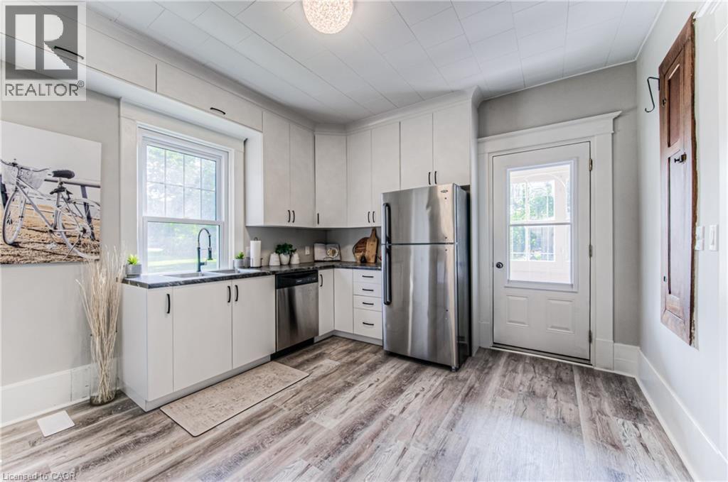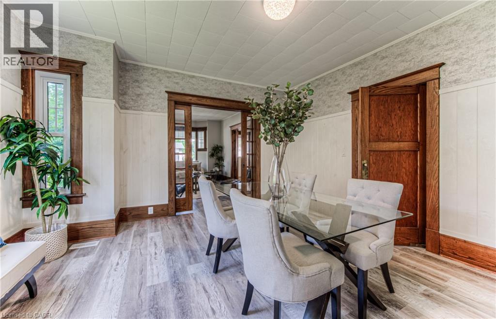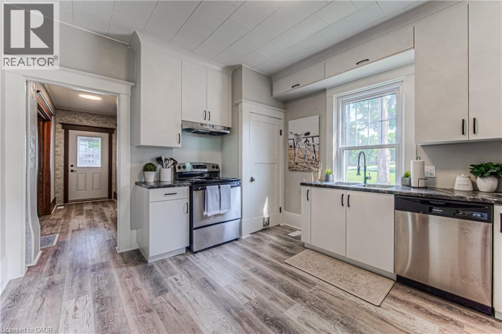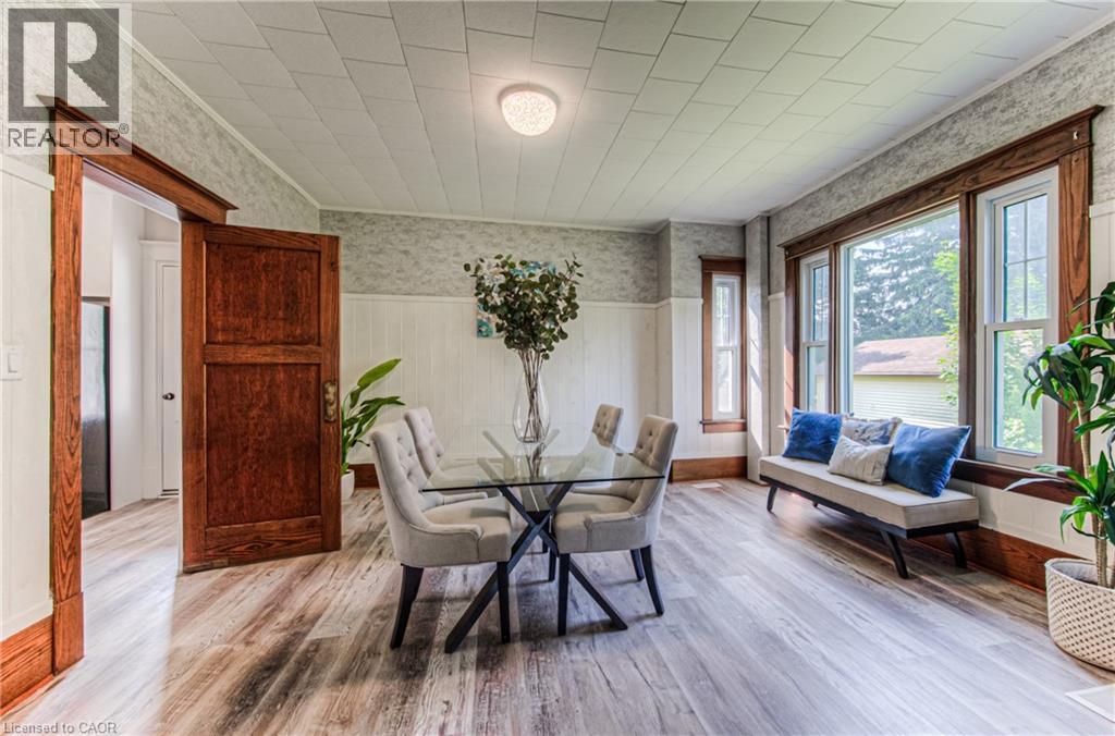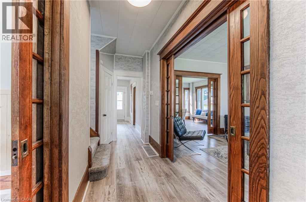 Step into timeless elegance in the charming town of Listowel with this extensively renovated century home. Blending historic character with modern updates, this stunning property offers generous living space, including three spacious bedrooms plus a versatile den, a main floor office, a separate dining and living room, and an expansive finished attic-perfect for an extra bedroom, family room, studio, or additional retreat. Step outside to the inviting covered front porch, ideal for sipping your morning coffee or unwinding with a cold drink on a warm summer evening. Recent upgrades ensure comfort and peace of mind, featuring new laminate plank flooring throughout, a new roof (2022), updated electrical (2022), new washer and dryer, and a beautifully redesigned kitchen complete with new stainless steel appliances. While thoughtfully modernized, the home's original charm shines through with preserved trim details and elegant glass pocket doors, creating a warm and inviting modern rustic feel. The large, unspoiled backyard offers endless possibilities for your personal touch, with ample space for creating your dream outdoor living area. Don't miss your chance to own one of Listowel's most distinctive and character-filled homes. (id:64974)