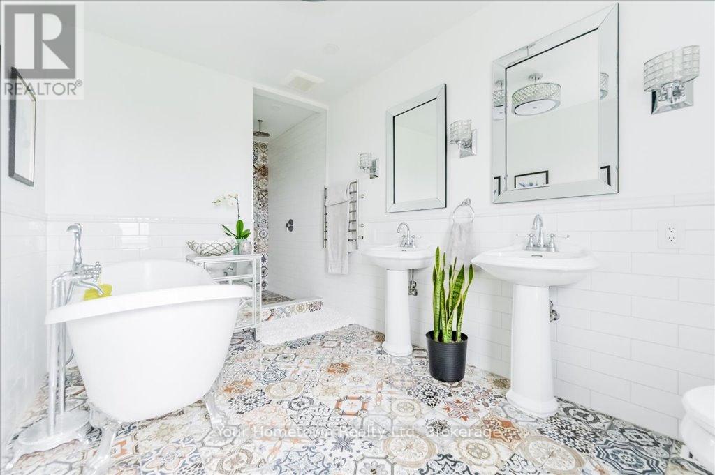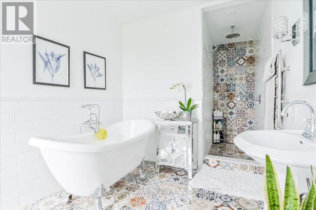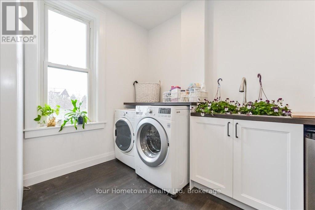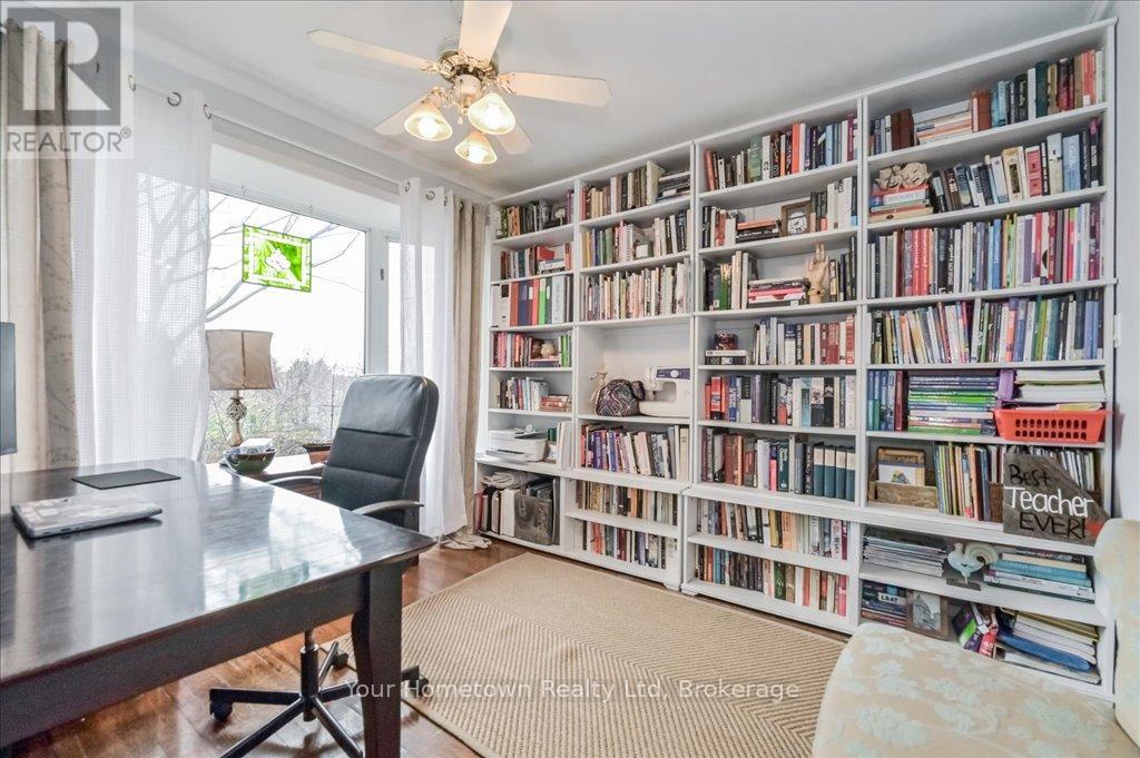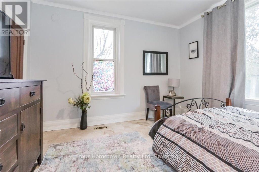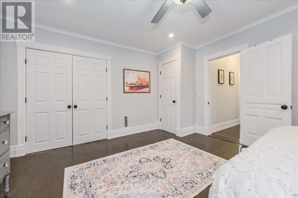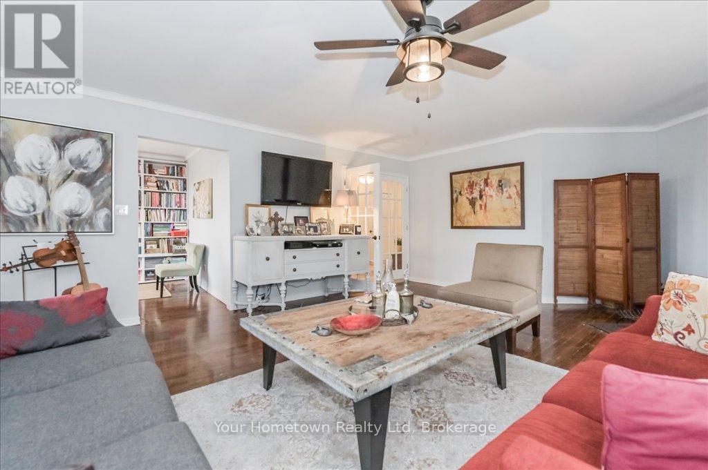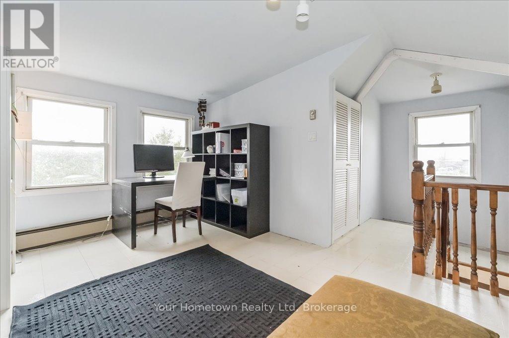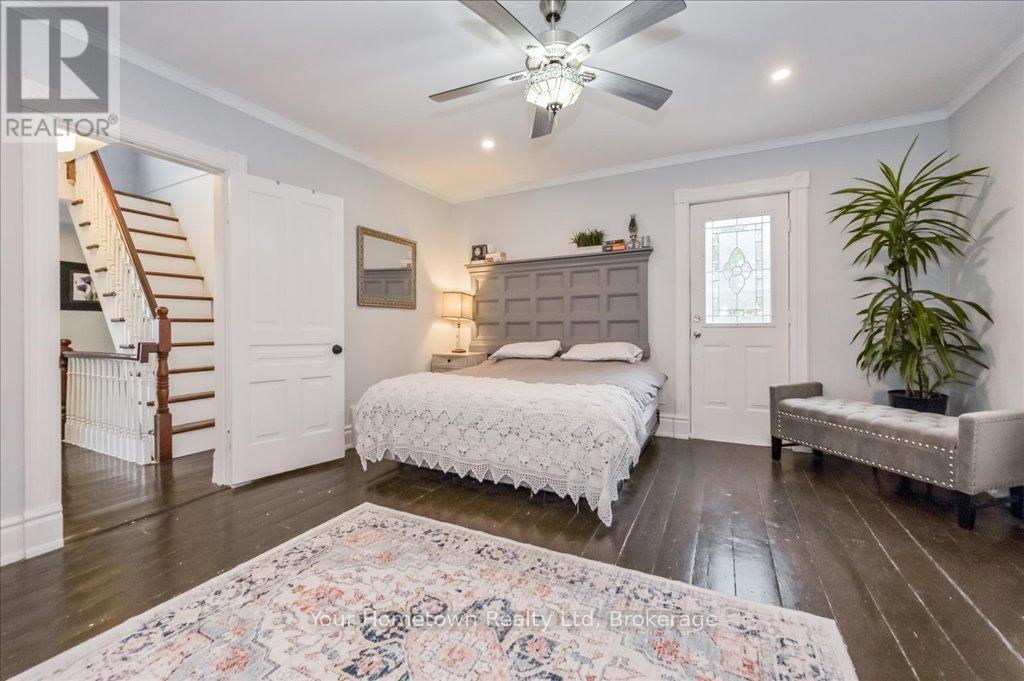 Secluded country living just minutes from town. This beautiful brick home is filled with character & timeless charm, board-and-batten additions, an attached two-car garage, and a private deck perfect for relaxing or entertaining. Set on 1.3 picturesque acres down a private drive, the property comes alive each spring with established perennials, mature trees, and your own fruit and nut trees - offering endless potential for expanded perennial or vegetable gardens. Surrounded by farmers' fields, enjoy peaceful views and exceptional privacy. Enter through the garage into a convenient mudroom or via the side entrance to a spacious, welcoming tiled foyer. The large yet cozy living room features a charming wood stove, creating the perfect gathering space. Just off the living room, a dedicated office/study with a built-in library provides an ideal work-from-home retreat with lovely views of the side yard. The main floor also offers a three-piece bath with glass shower, & a practical laundry/oversized pantry combination, and a main floor bedroom/bonus room. Opposite this space is the stunning, recently renovated custom kitchen, thoughtfully designed for both everyday living and entertaining. A bright passthrough leads to the sunroom, bathed in natural light from numerous windows and equally suited as a spectacular dining room. Upstairs, the spacious primary bedroom features a large cedar-lined closet & separate linen closet-exceptional storage for a nearly century home. A beautifully renovated five-piece bathroom includes walk-in tiled shower, soaker tub, & double sinks. A charming third bedroom sits adjacent to the bathrm. The third-floor loft offers a versatile fourth bedroom or bonus space, ideal for a teenager's retreat, guest room, or playroom. Enjoy the comfort and peace of mind that come with updated electrical and a new propane furnace - all just five minutes to Elora and two minutes to Ariss. Discover how sweet country living can be when you're close to everything. (id:64974)