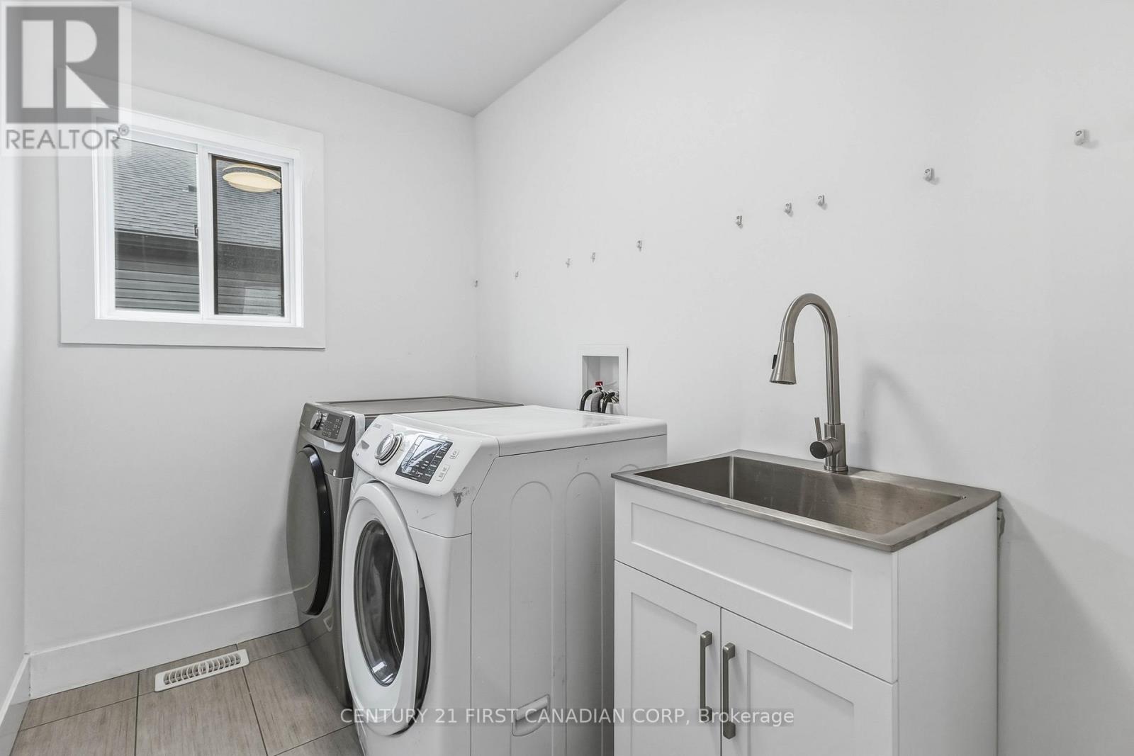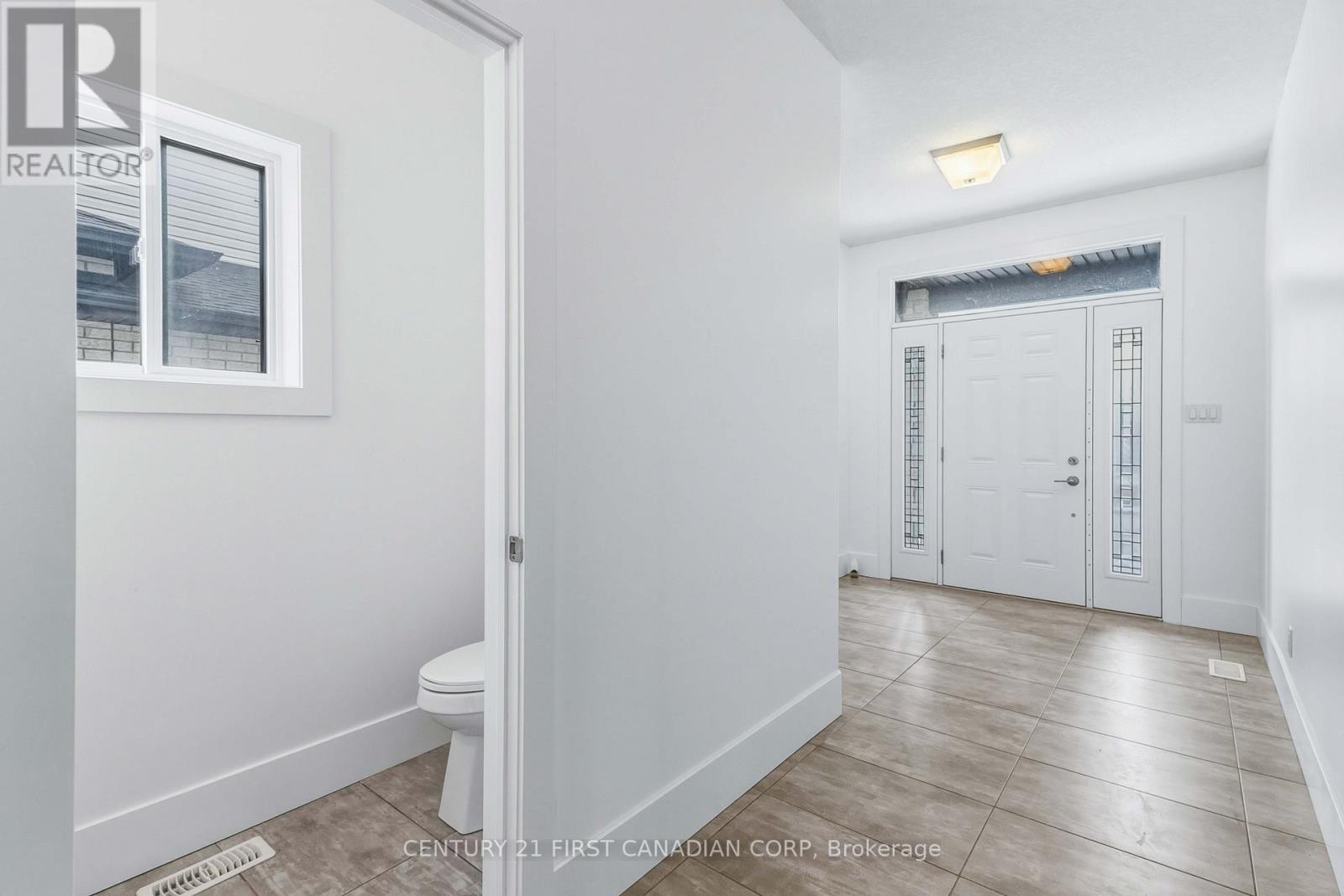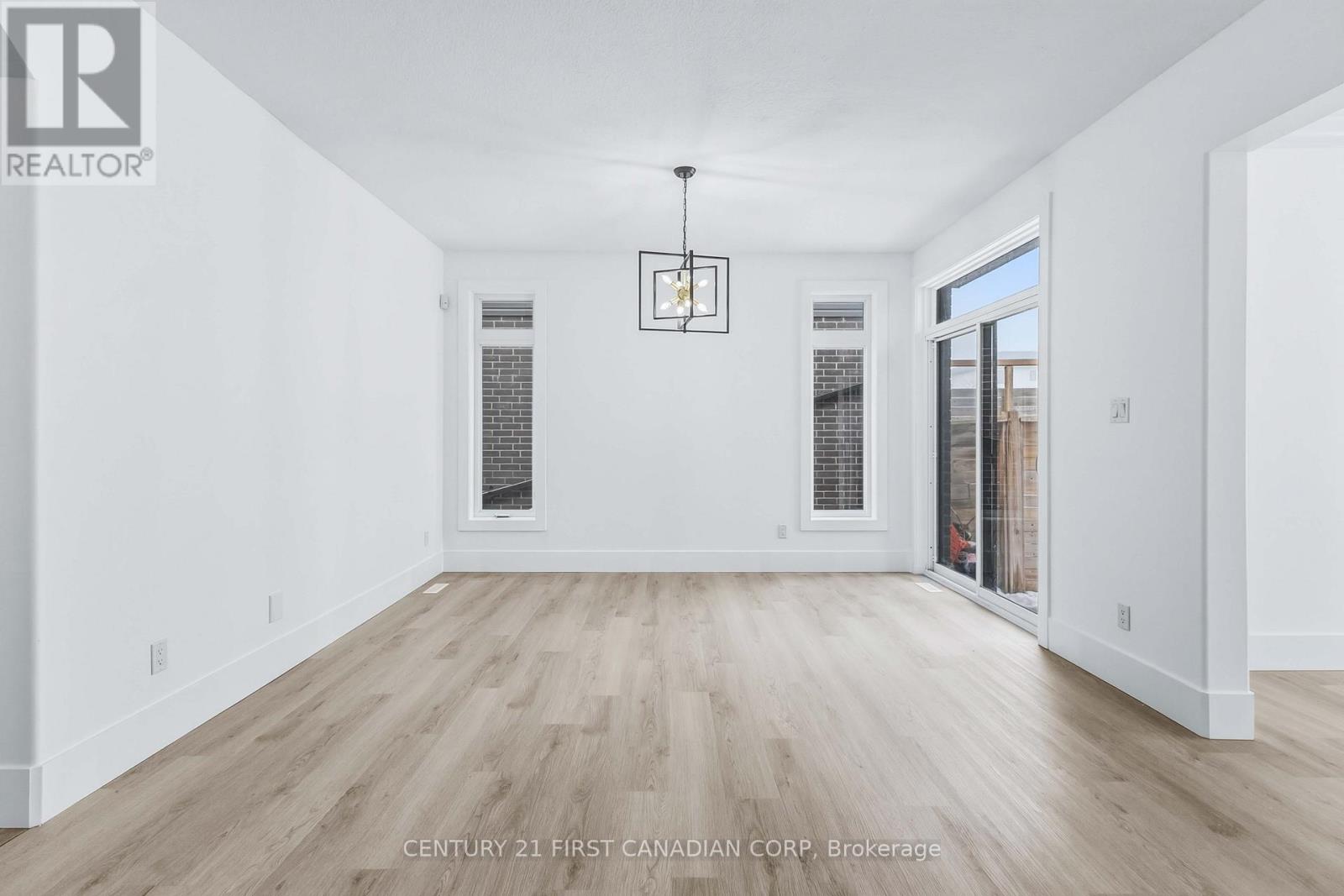 Welcome to this spacious and well-maintained home located in the highly desirable Talbot Village neighbourhood. Situated in a family-friendly community, this property offers over 2,850 square feet of living space and is surrounded by excellent schools, parks, trails, and everyday amenities.Upon entering, you are greeted by a wide and welcoming foyer that leads into a bright main floor featuring 9-foot ceilings and large windows that allow for natural light. The open-concept layout is ideal for both everyday living and entertaining. The kitchen is thoughtfully designed with quartz countertops, a large island with matching quartz surface, stylish backsplash, and a generously sized pantry. The main floor also offers a spacious living and dining area, making it perfect for hosting large gatherings, along with sliding doors off the dining room that lead outdoors.The upper level features a cozy and comfortable family living area, three well-proportioned bedrooms, and a convenient laundry room with washer, dryer, and laundry sink. The primary bedroom is a true retreat, offering a walk-in closet and a luxurious five-piece ensuite finished with granite countertops.The basement provides excellent additional living space and future potential, featuring two good-sized bedrooms, space for a living room, full kitchen cabinetry, and laundry rough-ins already in place. A separate side entrance leads to the basement, offering the possibility of creating a two-unit home or in-law suite.This home is ideally located within walking distance to White Pine Public School, École Élémentaire La Pommeraie, No Frills, GoodLife Fitness, parks, and trails. It is also just minutes from the YMCA, the new MAC Noor Gardens, and provides easy access to Highways 401 and 402. With its generous layout, income potential, and prime location, this home is a fantastic opportunity in one of the area's most sought-after communities. (id:64974)