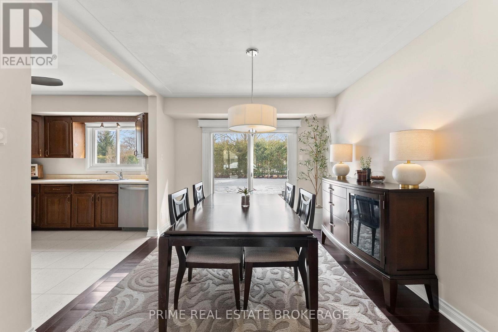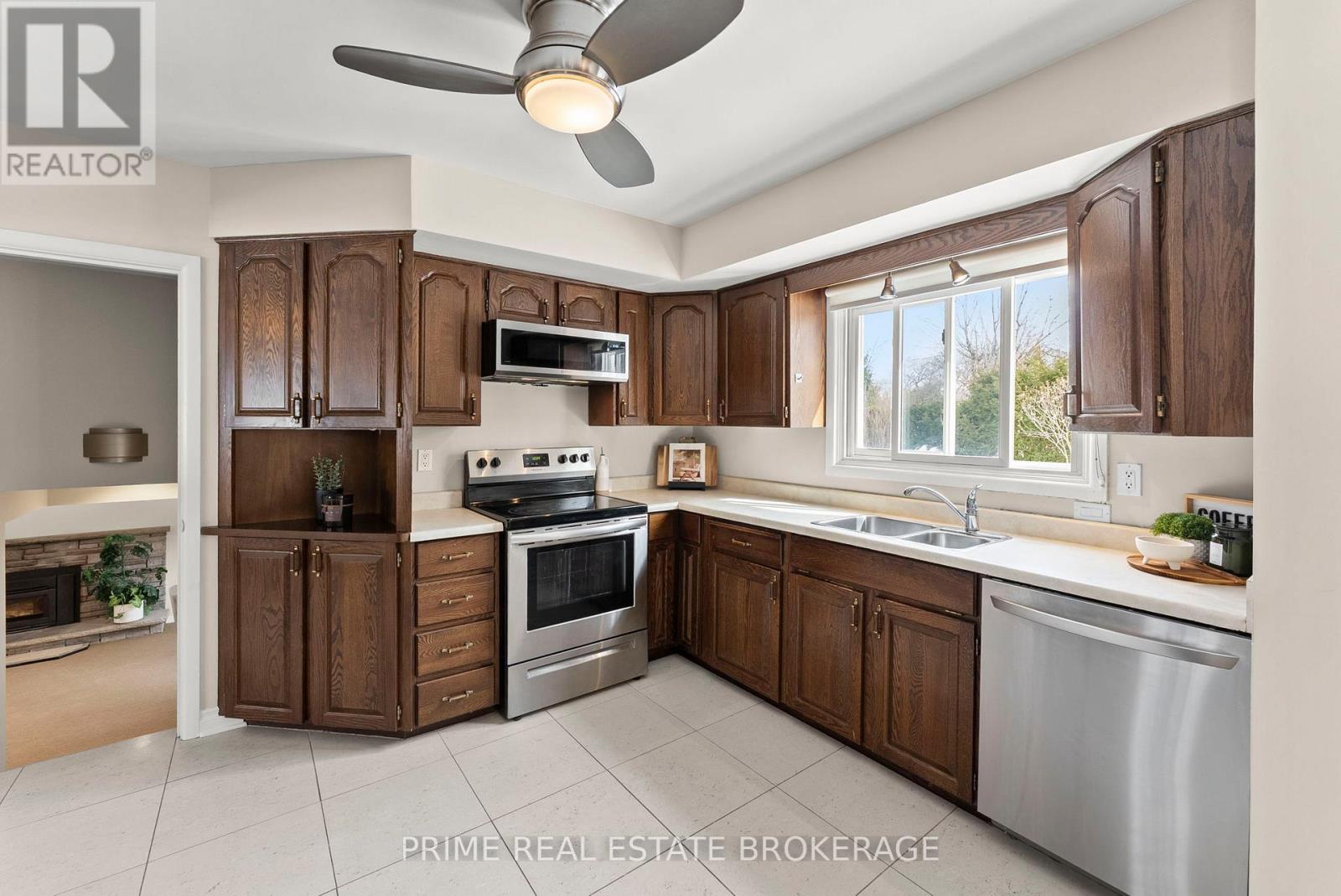 The kind of street you hope your kids grow up on. Welcome to 696 Algoma Place.Tucked at the end of a quiet court in sought-after Northridge, this is more than just a great location. It is the lifestyle families wait for. No through traffic. Extra privacy. A real sense of community. The kind of place where bikes get left on the lawn and someone is always outside.Located within one of North London's most respected school districts, this neighbourhood has always held its value. People move in and stay.The lot is exceptional. Wide, fully fenced, and centred around an in-ground pool that completely changes your summers. This is not a backyard you look at from inside. It is one you live in. It becomes the gathering place. The birthday party house. The home where someone says they will stay for an hour and it turns into three.Inside, the classic four-level side split offers the space and separation families appreciate. Freshly painted throughout, the home feels bright, clean, and move-in ready. The main level features defined living, dining, and kitchen spaces that flow naturally while still giving you distinct areas to live in.Upstairs, you will find three generous bedrooms and a full bath. The lower level offers a spacious rec room anchored by a brick fireplace with wood insert, a second full bath with stand-up shower, and direct access to the backyard. Perfect for pool days, entertaining, or giving older kids their own space. The lowest level includes laundry and extensive storage.Major mechanical updates include a heat pump and A/C replaced in 2024. Quiet court. Established neighbourhood. A home designed for real family life.Homes like this do not come up often. And when they do, they do not last long. (id:64974)