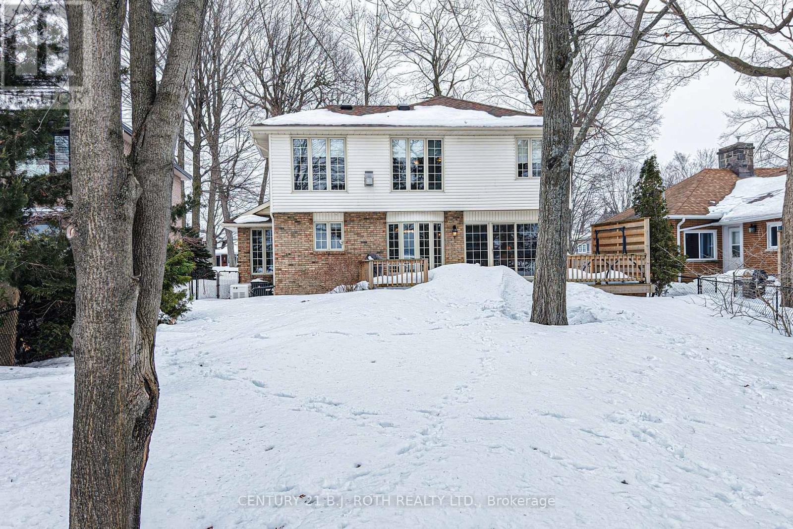 Home on Lake Couchiching. Beautiful home on deep, well treed lot setback for exceptional privacy. Park like setting, located on prestigious Couchiching Point near Tudhope Park and the Cross- Canada Trail system. This home faces west for spectacular sunsets and the twinkling lights and night vista of the Orillia Skyline. Deep water for swimming, fishing and boating. Renovated in 2022, Hardwood flooring throughout the house . Newly painted in neutral tones. Newer ensuite with marble shower, vanity and tub surround .Main floor laundry area. Newly finished basement with vinyl plank flooring. Newer Lennox, quiet furnace. Cold room in basement. Updated baseboard heating in basement[2024]. Huge storage space. Central air conditioning new unit 2025. New deck 2019. Newer high--end roof and skylight in 2021. New Generac generator In 2022. Watering system and outdoor lighting. Light weight Cedar and aluminum dock [easily assembly and installation.] Newly redesigned and planted front yard garden [2025]. Home has three bedrooms and four bathrooms. Large living room adjoining dining room. Family room and the master bedroom have Napoleon fireplaces. [Fireplaces serviced 2024.] Laundry room area on the main floor. Kitchen has Corian countertops, custom cabinetry and stainless - steel appliances. Most rooms have lake views. Beautiful large casement windows make the interior Light and airy. (id:64974)
