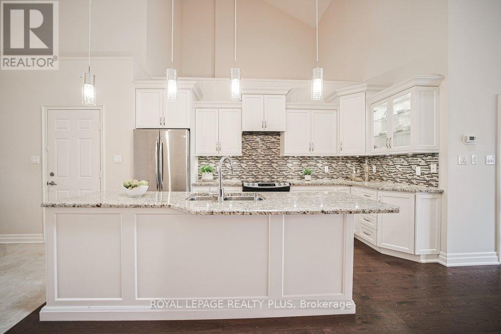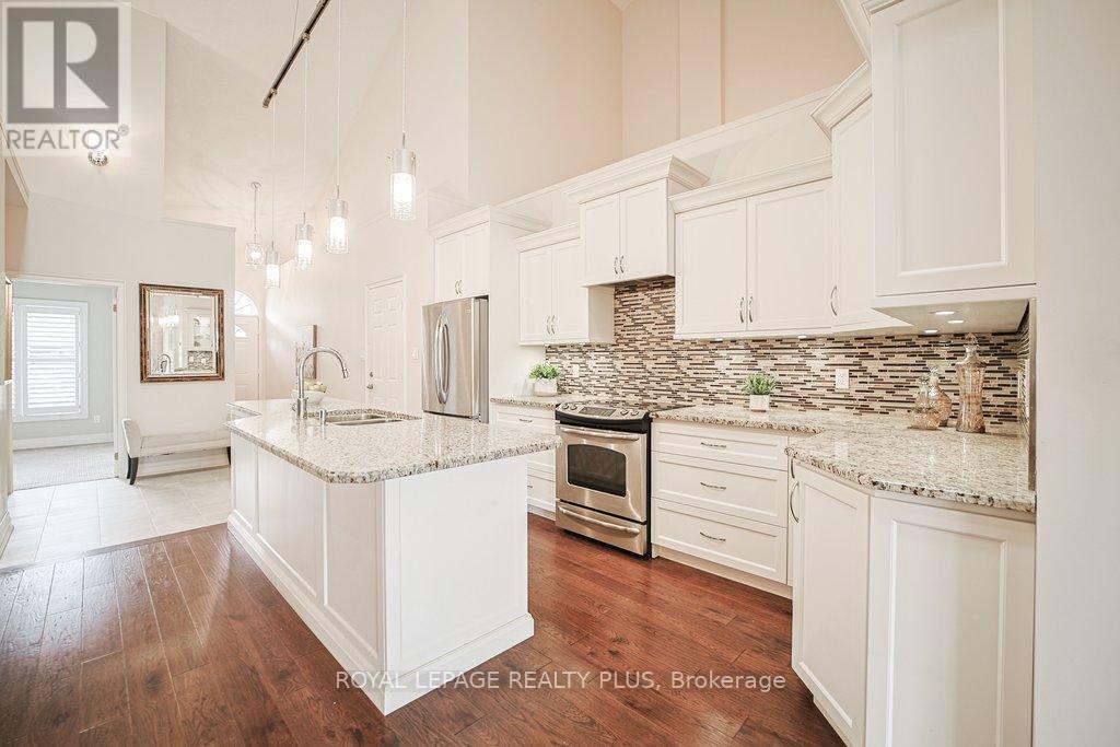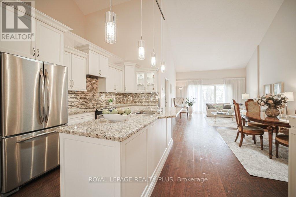 Experience this exceptional, one-of-a-kind bungalow offering almost 1,400 sq. ft. of thoughtfully designed open-concept living. From the moment you enter, you're greeted by soaring vaulted ceilings and an abundance of natural light, creating a bright, airy, and truly inviting atmosphere. The gourmet kitchen is the heart of the home, showcasing a large island ideal for entertaining, , and a full suite of included stainless steel look appliances-perfectly blending style and functionality. Set on a quiet cul de sac, this remarkable property backs onto mature trees, evergreens as well as deciduous, and lush green shrubs offering picturesque ravine-like views towards Ratray marsh and a rare sense of privacy. Enjoy seamless indoor-outdoor living with walkouts from both the main level and the lower level, allowing you to fully appreciate the lush, tranquil surroundings. The spacious primary retreat features a serene ravine view, mirrored closet doors, and a beautifully updated 3-piece ensuite. A well-appointed second bedroom offers a large closet and charming front garden views, conveniently located next to a 4-piece, also recently updated. washroom and a dedicated laundry room-providing true single-level convenience. The fully finished lower level expands your living space with a massive recreation area, ideal for entertaining, relaxing, or creating the space you've always envisioned. Step onto to the private patio and immerse yourself in a peaceful, nature-filled setting surrounded by mature trees. This turnkey home offers the perfect blend of comfort, style, and serenity-an exceptional opportunity for those seeking refined living in a quiet, scenic location and still remarkably close to all thewewewen amenities. (id:64974)