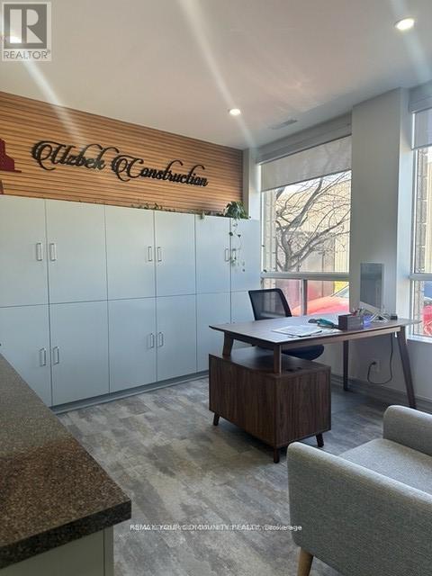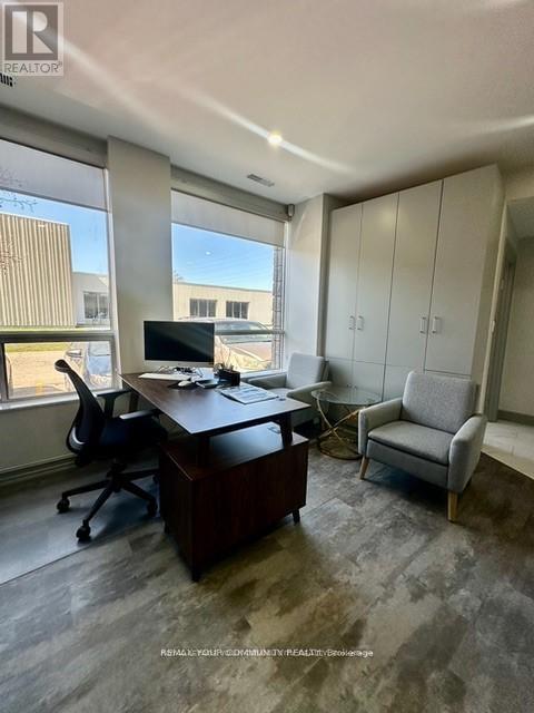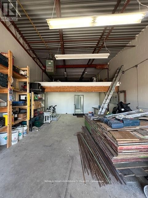 Newly renovated industrial condo unit featuring a drive-in door. This turnkey space offers a bright main office/reception area with an additional private office, plus a designated kitchenette space. A large rear mezzanine provides valuable extra storage (not included in the square footage). Renovations include new flooring and tiles, a fully updated washroom, new pot lights, updated electrical, fresh paint throughout including storage areas, and new doors for both the washroom and office. Ample parking available. Perfect for a variety of industrial or professional uses. (id:64974)