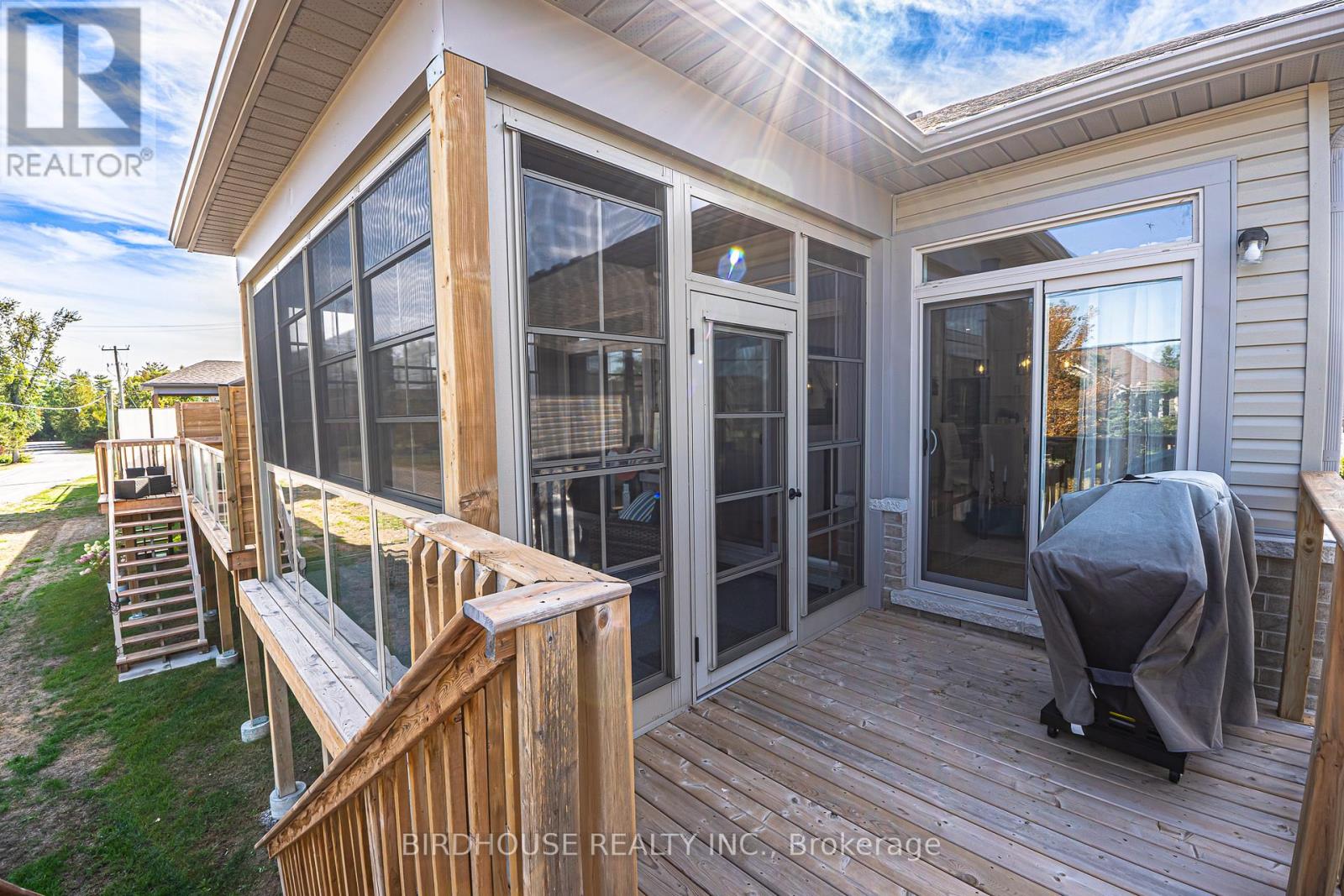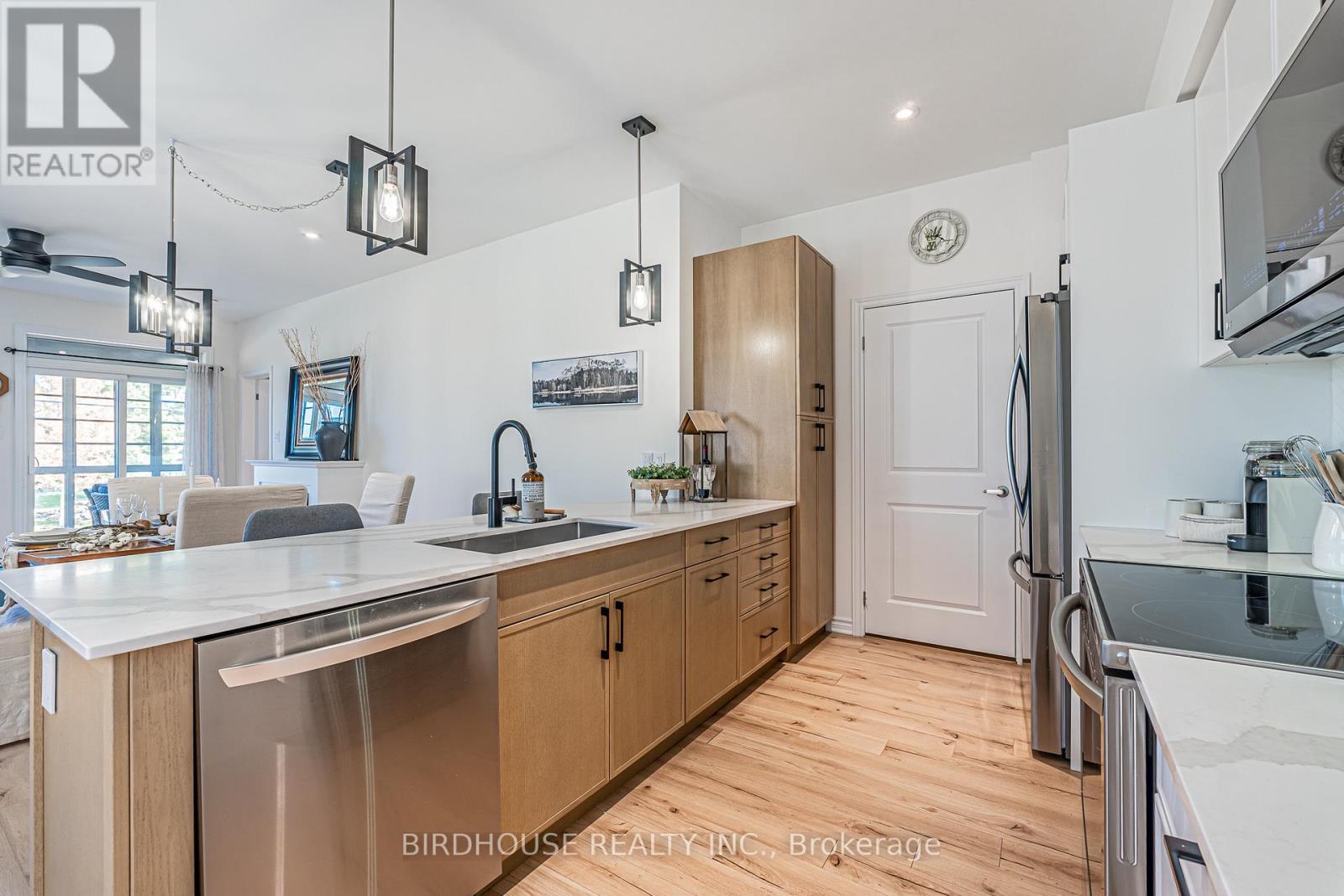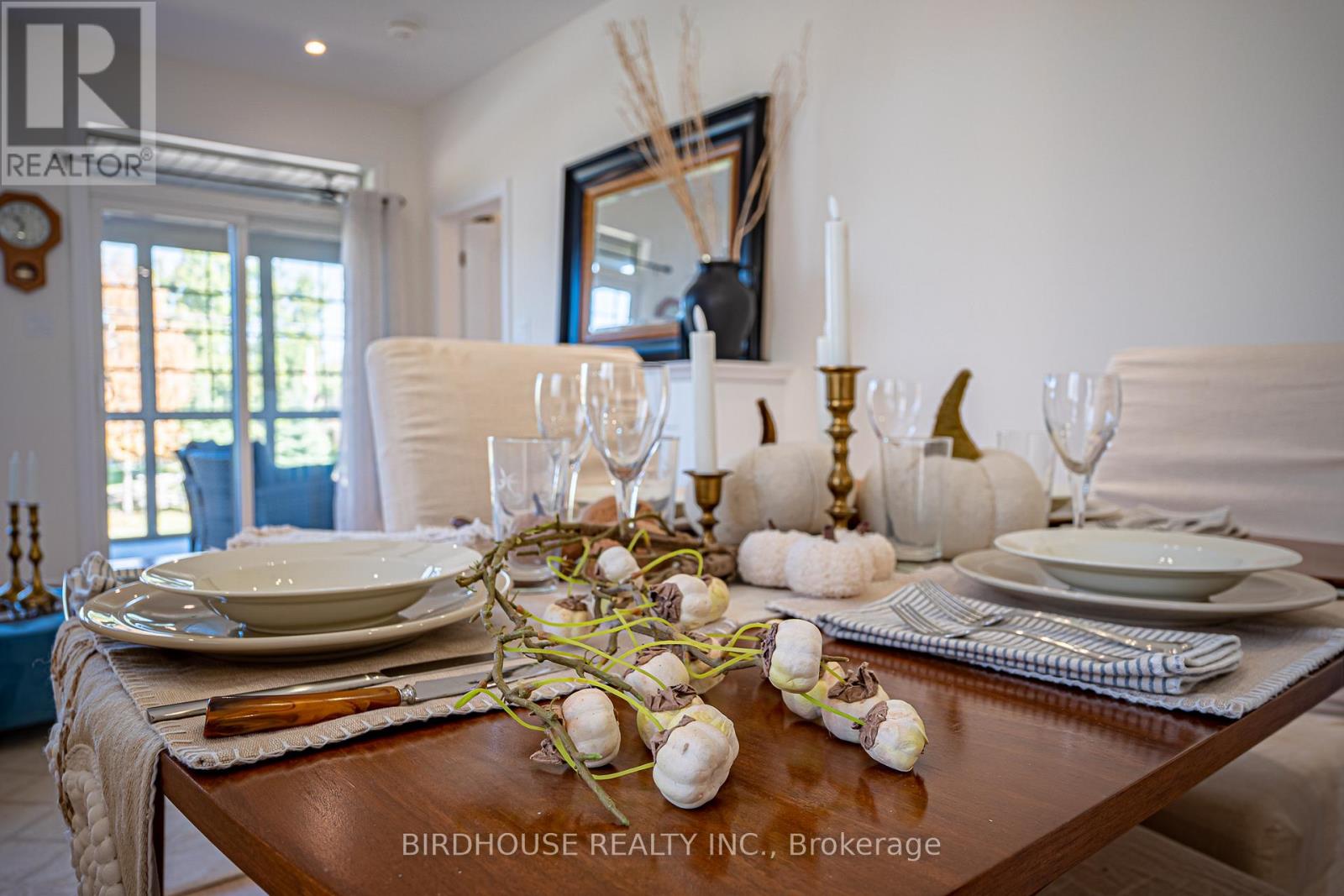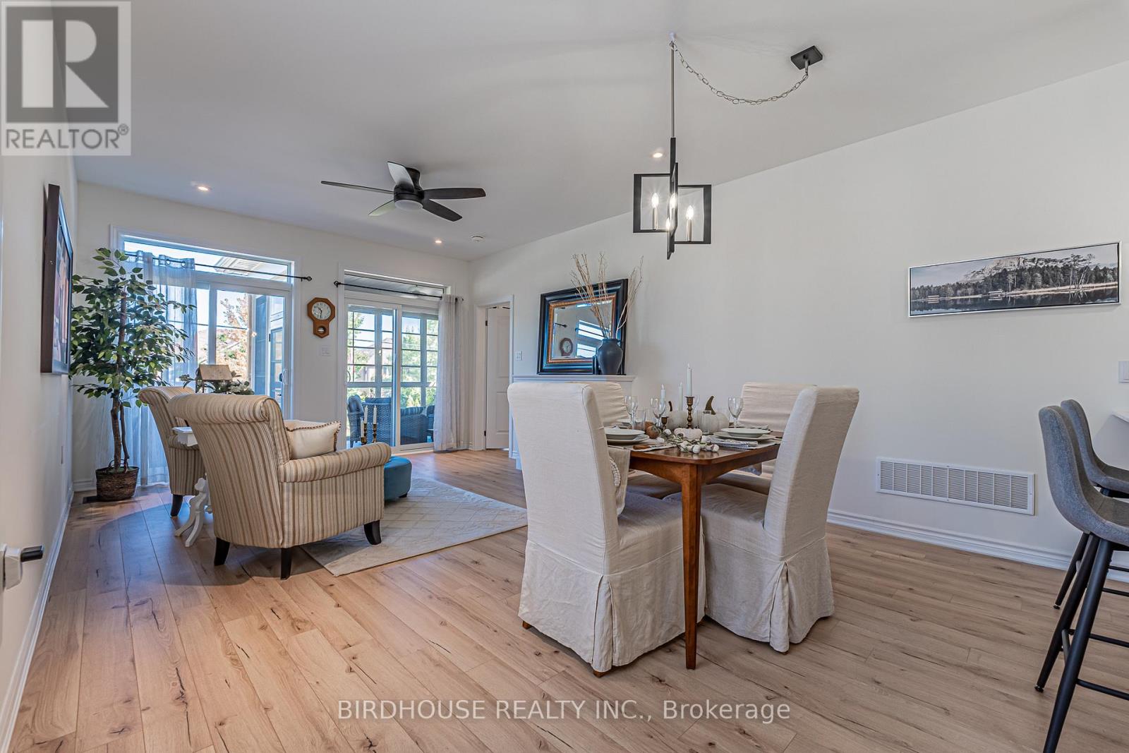 Beautiful end unit townhome in a highly prestigious neighbourhood in Bobcaygeon. This end unit model suite has been upgraded and used to showcase the homes in this prime location townhome development. Uniquely located, backing onto Port 32 with numerous accessible walking trails throughout the neighbourhood. Further, this home is steps to a park, fitness centre/swimming pool, shopping and downtown Bobcaygeon with shops, restaurants and it's famous locks. Master bedroom with spa-like ensuite and doors into the 3-season sunroom, brings you additional space for relaxation or entertainment. The entry melds into an open concept spacious living room/dining/room/kitchen. 2 Large bedrooms, additional full bath and laundry room, complete the main floor of this spacious and modern unit. (id:64974)