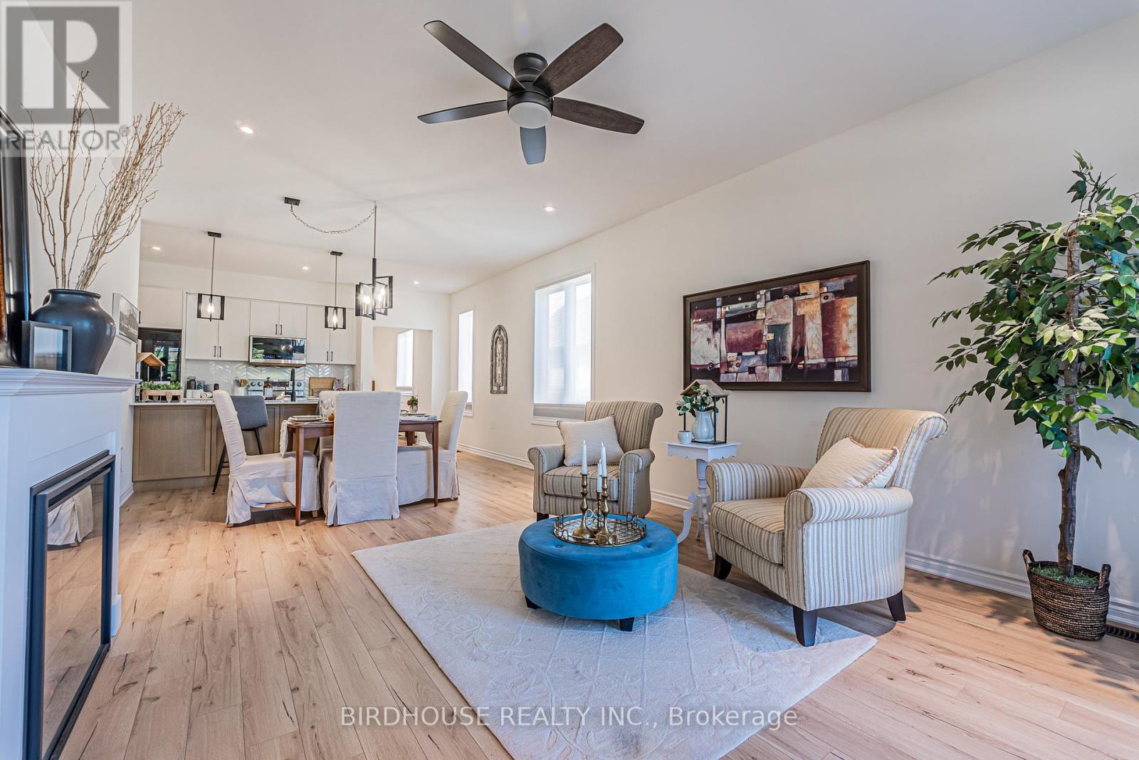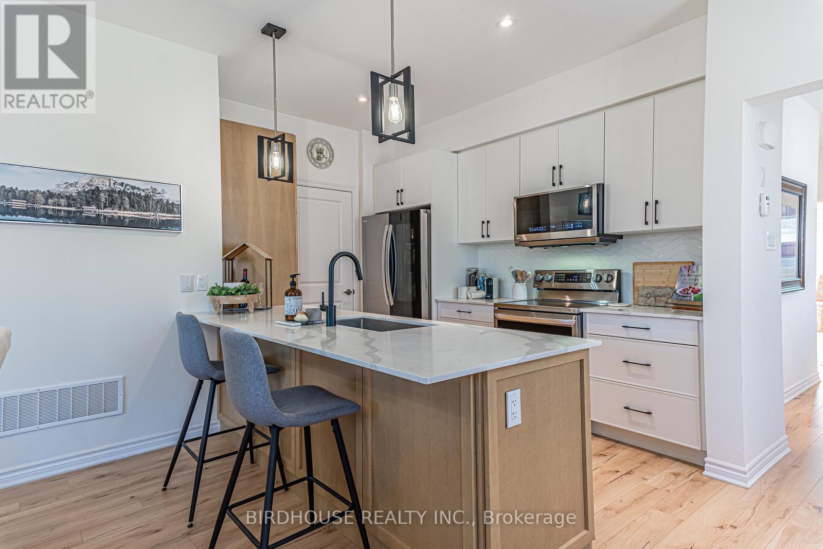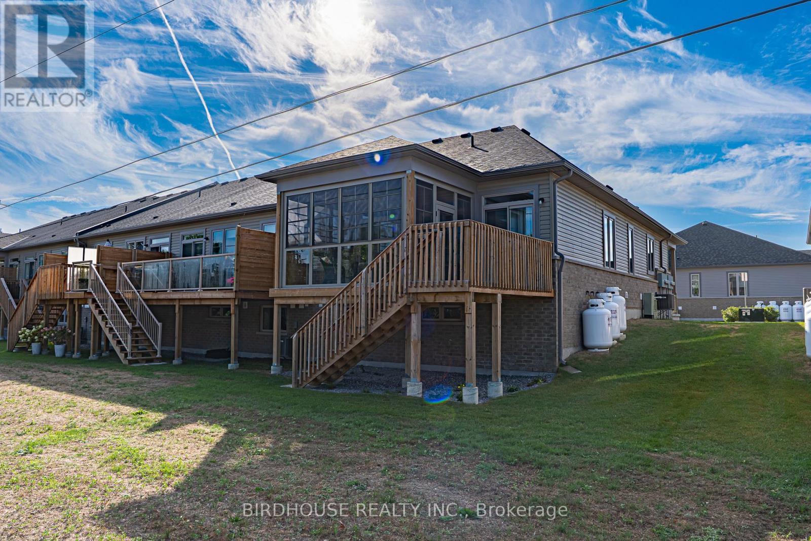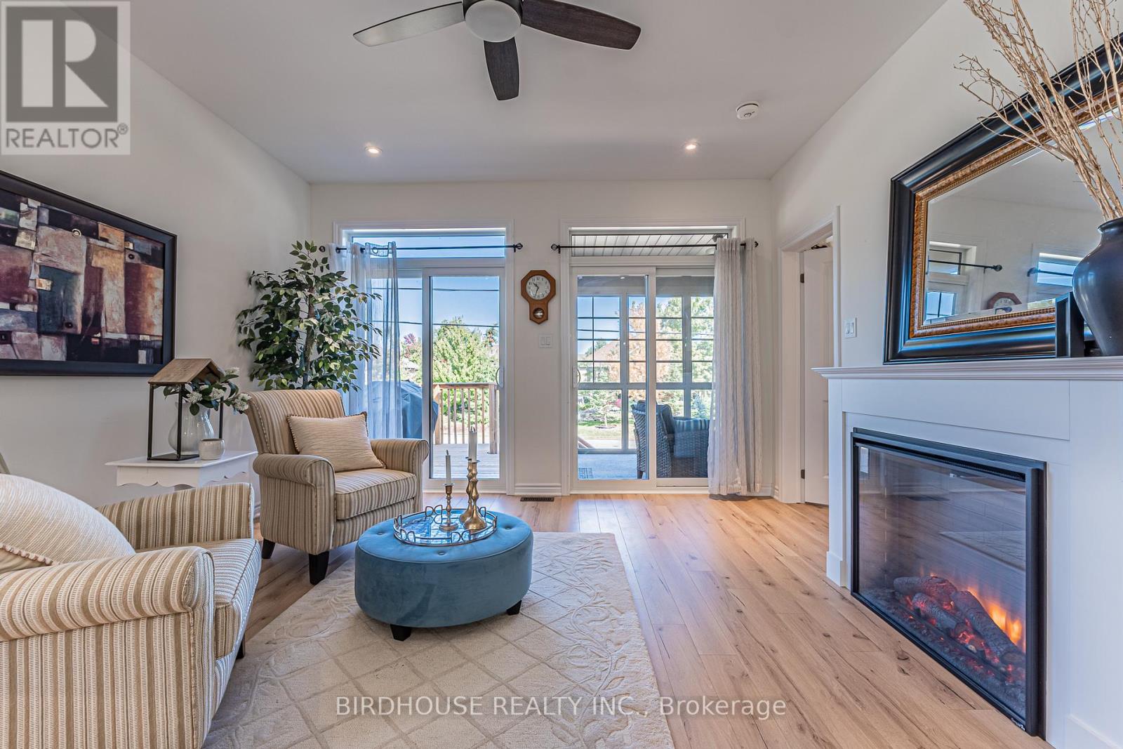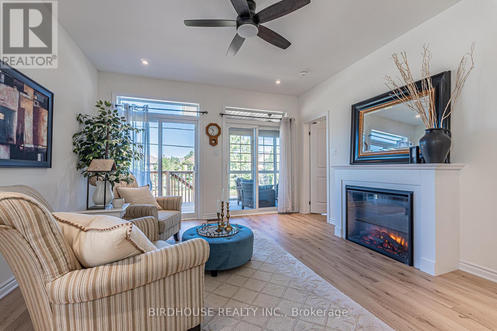 Beautiful end unit townhome in a highly prestigious neighbourhood in Bobcaygeon. This end unit model suite has been upgraded and used to showcase the homes in this prime location townhome development. Uniquely located, backing onto Port 32 with numerous accessible walking trails throughout the neighbourhood. Further, this home is steps to a park, fitness centre/swimming pool, shopping and downtown Bobcaygeon with shops, restaurants and it's famous locks. Master bedroom with spa-like ensuite and doors into the 3-season sunroom, brings you additional space for relaxation or entertainment. The entry melds into an open concept spacious living room/dining/room/kitchen. 2 Large bedrooms, additional full bath and laundry room, complete the main floor of this spacious and modern unit. (id:64974)