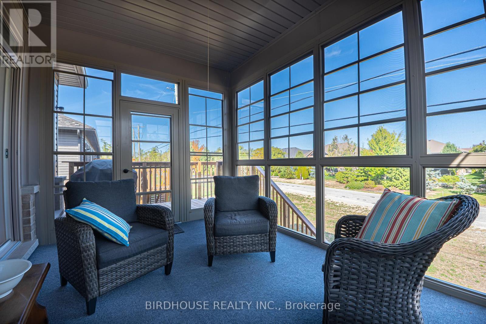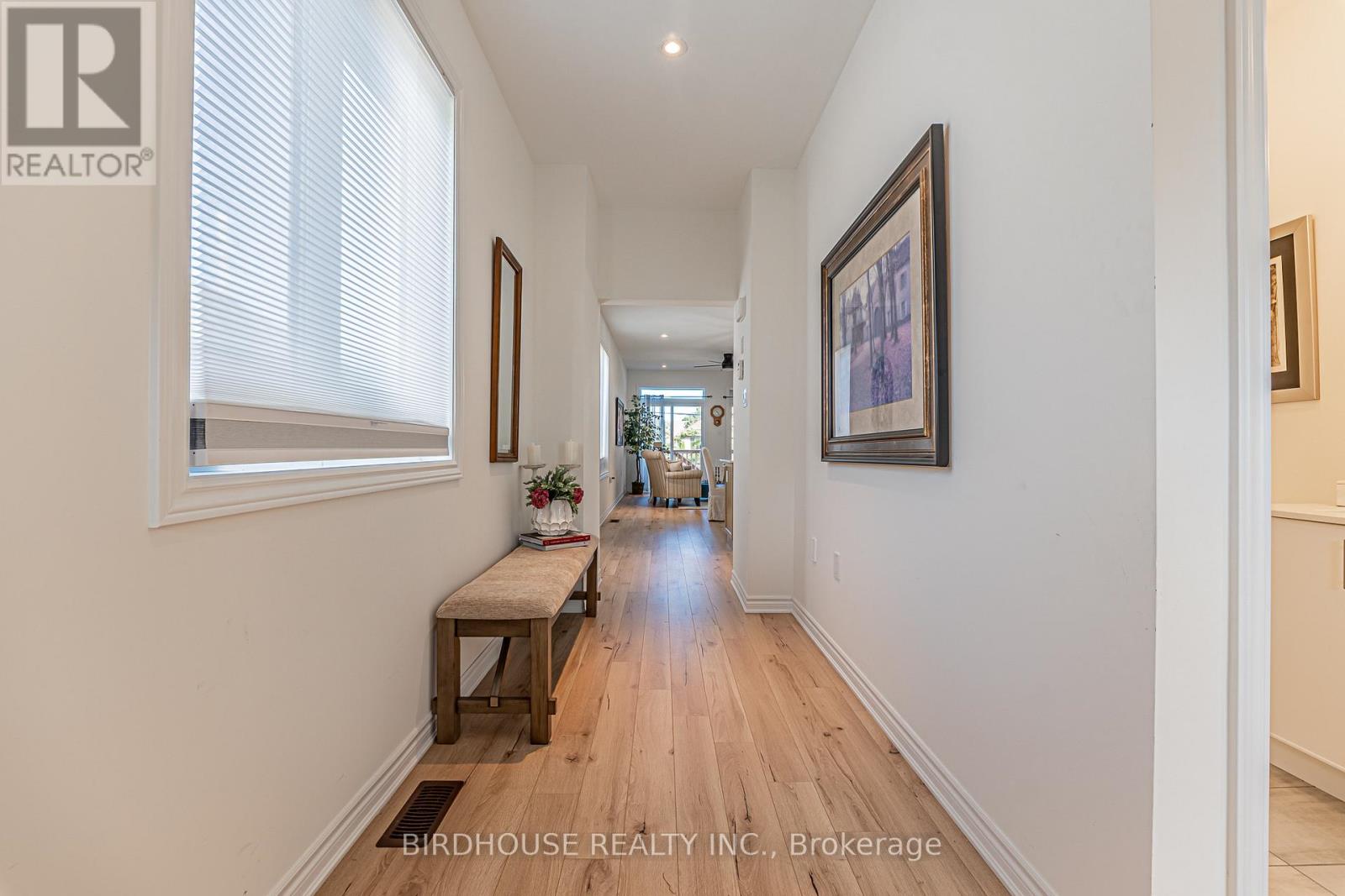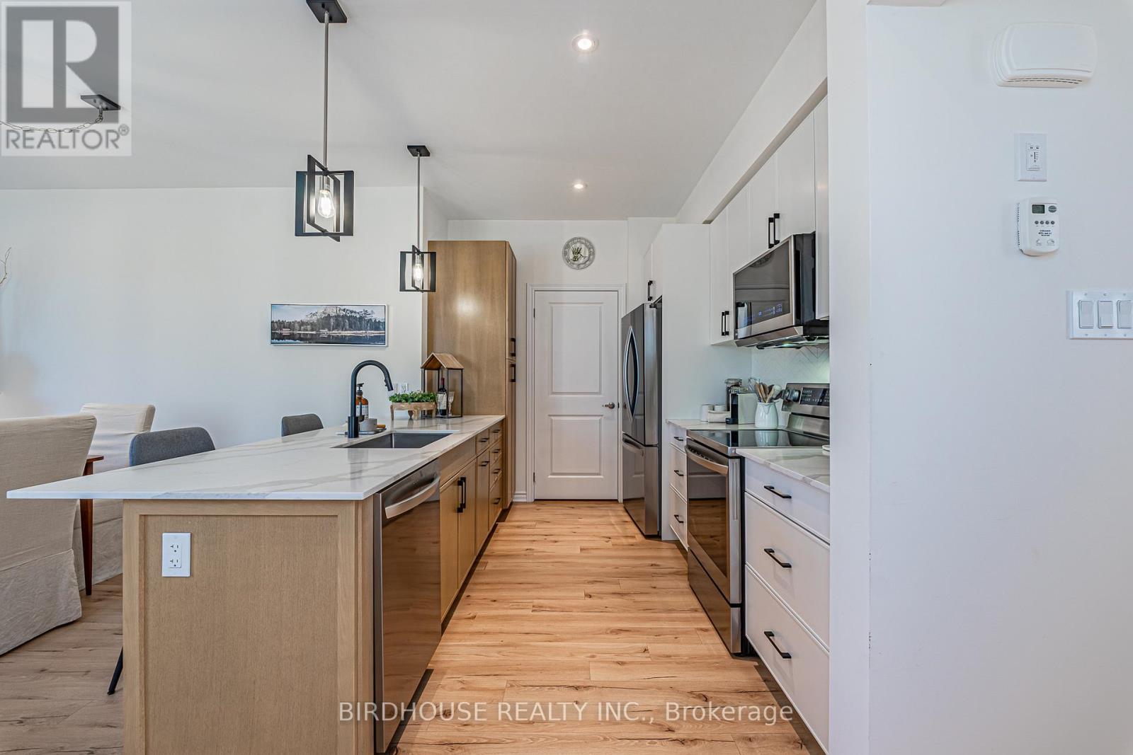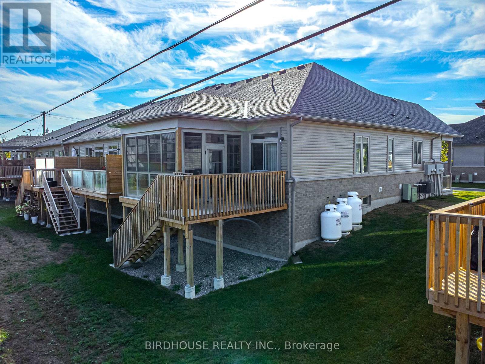 Beautiful end unit townhome in a highly prestigious neighbourhood in Bobcaygeon. This end unit model suite has been upgraded and used to showcase the homes in this prime location townhome development. Uniquely located, backing onto Port 32 with numerous accessible walking trails throughout the neighbourhood. Further, this home is steps to a park, fitness centre/swimming pool, shopping and downtown Bobcaygeon with shops, restaurants and it's famous locks. Master bedroom with spa-like ensuite and doors into the 3-season sunroom, brings you additional space for relaxation or entertainment. The entry melds into an open concept spacious living room/dining/room/kitchen. 2 Large bedrooms, additional full bath and laundry room, complete the main floor of this spacious and modern unit. (id:64974)