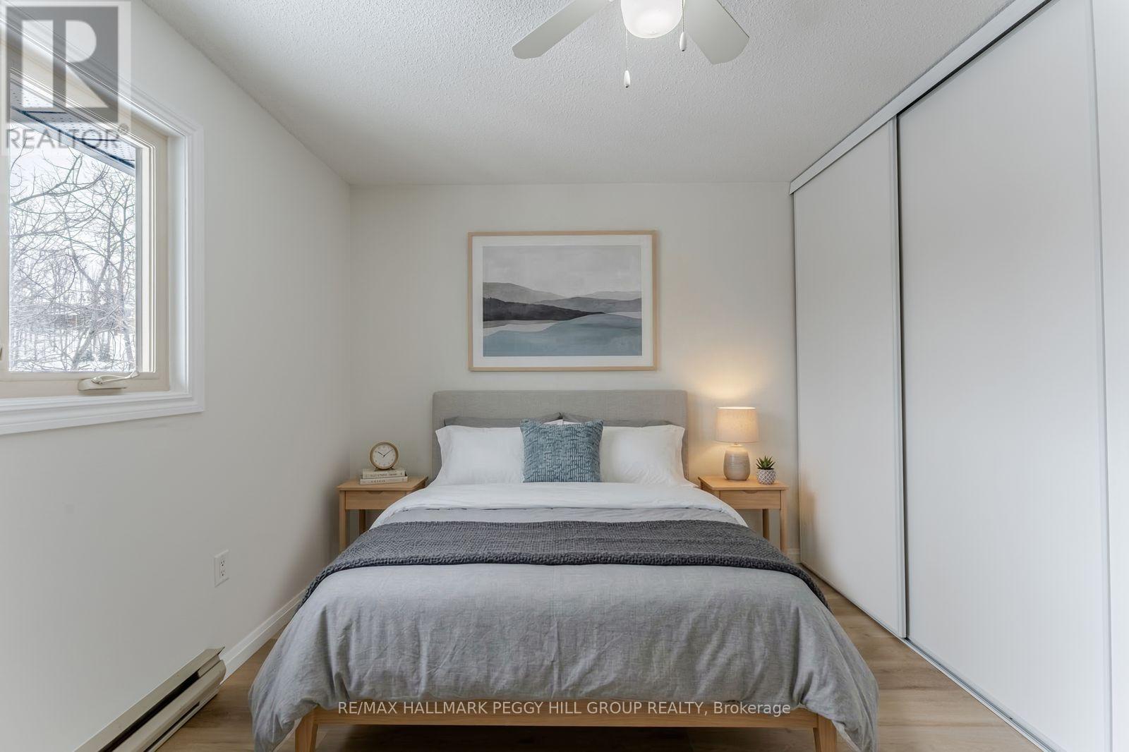 LOW-MAINTENANCE LIVING WITH TREED VIEWS & THOUGHTFUL UPDATES IN BARRIE'S SOUGHT-AFTER ARDAGH NEIGHBOURHOOD! More than 1,100 square feet gives this 2-storey condo townhouse a layout that feels bright, open, and well-sized, with a sun-filled main floor where the living and dining area gathers around a natural gas fireplace and extends to a balcony tucked into the trees. Light grey cabinetry, a tile backsplash, recently updated appliances, and open sightlines into the dining area give the kitchen a fresh look and an easy connection to the rest of the space. Upstairs, three bedrooms offer room for family, guests, or a home office, including a primary bedroom with a large closet, served by a 4-piece bathroom. Newly updated vinyl flooring throughout and newer closet doors bring a refreshed finish, while the main floor laundry room and an owned driveway parking spot close to the front door add real day-to-day convenience. Set on a quiet court in Barrie's Ardagh neighbourhood, this home is within walking distance to shopping, dining, groceries, parks, and public transit, with quick access to Highway 400, the Allandale Waterfront GO Station, Kempenfelt Bay, Centennial Beach, scenic trails, shoreline parks, and downtown Barrie. Low monthly maintenance fees include water, building insurance, and parking, and the condo complex also offers an exercise room, tennis and basketball courts, an outdoor pool, and visitor parking. An ideal #HomeToStay for those seeking affordability, thoughtful updates, and a location that puts everything within reach! (id:64974)