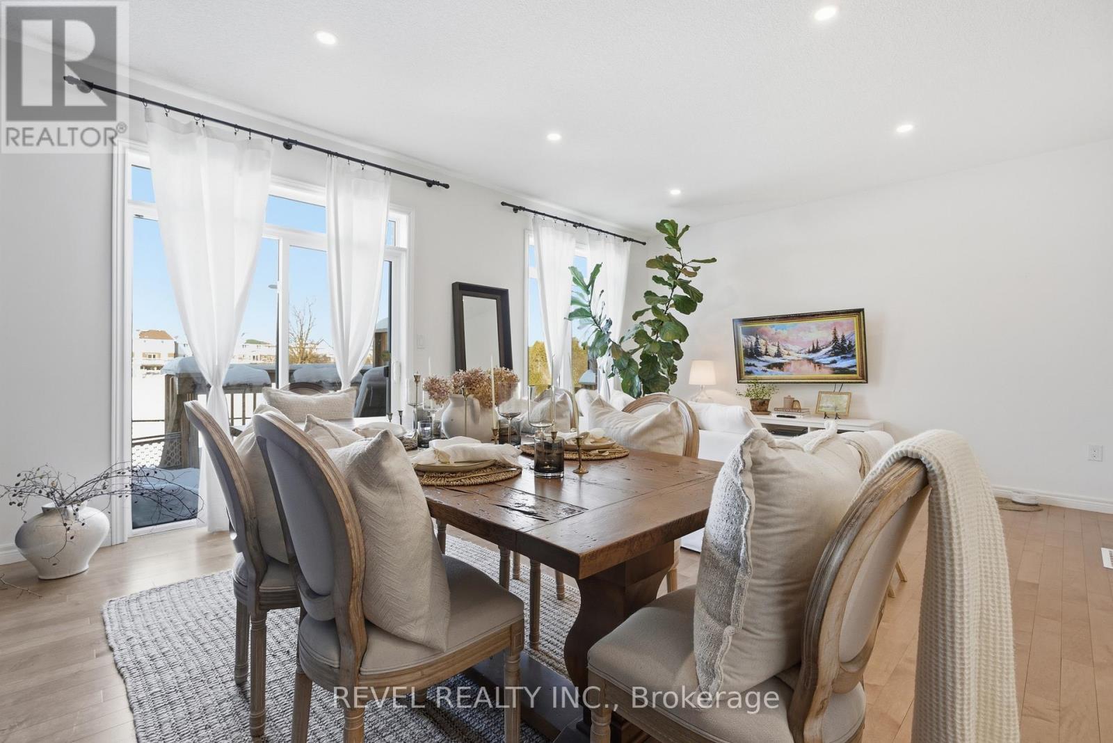 Welcome to this beautifully designed townhouse backing onto peaceful conservation lands, offering privacy and tranquil views right from your backyard. Thoughtfully crafted with open-concept living in mind, this home is perfect for both everyday comfort and effortless entertaining.The spacious kitchen is the heart of the home, featuring a functional layout ideal for hosting family and friends. Large windows throughout fill the main floor with natural light, and the walkout leads to a beautiful deck where you can relax and enjoy the serene surroundings.Upstairs, you'll find three generous bedrooms, including a primary retreat complete with a walk-in closet and private ensuite. Exceptional design details and expansive windows create a bright, airy feel throughout.Additional highlights include a garage, low-maintenance living, and an unfinished basement with fantastic potential for a future recreation room or additional living space.Conveniently located close to amenities, this home offers the perfect blend of comfort, style, and nature. (id:64974)