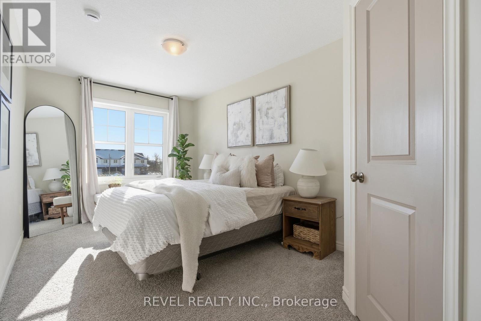 Welcome to this beautifully designed townhouse backing onto peaceful conservation lands, offering privacy and tranquil views right from your backyard. Thoughtfully crafted with open-concept living in mind, this home is perfect for both everyday comfort and effortless entertaining.The spacious kitchen is the heart of the home, featuring a functional layout ideal for hosting family and friends. Large windows throughout fill the main floor with natural light, and the walkout leads to a beautiful deck where you can relax and enjoy the serene surroundings.Upstairs, you'll find three generous bedrooms, including a primary retreat complete with a walk-in closet and private ensuite. Exceptional design details and expansive windows create a bright, airy feel throughout.Additional highlights include a garage, low-maintenance living, and an unfinished basement with fantastic potential for a future recreation room or additional living space.Conveniently located close to amenities, this home offers the perfect blend of comfort, style, and nature. (id:64974)