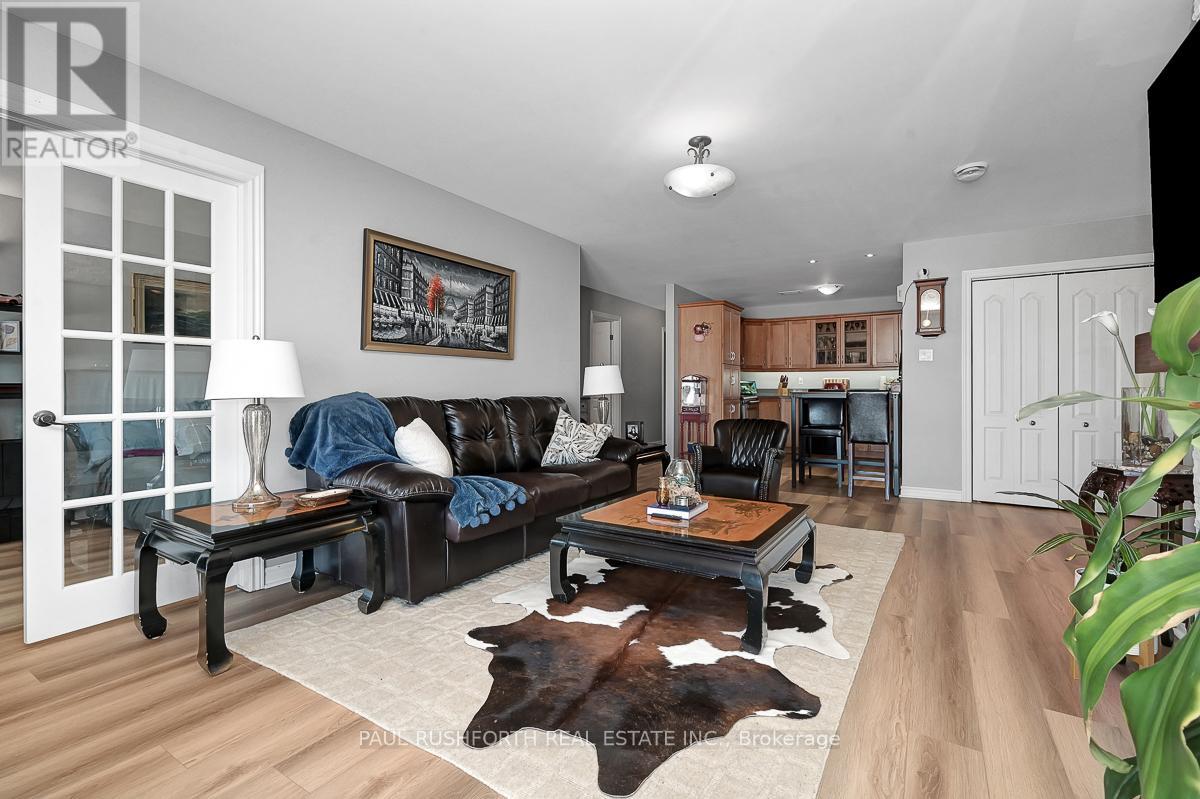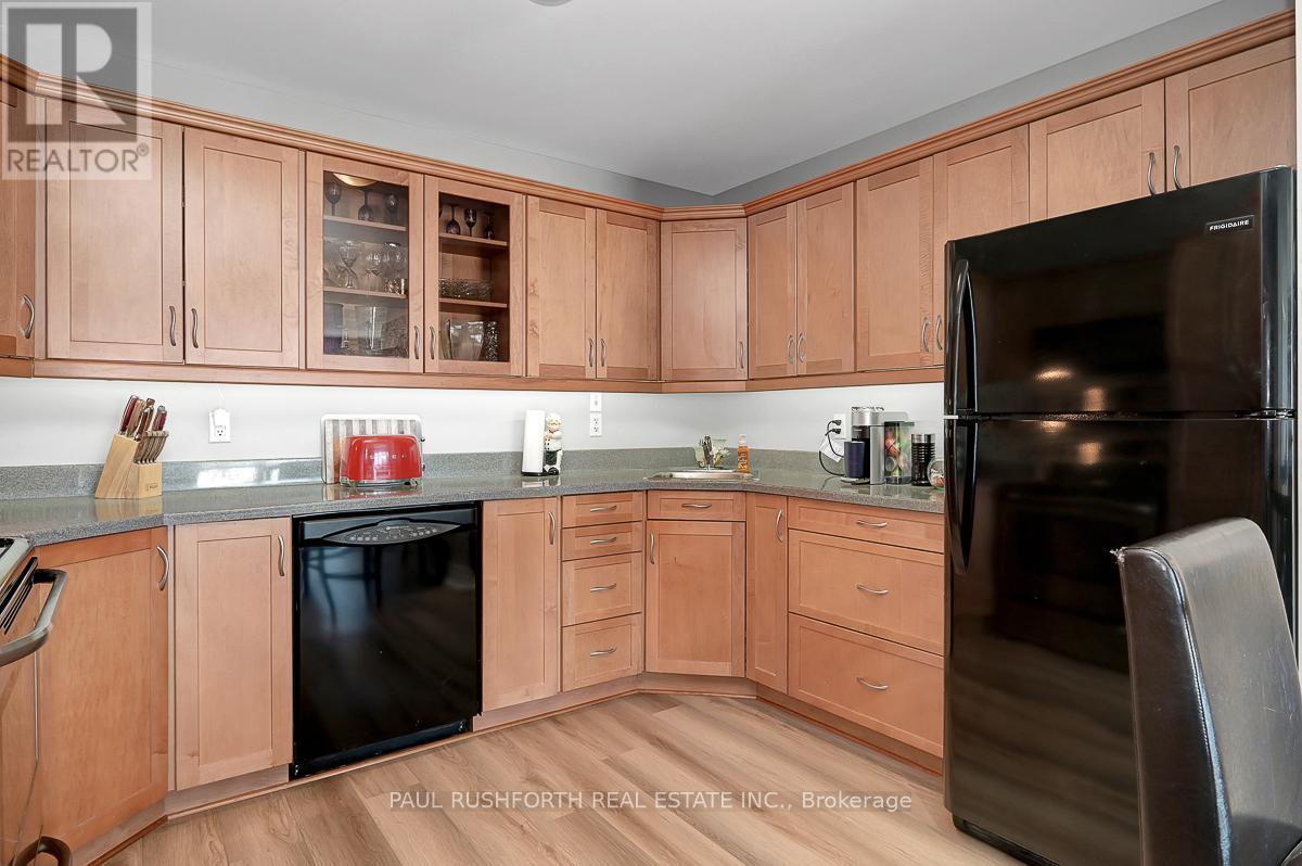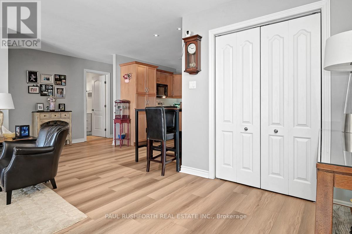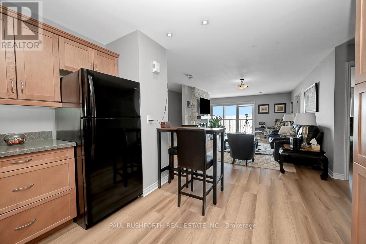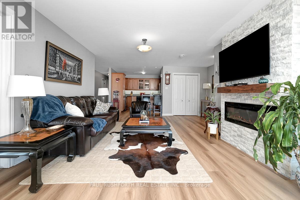 If you are looking for maintenance free living with killer views of the St Lawrence River, this is the perfect spot for you. Located in the lovely town of Prescott, this 2nd floor condo has over 1000SF of space including 2 bedrooms, a 4pc bath and in-suite laundry. Amazing unobstructed views of the river and perfect walkability to the downtown and it's amenities. Close to Prescott Golf Club, Highways 401 & 416, bridge to the US and so much more. 1 hour to downtown Ottawa. Inside you will find open living space with plenty of light and new high end vinyl flooring. Beautiful stone accent wall in the living room with electric fire place adds warmth to the space. Two spacious bedrooms with new custom closet in the primary. Condo fees include: property maintenance, snow removal, grass cutting, reserve fund allocation. This unit currently has one parking space, but another is available for just $15/month. Perfect place to come and go or enjoy small town living with all it's perks. (id:64974)
