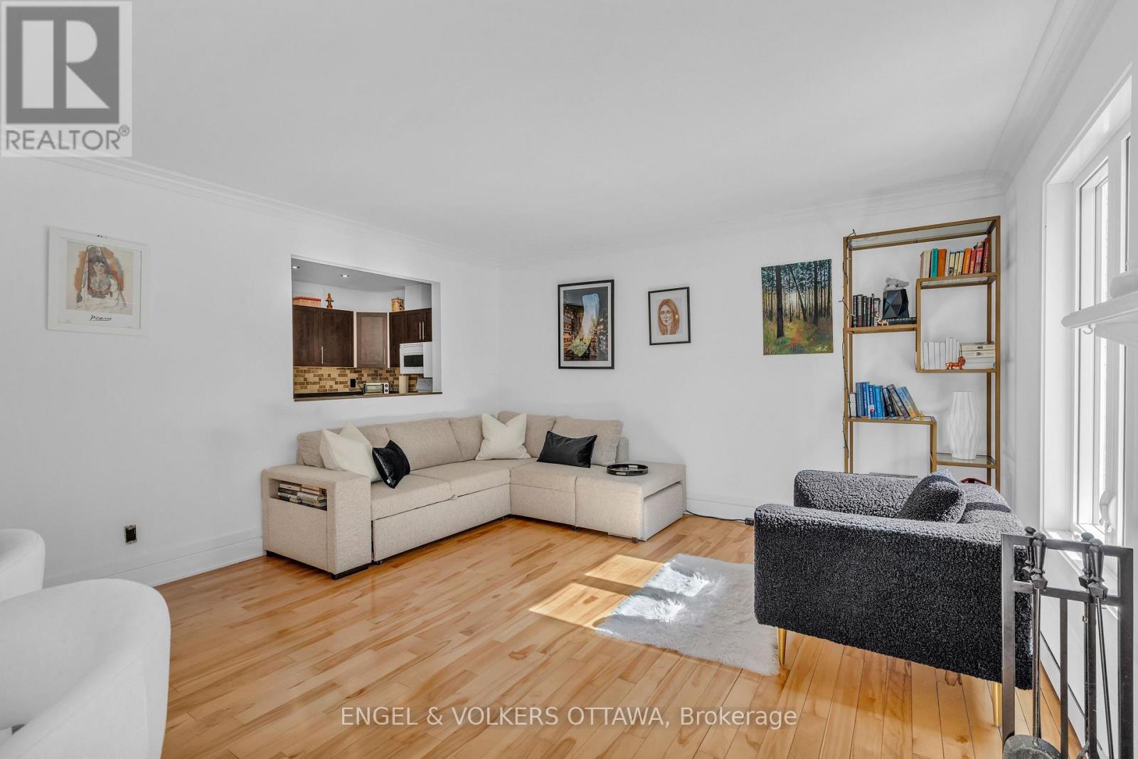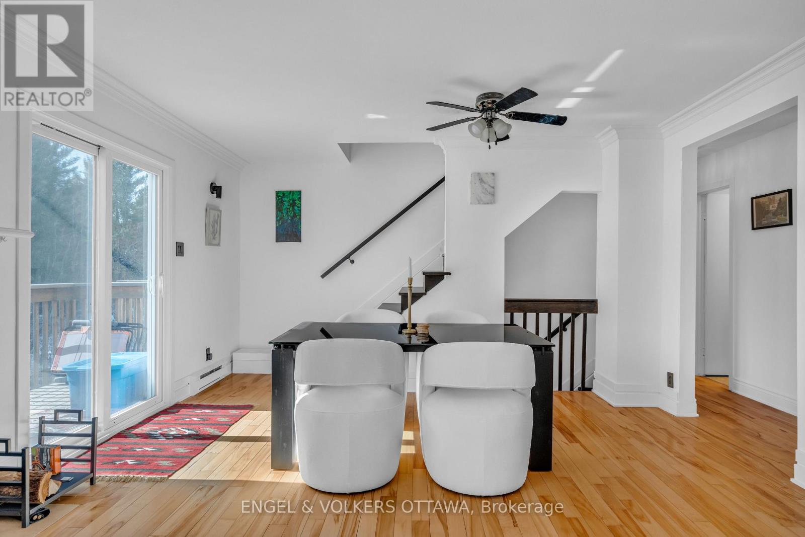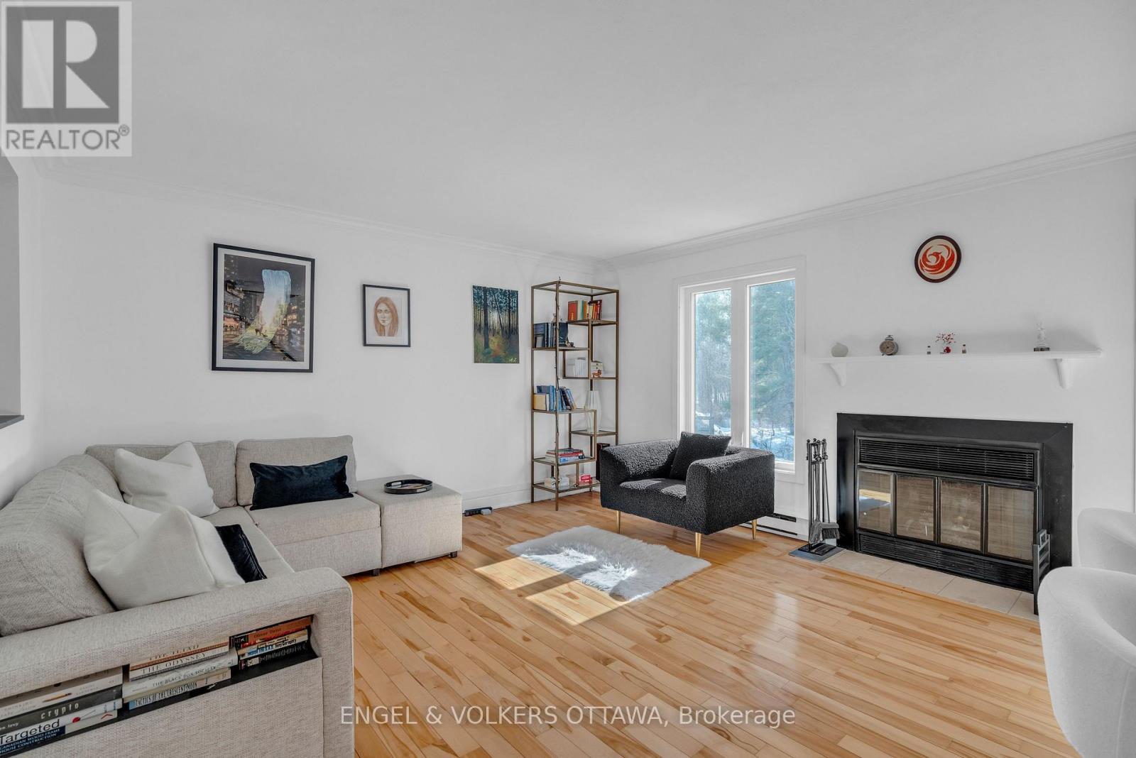 Welcome to 5 Timberview Way #7 - a bright and well-maintained upper-unit condo townhouse in Bells Corners. Offering over 1,100 sq. ft., this 2-bedroom, 3-bath home features hardwood floors, an open-concept living and dining area with a cozy wood-burning fireplace, and a spacious eat-in kitchen. Enjoy two private balconies overlooking NCC greenspace, plus additional outdoor space at the lower level - perfect for relaxing or entertaining. The primary bedroom includes a walk-in closet and a 3-piece ensuite, with a second bedroom and a full bath completing the upper level. Conveniently located near shopping, parks, transit, and easy highway access. Water is included; tenant to pay hydro. (id:64974)