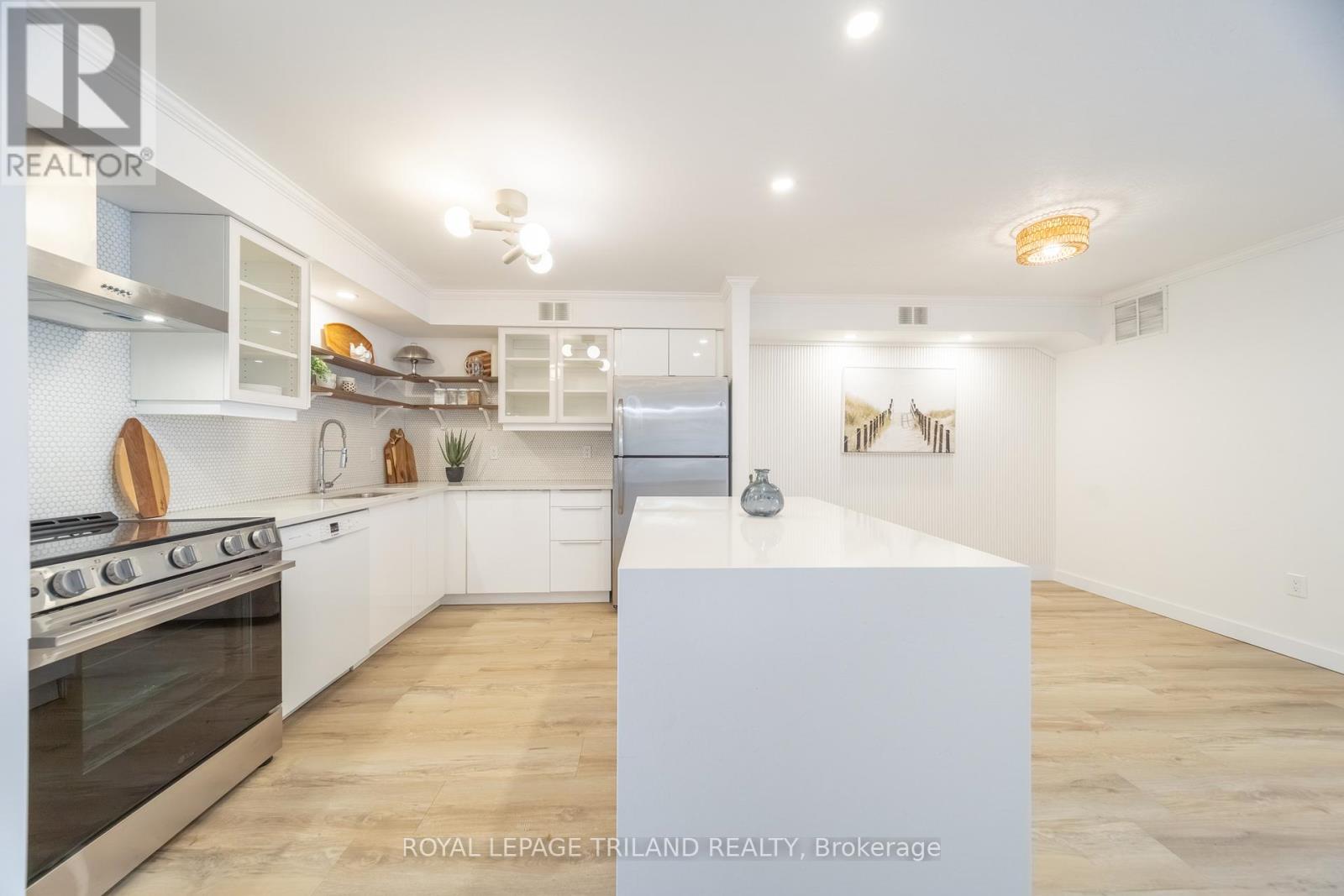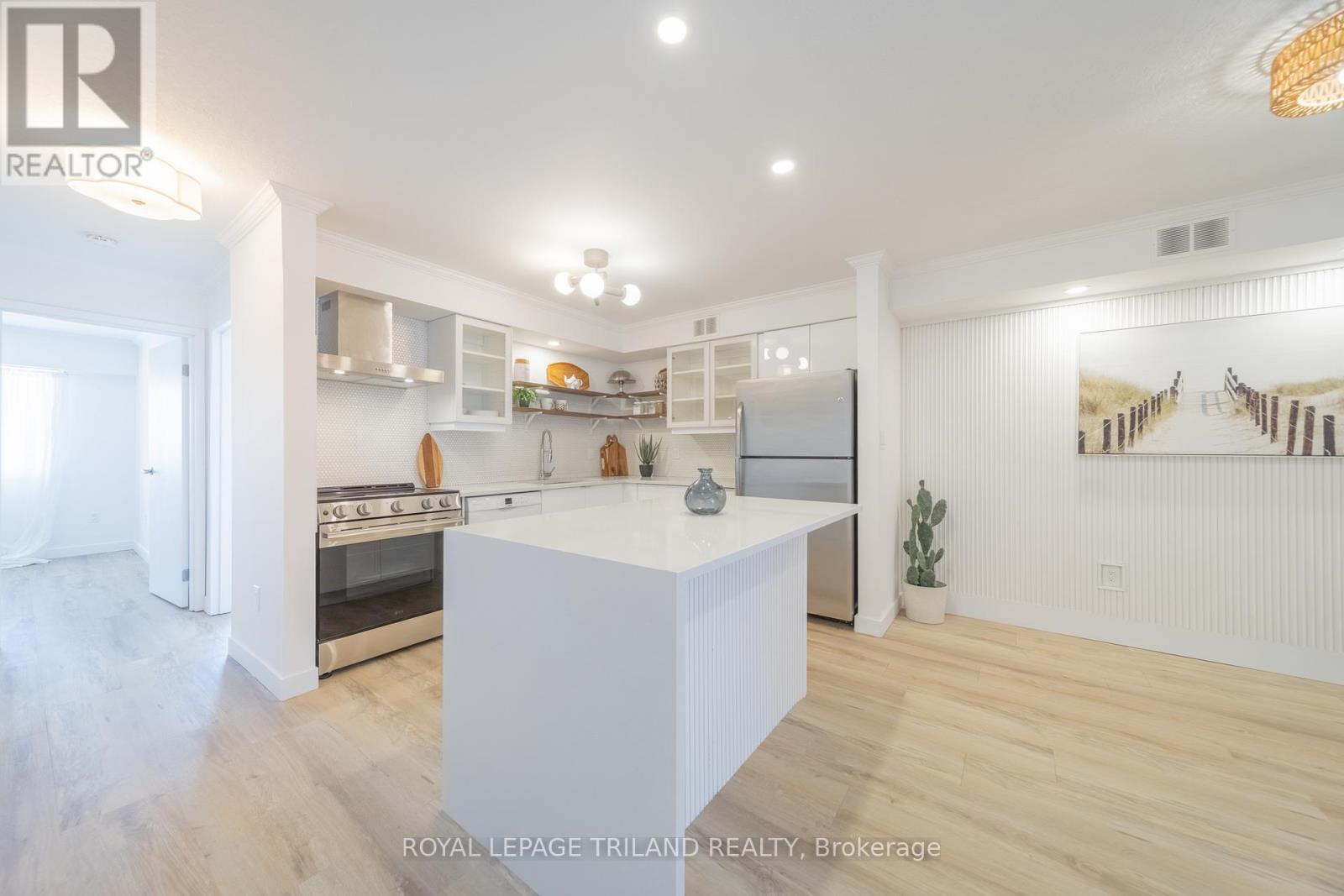 LIKE A NEW HOME - A RARE OFFERING IN GRAND BEND! This is the first unit in this young, well-maintained 10-unit complex to be totally renovated, & it is now offered for sale for the first time since the brand-new renovation was completed in March of 2026. Every major interior finish has been thoughtfully updated, including a new kitchen w/ Hanstone quartz counters w/ waterfall island, appliances, bathroom, flooring, walls, lighting - ALL NEW! Seize what may be the most affordable opportunity for home ownership in Grand Bend as of Spring 2026. This functional & efficient forced-air gas heated & central air-conditioned condo is located just 490 metres from the 3rd-best beach in the country, making it the perfect coastal escape or full-time residence. Step away from city life & into relaxed beachside living, where weekends truly feel like vacations. Unit 7 is ideally positioned in the desirable 8 Oak complex 3 units from the end, tucked away from street traffic offering peace & quiet rarely found in the downtown "Village" core. Enjoy the convenience of in-unit private laundry, a bright open-concept primary living space w/ a sparkling new kitchen & various feature walls, a new bathroom, & 2 bedrooms. The like-new condition throughout ensures your investment goes a very long way. With a strong mortgage, owning this home could cost less per month than renting, as comparable units now rent for over $1,800 per month + utilities. Enjoy easy ground-level access, ideal for those with mobility considerations, reserved parking right at your doorstep, & a private BBQ patio. Sip your morning coffee on the balcony as the sun rises, relax in the private condo gazebo yard, then stroll to the beach for a refreshing swim & a stunning sunset. Pets welcome. Just a 5 min walk to endless sandy shores, world-class sunsets, & all of Grand Bend's amenities, this beachside condo delivers exceptional value in today's market. Didn't think you could afford Grand Bend? Think again! No STRs = peac (id:64974)