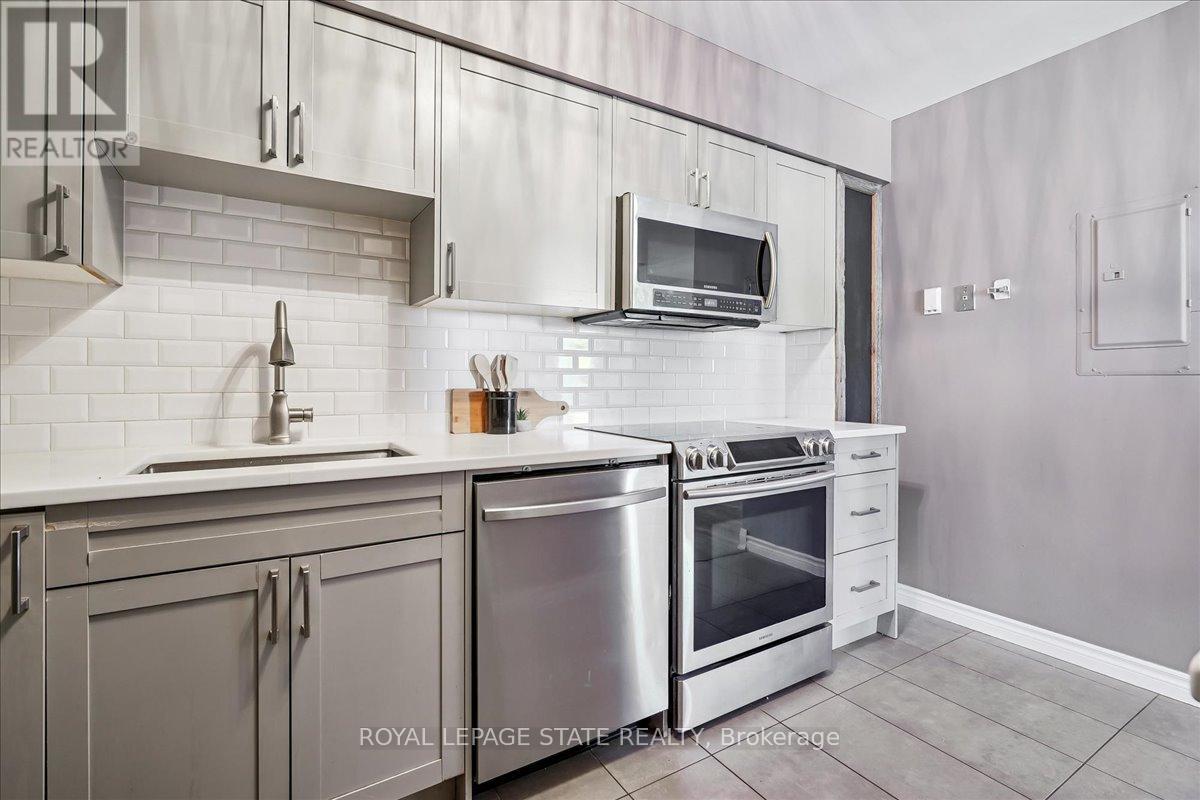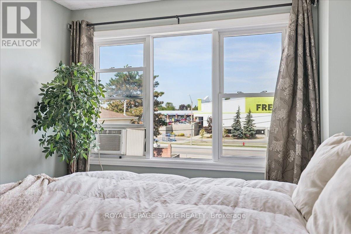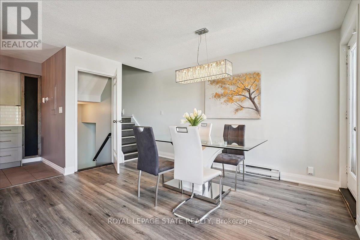 Welcome to this charming 2-bedroom condo, perfectly located on Hamilton's East Mountain! Enjoy the convenience of being steps from shopping, right on a bus route, and just minutes to the LINC and Red Hill expressways. The main level features updated laminate flooring, a stylishly refreshed kitchen with modern appliances, a separate dining area, in-suite laundry, and a walkout to your own private balcony for fresh-air relaxation. Upstairs, you'll find two bright bedrooms and an updated bathroom. Additional highlights include a glass French door, updated lighting, and budget-friendly condo fees. Quick possession is available - move in and enjoy! (id:64974)