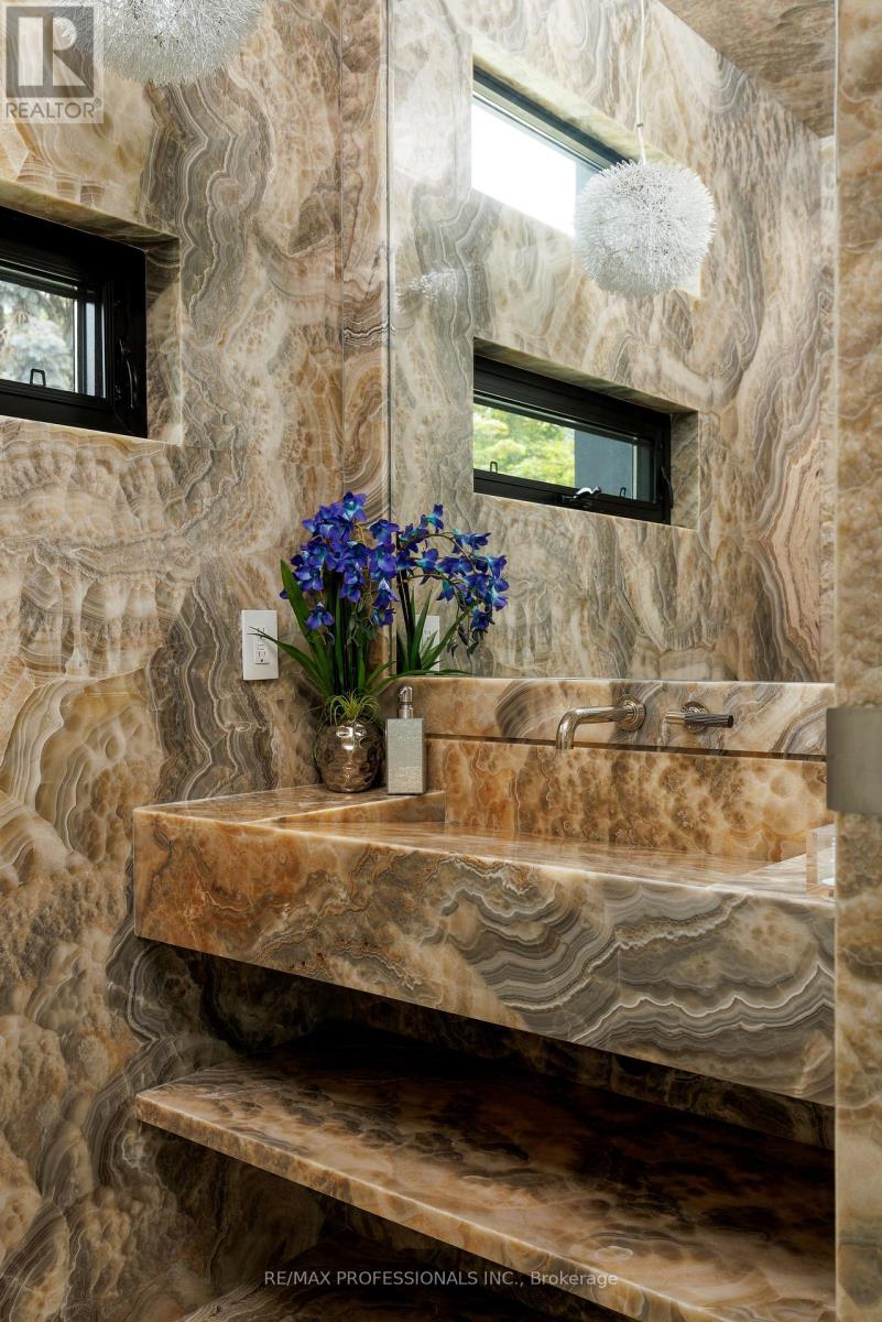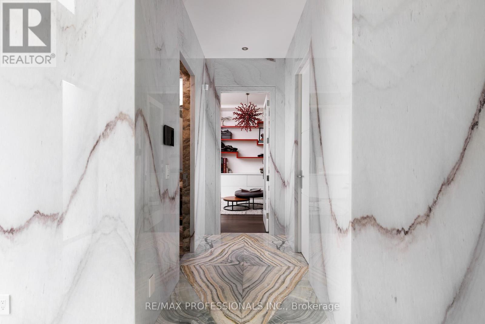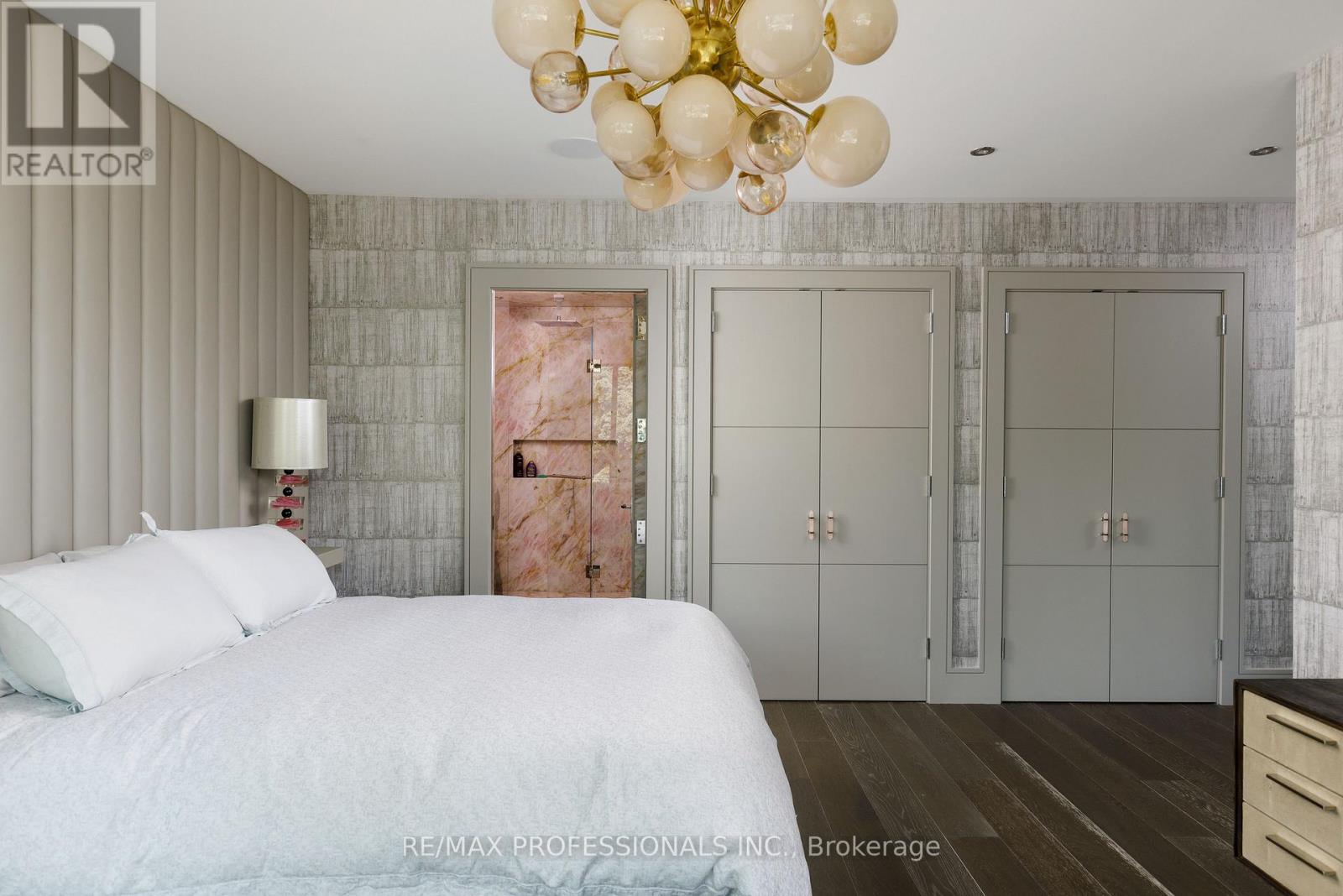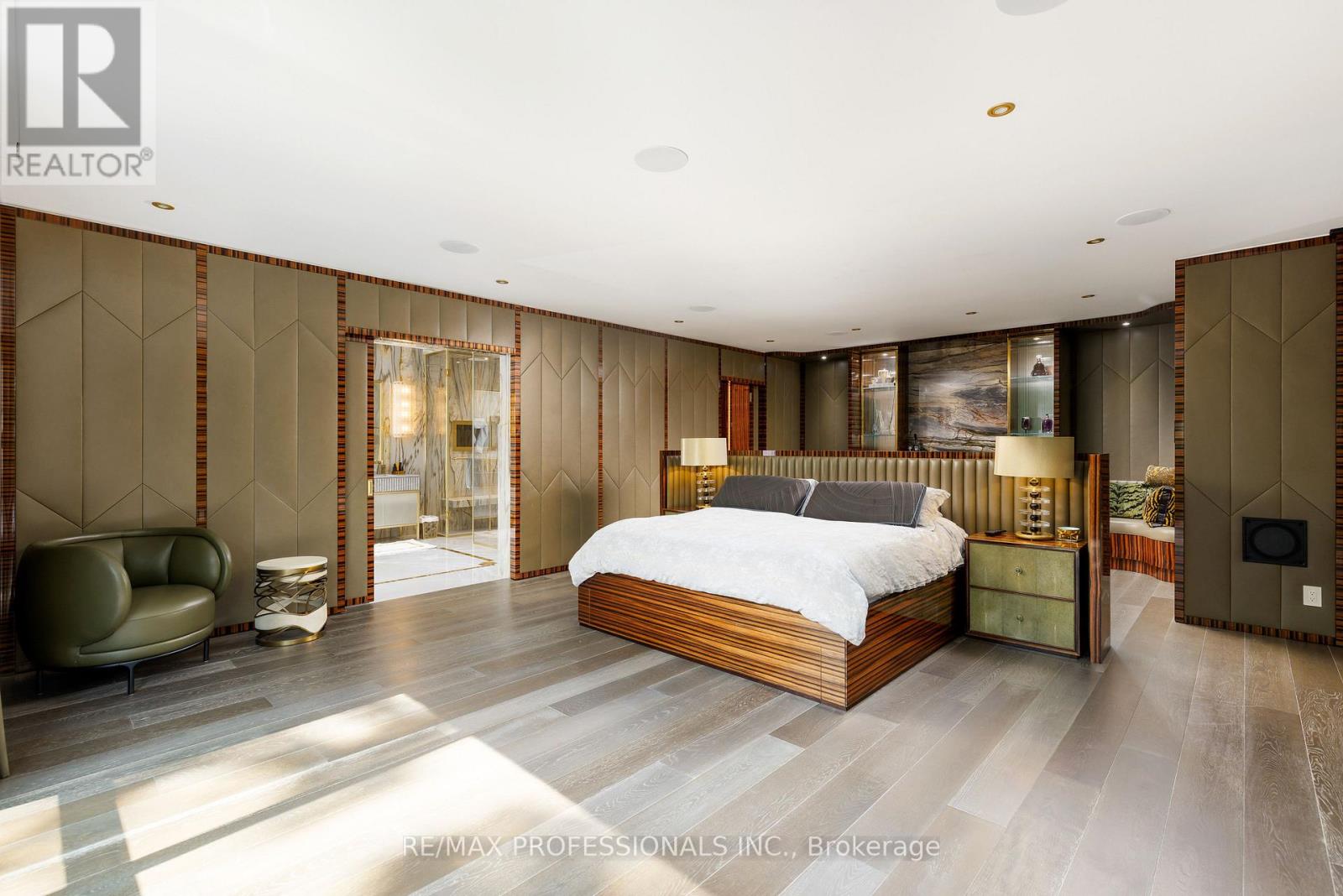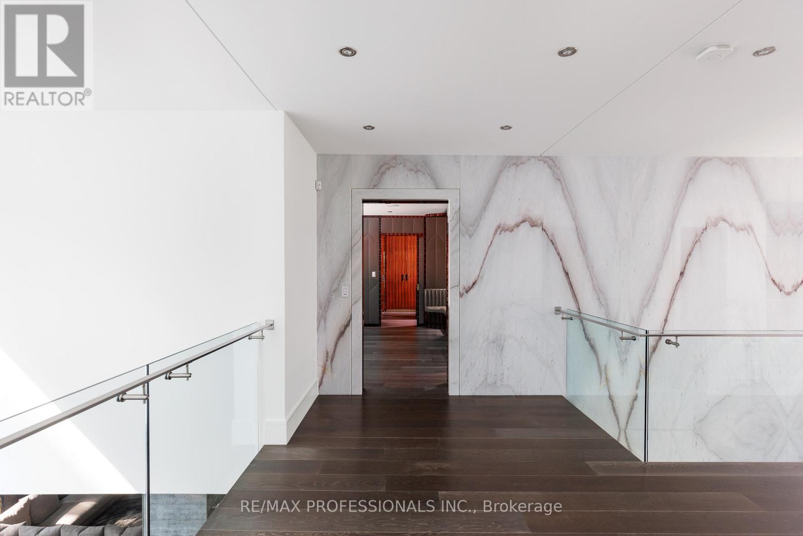 Spectacular Custom home on Lambton Wood Ravine in prestigious Edenbridge Humber Valley. Idyllic private setting with secluded oasis complete with pool and east facing garden backing onto the wooded ravine. Enter inside a masterpiece of custom stonework throughout with floor to ceiling marble and endless upgrades and luxury appointments. 7000+ square feet of living space offers residents top of the line Gaggenau appliances and furnishings that overlook the backyard living and dining areas. The second floor offers 4 fully furnished bedrooms each with private ensuite baths. The primary bedroom is amongst the finest with ravine views and built in TVs and a 5 piece ensuite and walk in closets like no other. Lower level offers a full bar & temperature controlled wine cellar with sprawling lower living space complete with professional gym & spa/cold plunge & sauna. Not to be missed, the garage includes a two car lift. Truly a lifestyle experience and unequivocally the finest in finishes throughout nestled on one of the quietest streets in the area. Steps to Humber town plaza, Bloor, and close to all major highways. Short commute downtown & top school district. (id:64974)