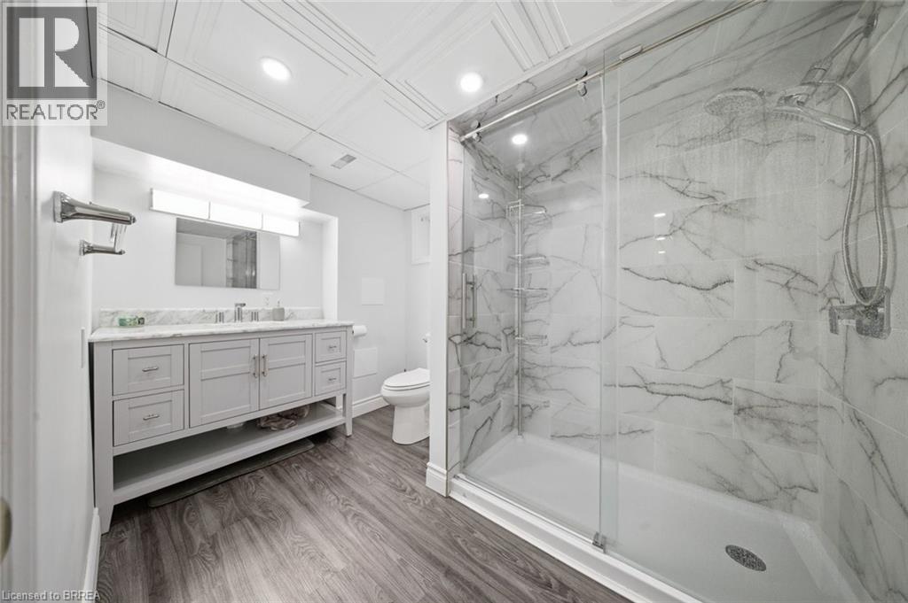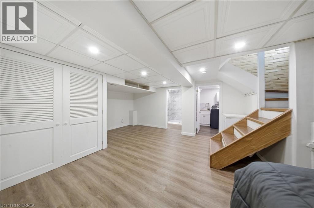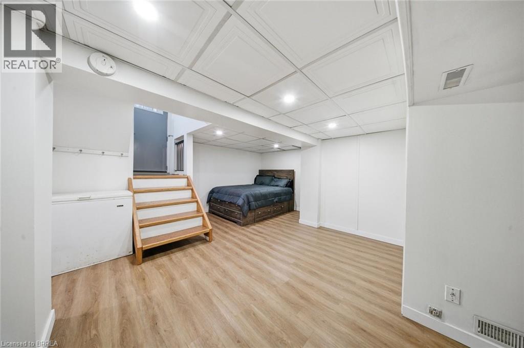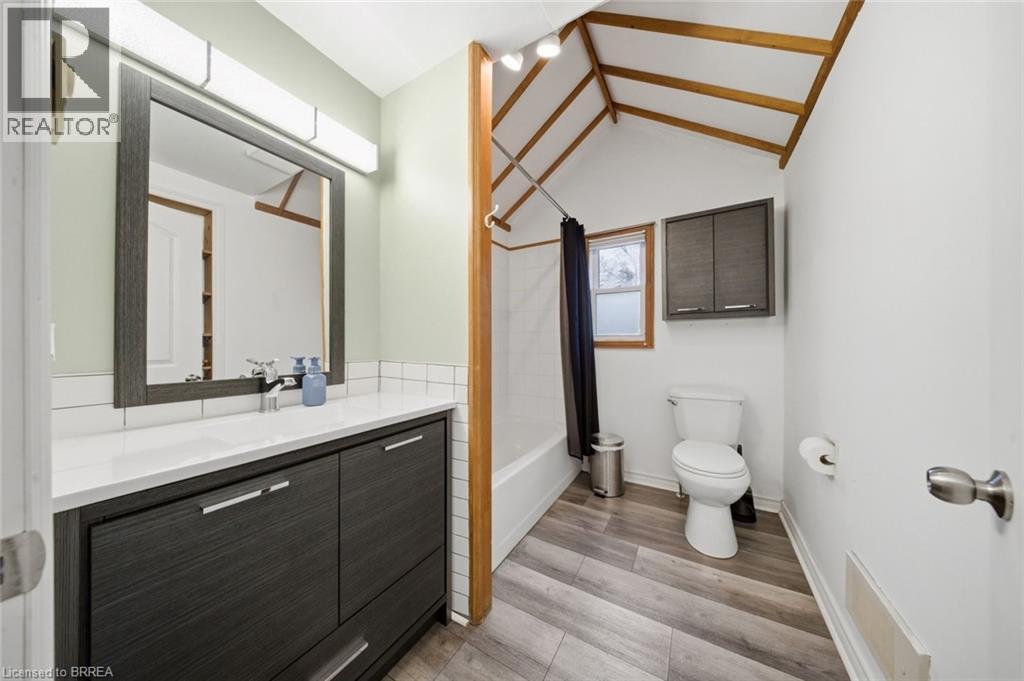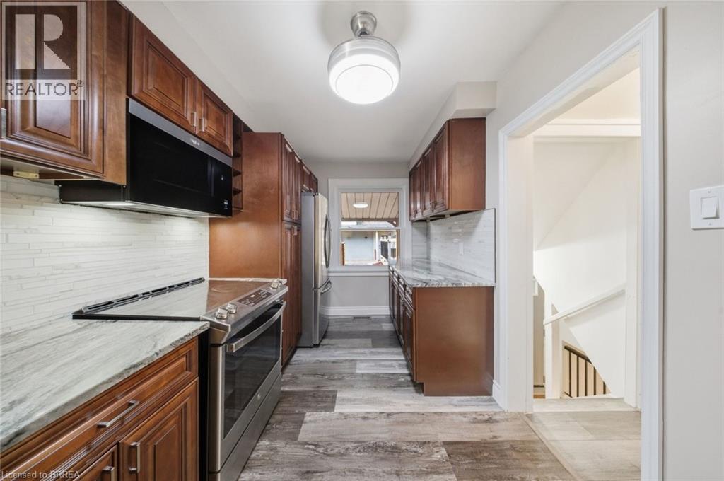 Welcome to 7 Barry Drive, a beautifully maintained and updated home nestled in a quiet cul-de-sac in the highly sought-after Old West Brant neighborhood. Backing onto a peaceful forested area, this charming property offers exceptional privacy and a serene natural setting. Inside, you'll find a warm inviting layout featuring stylish luxury flooring throughout the main level. The bright living room is enhanced with crown molding, high baseboards, and an open concept dining space. A gorgeous, updated kitchen is filled with natural light and showcases granite countertops, stainless steel appliances, loads of updated cabinetry and, tile backsplash, Upstairs offers two spacious bedrooms, a linen closet, and a beautifully finished 4-piece bathroom with vaulted ceilings, wood accents, and a tub/shower combo. The finished basement provides a generous recreation room along with a 3-piece updated bath with walk in shower and separate laundry area Outside, the deep, lush backyard is a private retreat with no rear yard neighbors and is complete with a two-tier covered flagstone patio newer deck and is fully fenced. A standout feature is the massive detached 2-car garage with a full walk-up attic, is fully insulated and heated offering incredible potential for a workshop, studio, or additional storage. Located close to excellent schools, parks, and everyday amenities, this home perfectly blends comfort, character, and convenience. (id:64974)