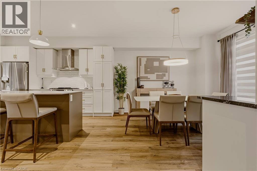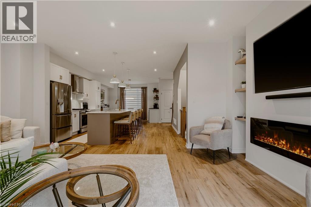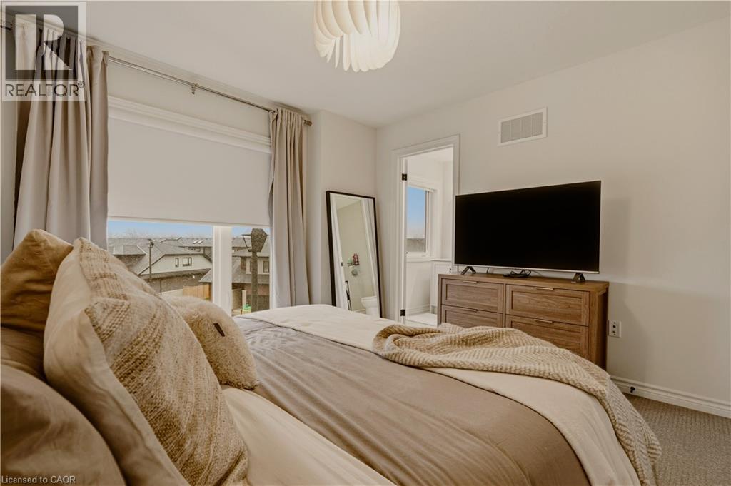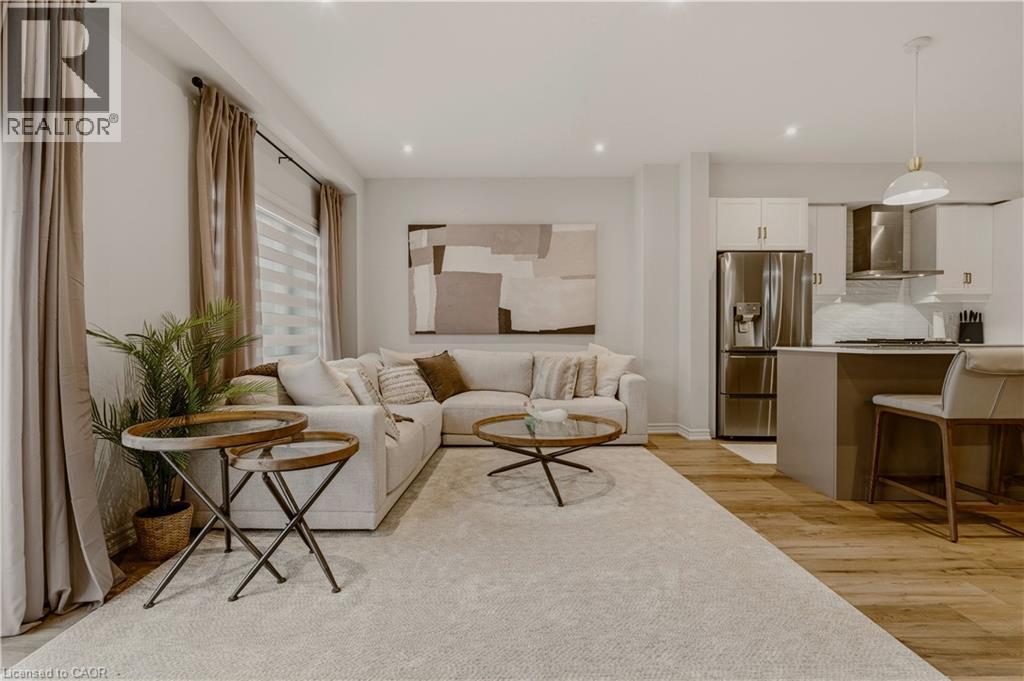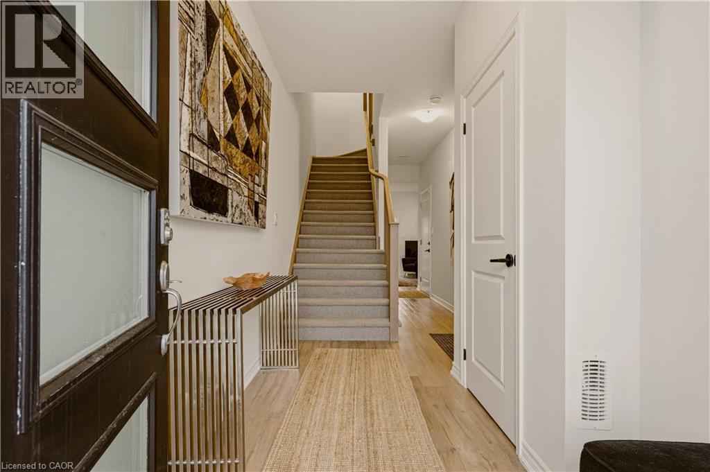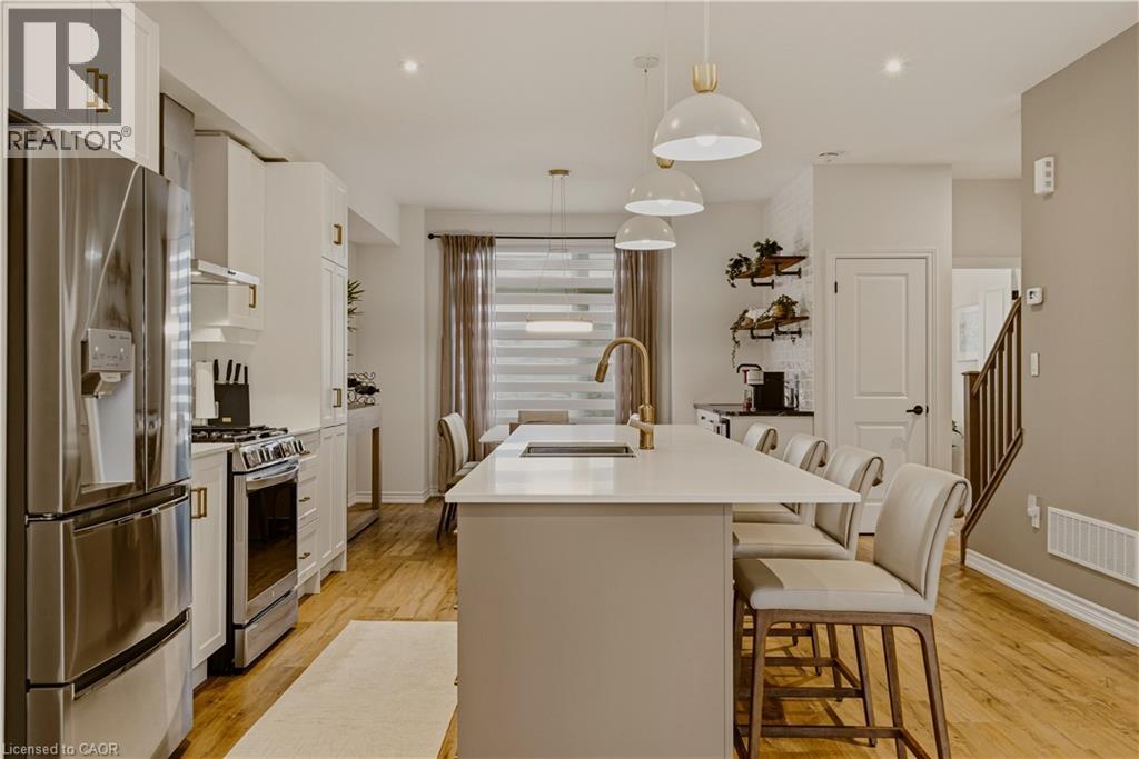 Fabulous Freehold living awaits in this recently built 3-storey townhome, ideally located in the highly sought-after West Hamilton Mountain community, just moments from Ancaster Meadowlands’ shops, dining, and scenic nature trails. Crafted by Starward Homes, this beautifully designed residence offers 3 spacious bedrooms and 4 bathrooms, perfectly suited for growing families. The main level welcomes you with a bright foyer, a spacious rec room, a convenient 2-piece bath and walk-out access to the fully fence back yard - a versatile space for entertaining or a teen retreat. The second level truly serves as the heart of the home, showcasing a bright and inviting open-concept living space where the living room, dining area, and stylish kitchen flow seamlessly together—creating an ideal setting for both everyday living and effortless entertaining—complete with an additional 2-piece bath and access to the 132 sqft balcony. The kitchen is a true entertainers dream, complete with a working breakfast island, gorgeous stainless appliances and quartz countertops. Upstairs, retreat to the private bedroom level featuring a well-appointed primary suite with a walk-in closet and 4-piece ensuite, along with two ample additional bedrooms, a full 4-piece bath, and convenient upper laundry. With over 1,900 sq ft of thoughtfully designed living space, this home offers an exceptional blend of comfort, style, and location. (id:64974)