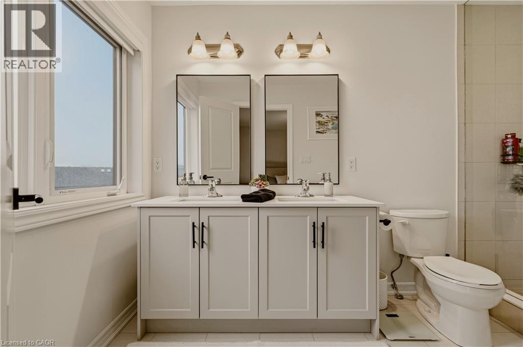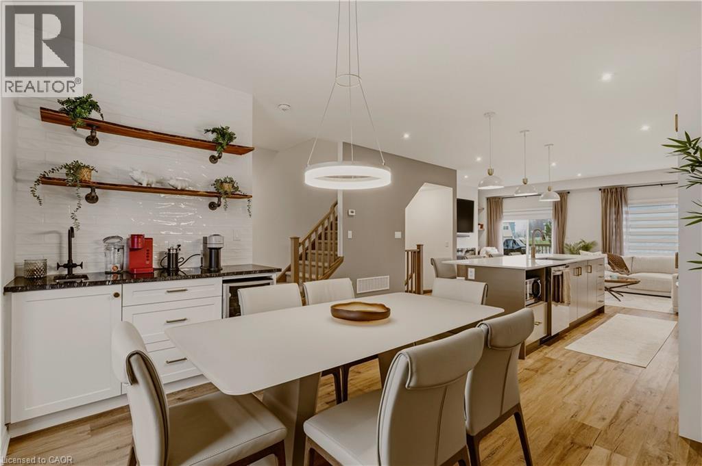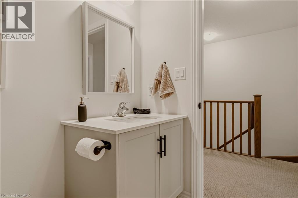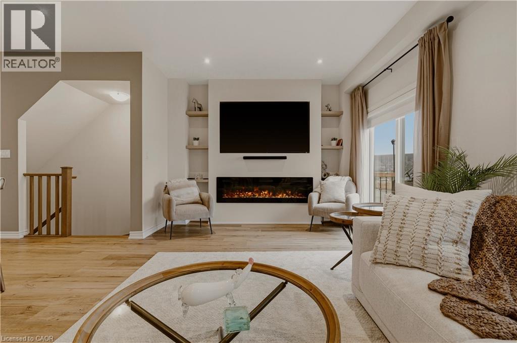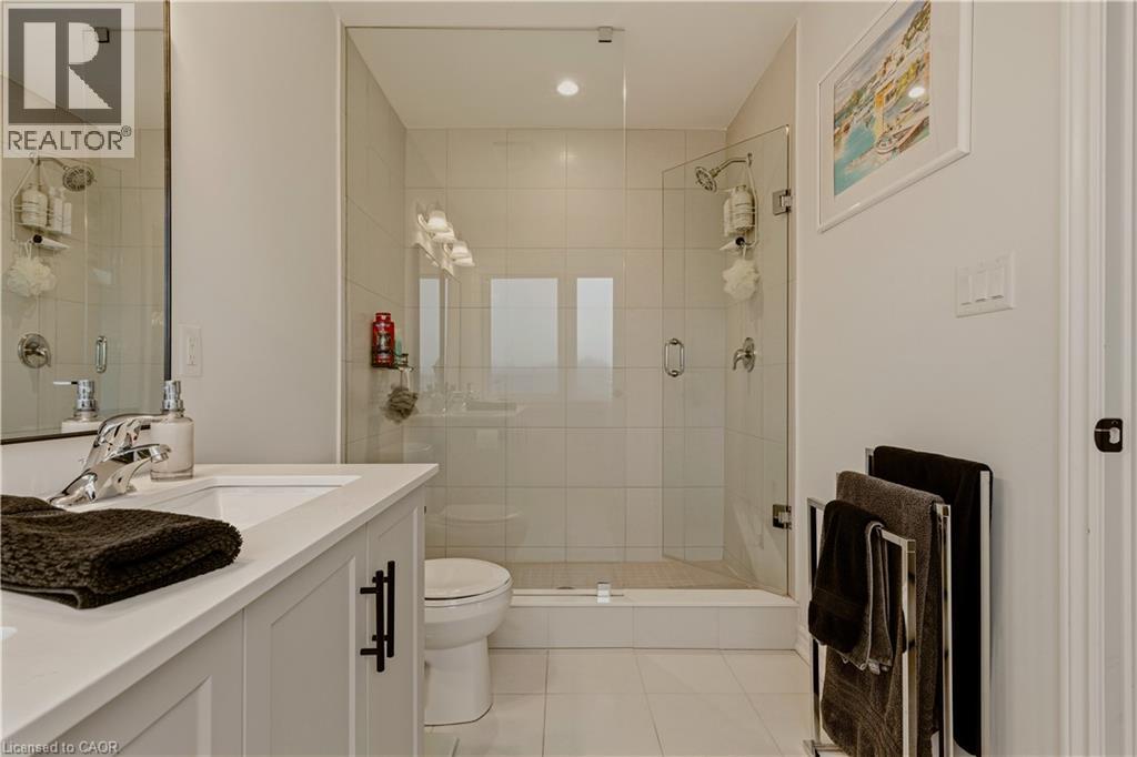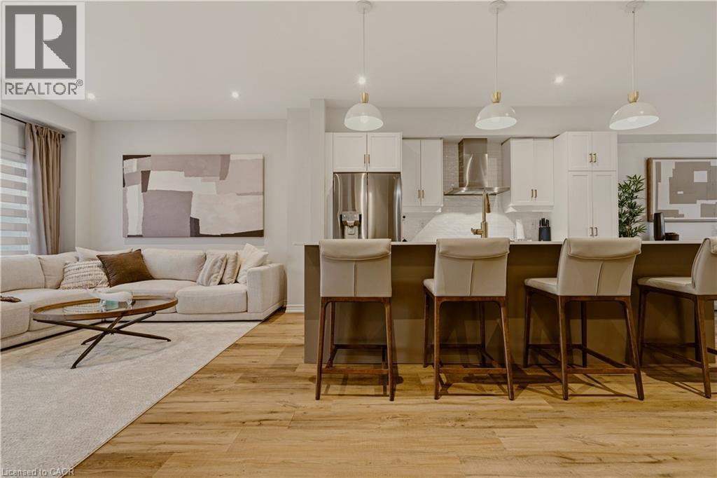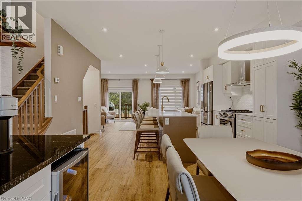 Fabulous Freehold living awaits in this recently built 3-storey townhome, ideally located in the highly sought-after West Hamilton Mountain community, just moments from Ancaster Meadowlands’ shops, dining, and scenic nature trails. Crafted by Starward Homes, this beautifully designed residence offers 3 spacious bedrooms and 4 bathrooms, perfectly suited for growing families. The main level welcomes you with a bright foyer, a spacious rec room, a convenient 2-piece bath and walk-out access to the fully fence back yard - a versatile space for entertaining or a teen retreat. The second level truly serves as the heart of the home, showcasing a bright and inviting open-concept living space where the living room, dining area, and stylish kitchen flow seamlessly together—creating an ideal setting for both everyday living and effortless entertaining—complete with an additional 2-piece bath and access to the 132 sqft balcony. The kitchen is a true entertainers dream, complete with a working breakfast island, gorgeous stainless appliances and quartz countertops. Upstairs, retreat to the private bedroom level featuring a well-appointed primary suite with a walk-in closet and 4-piece ensuite, along with two ample additional bedrooms, a full 4-piece bath, and convenient upper laundry. With over 1,900 sq ft of thoughtfully designed living space, this home offers an exceptional blend of comfort, style, and location. (id:64974)
